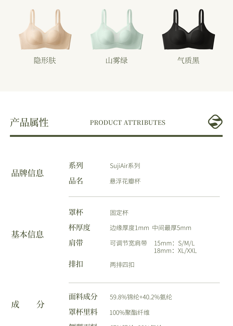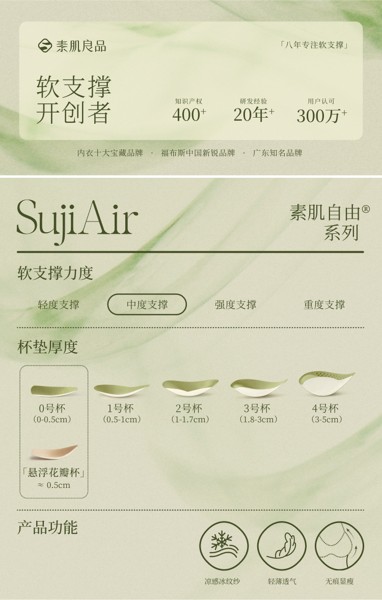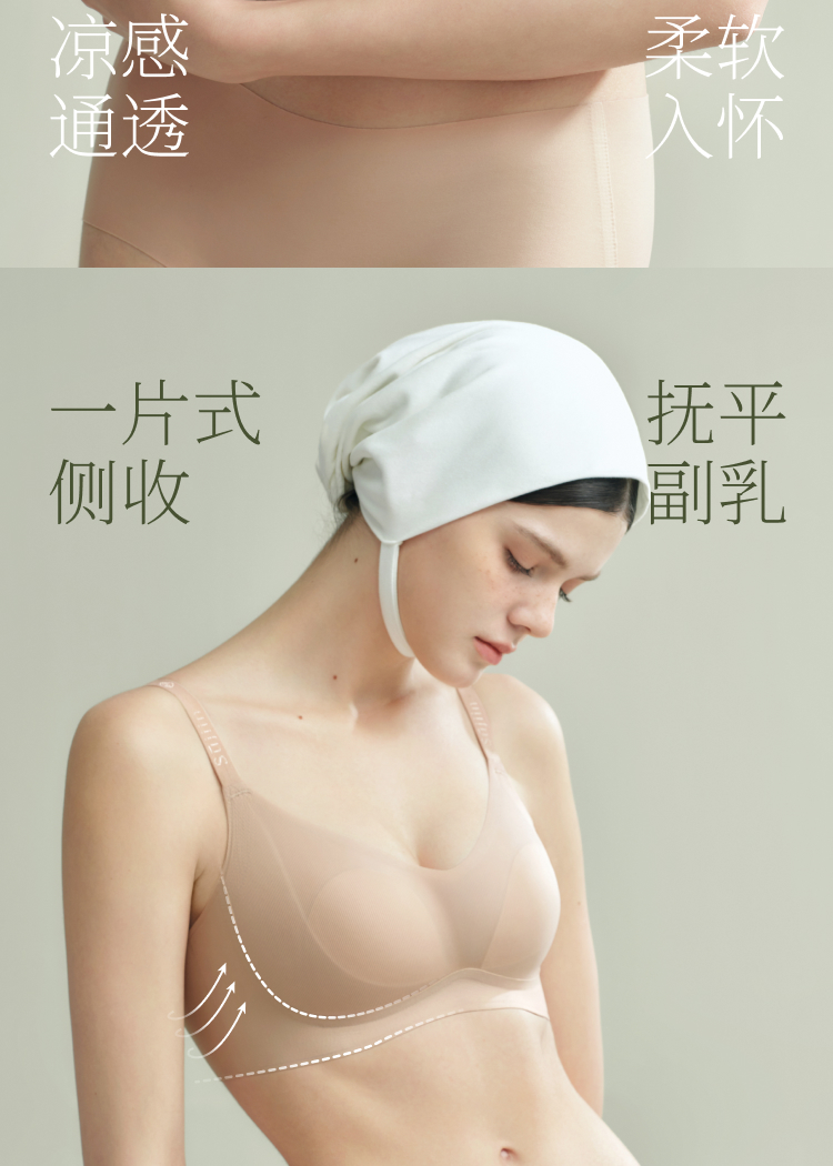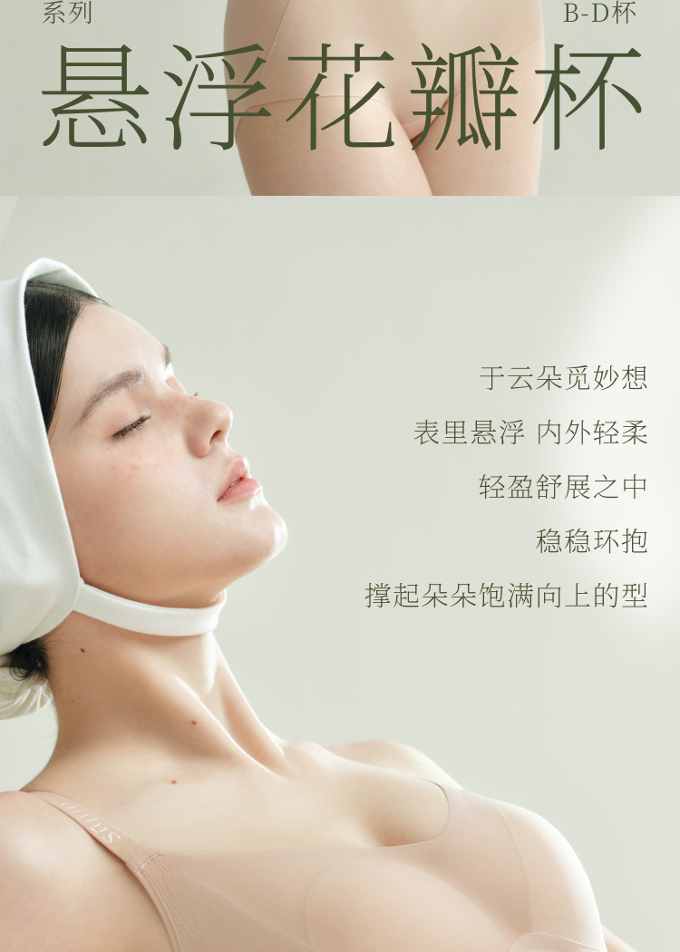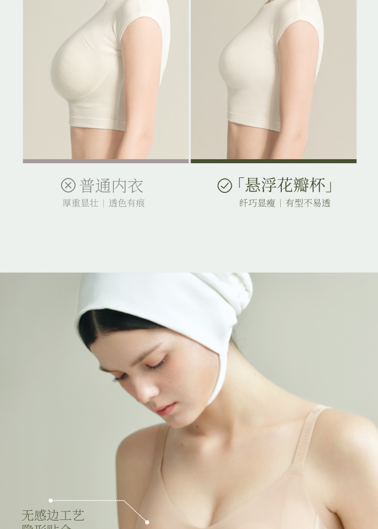 素肌良品悬浮花瓣杯夏季薄款大胸显小无痕无钢圈收副乳防下垂文胸MX307-FX
