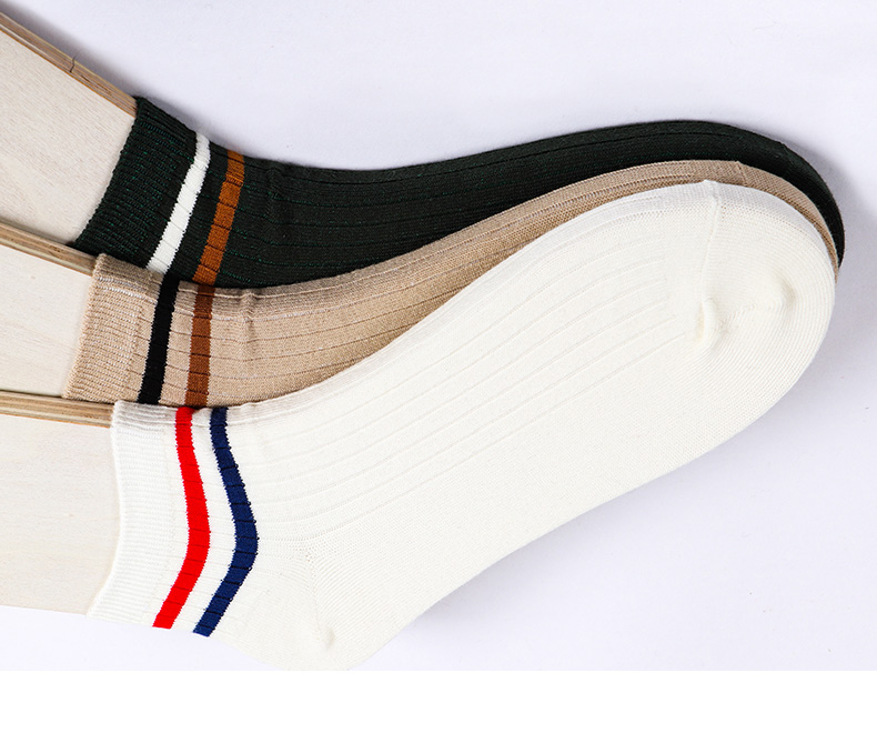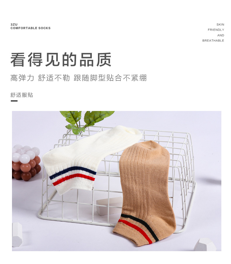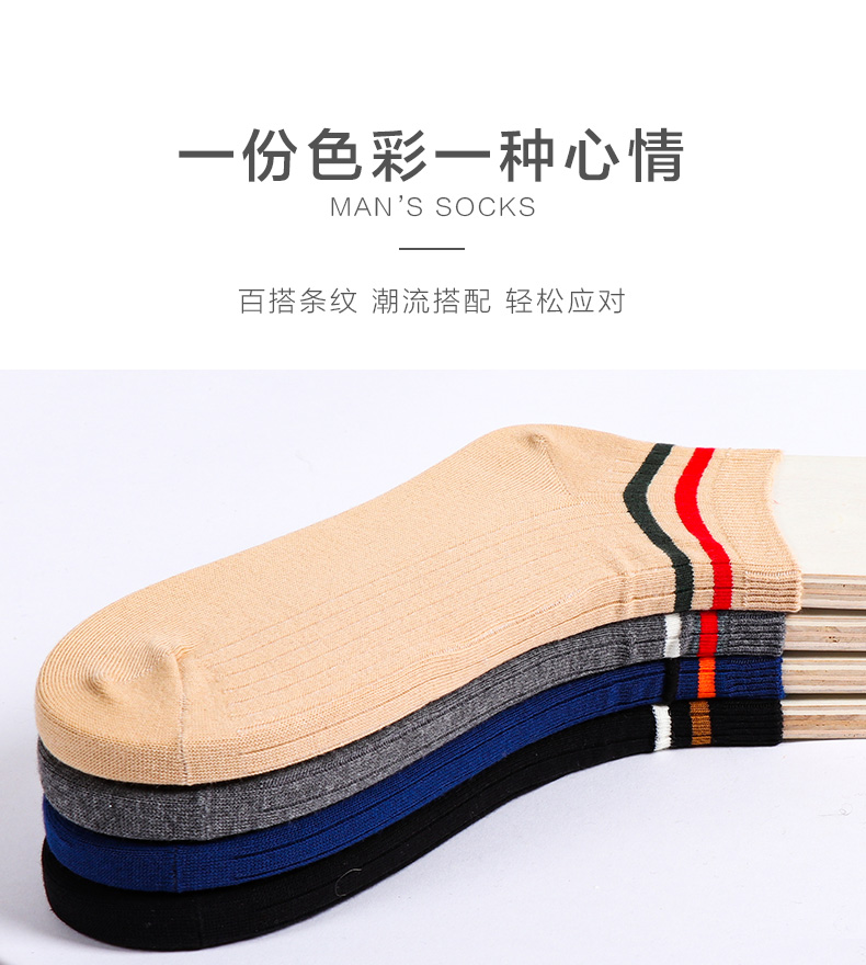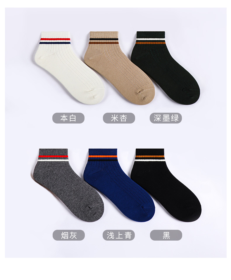 【任选6双79.5】春秋男士夏季经典双杠横条学院风短袜棉袜男船袜