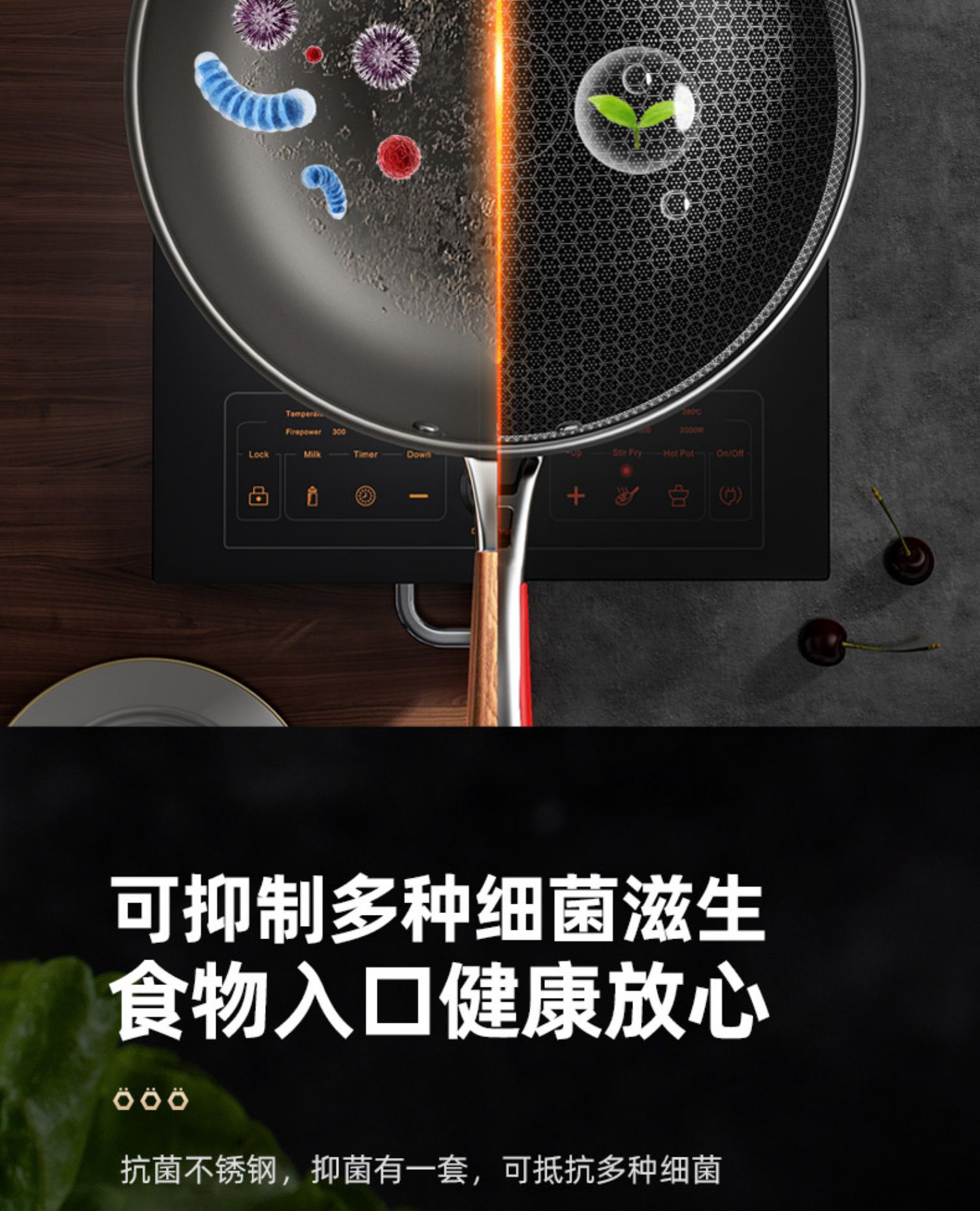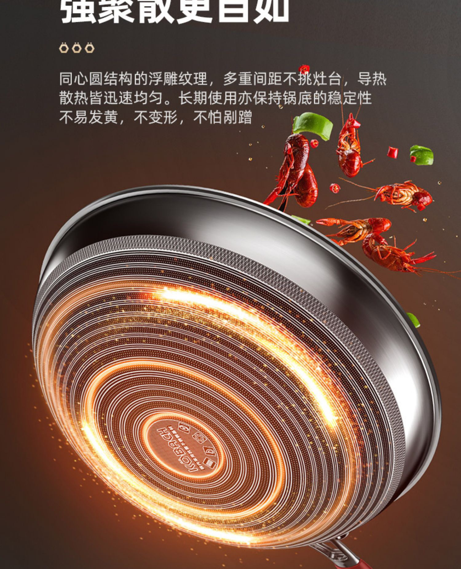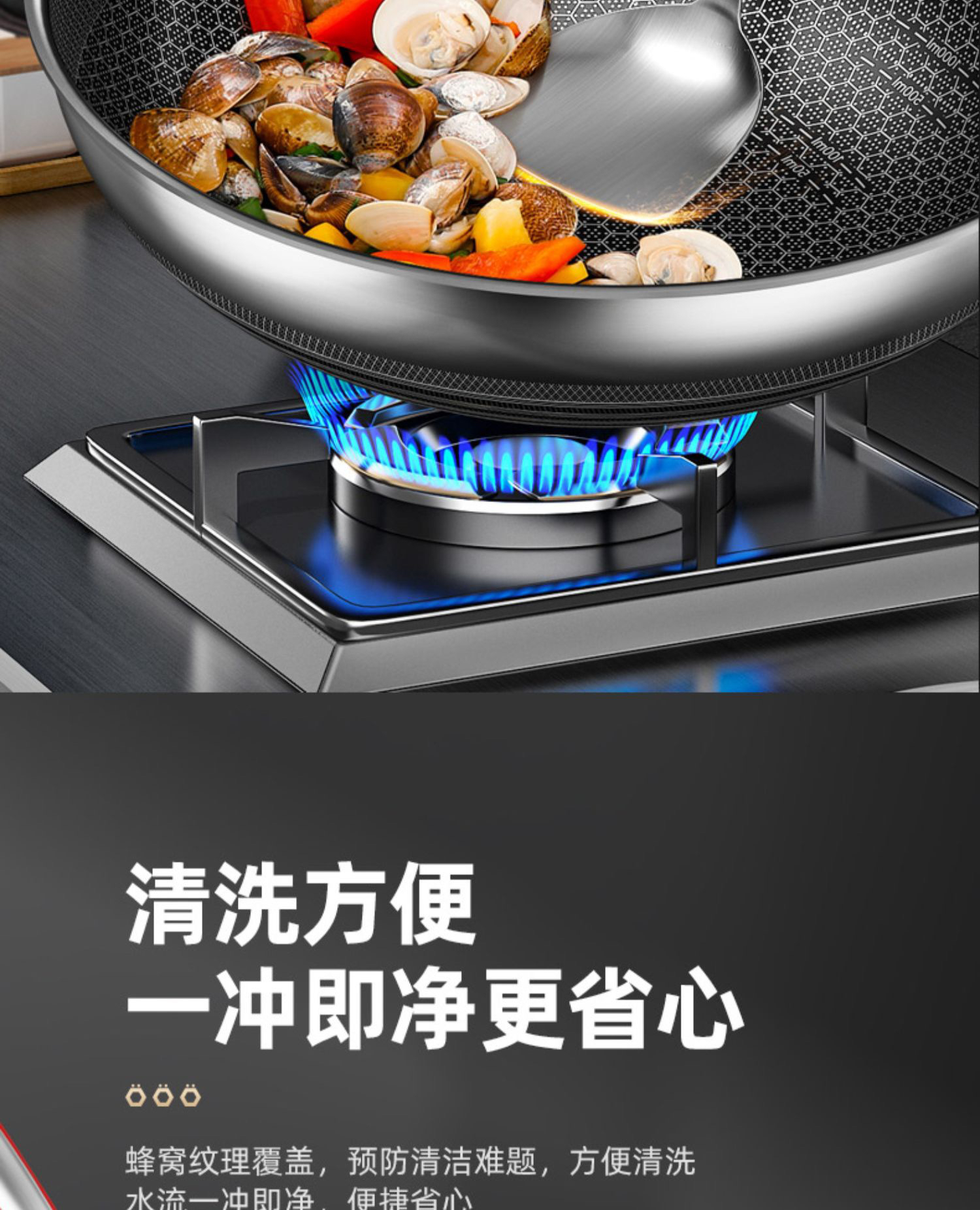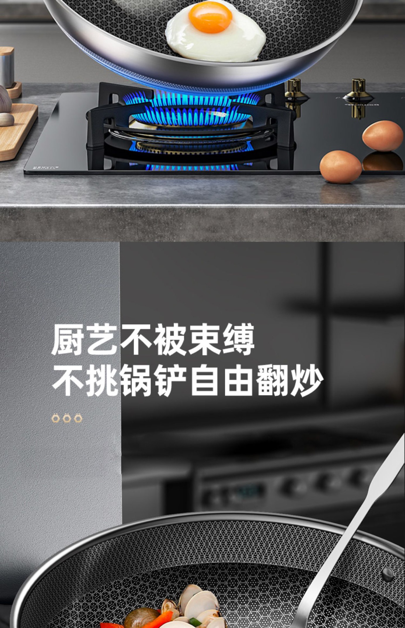 康巴赫旗舰第五代蜂窝抗菌不锈钢炒锅防粘锅炒菜燃气电磁炉通用