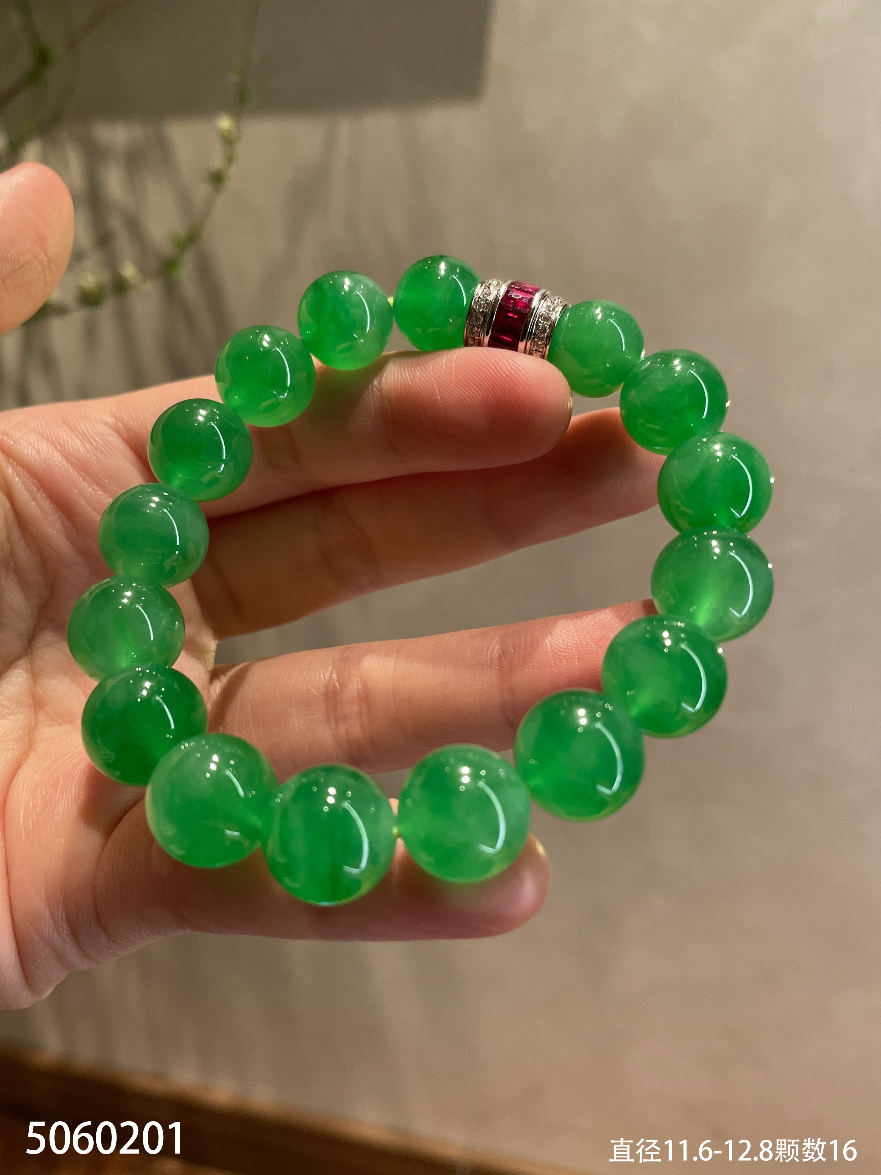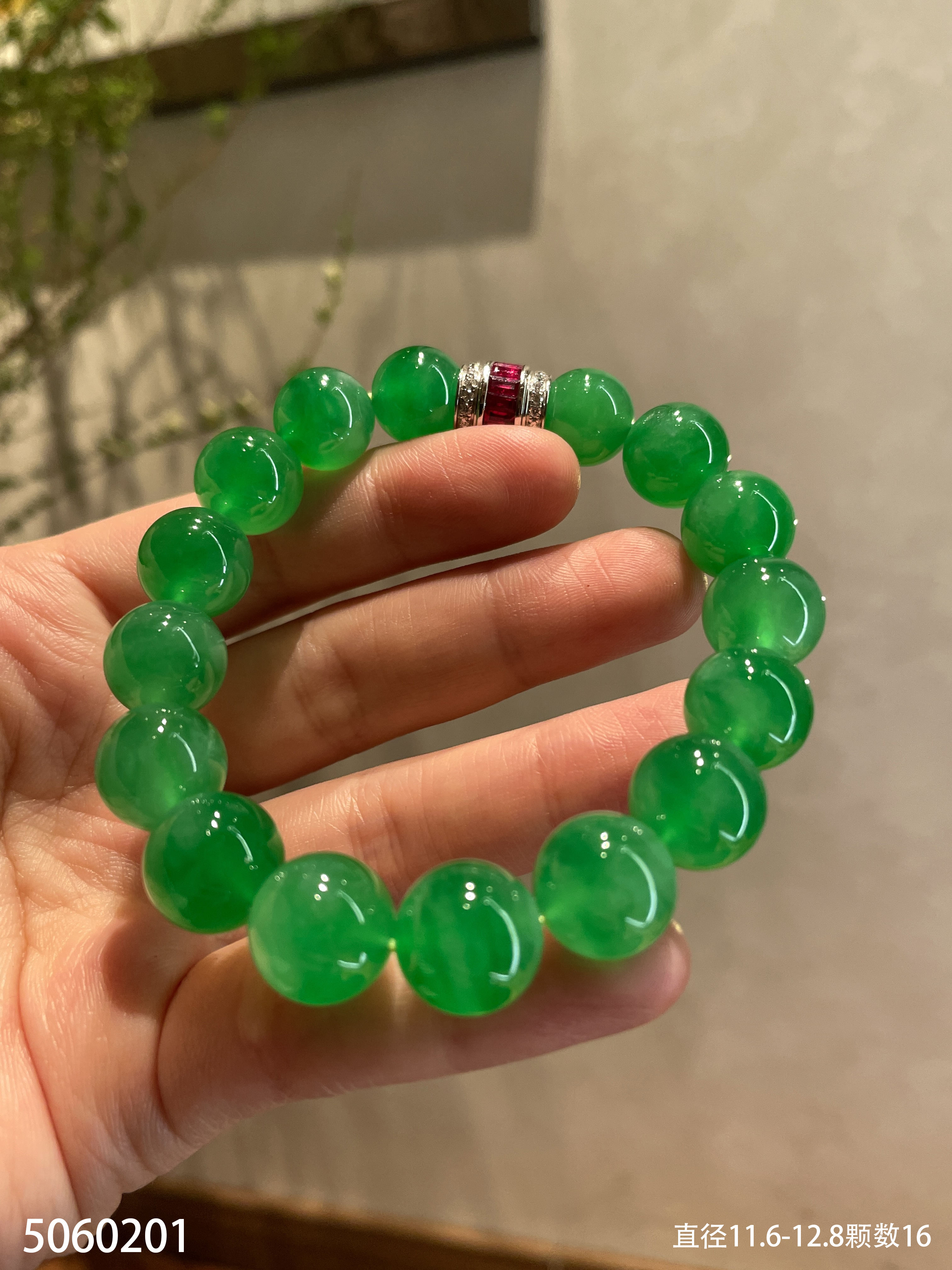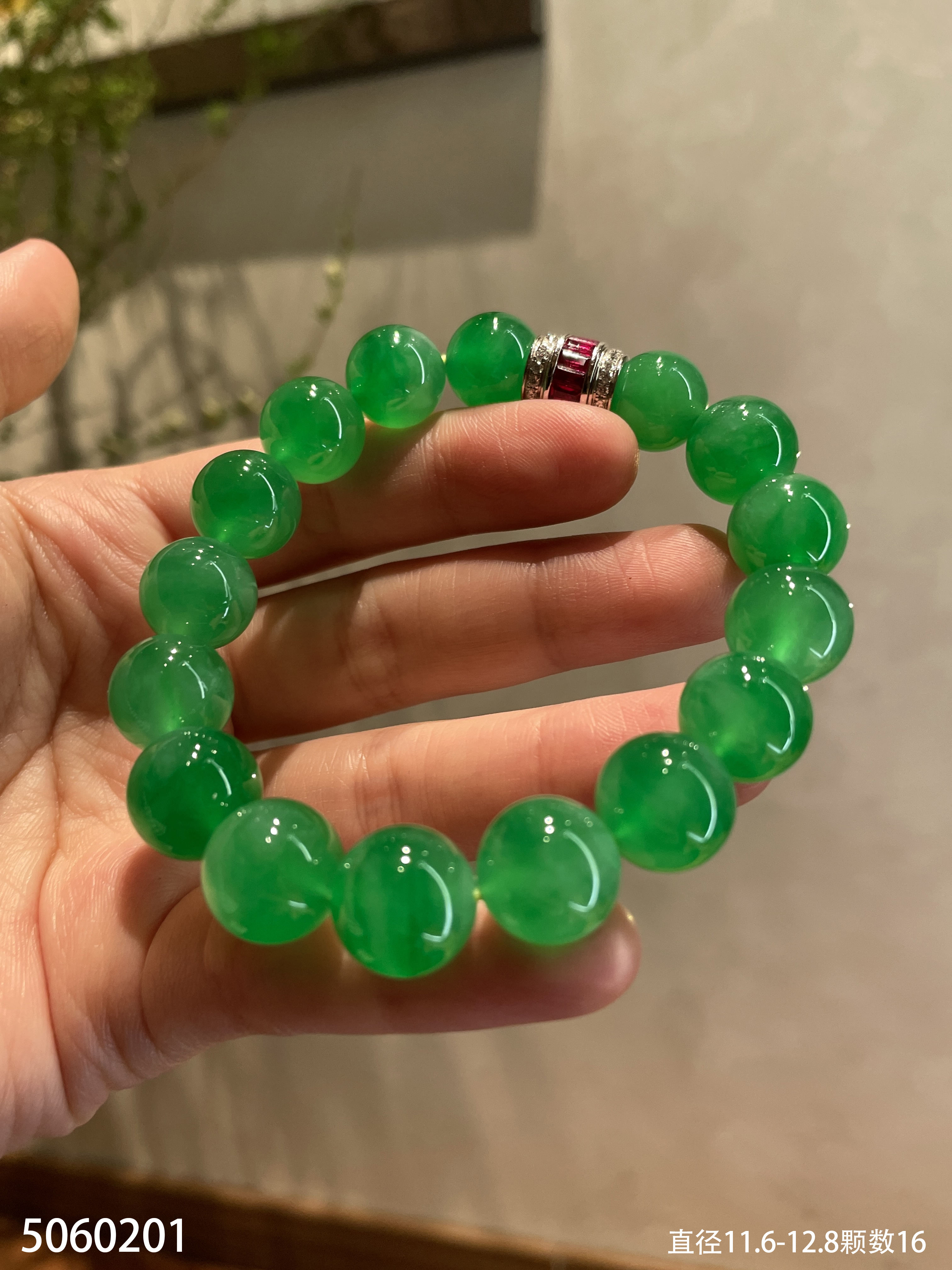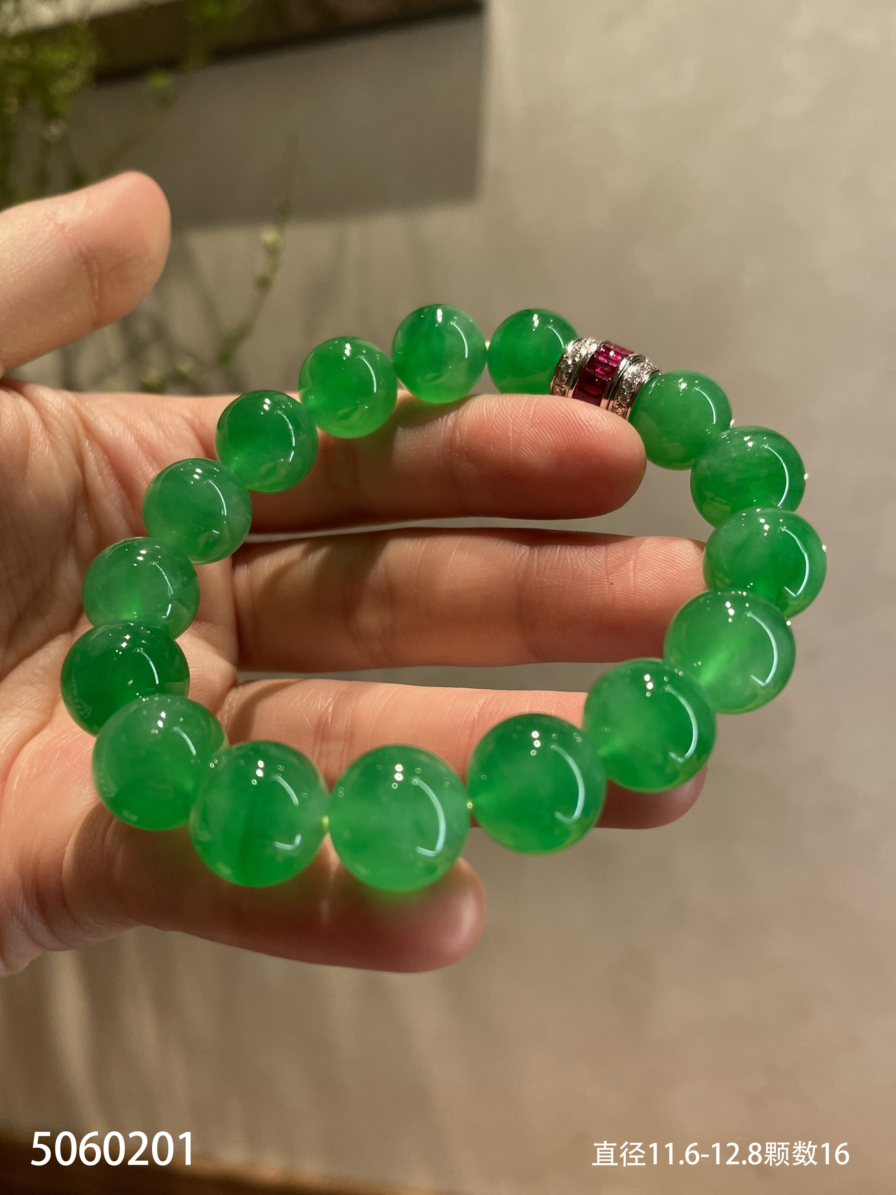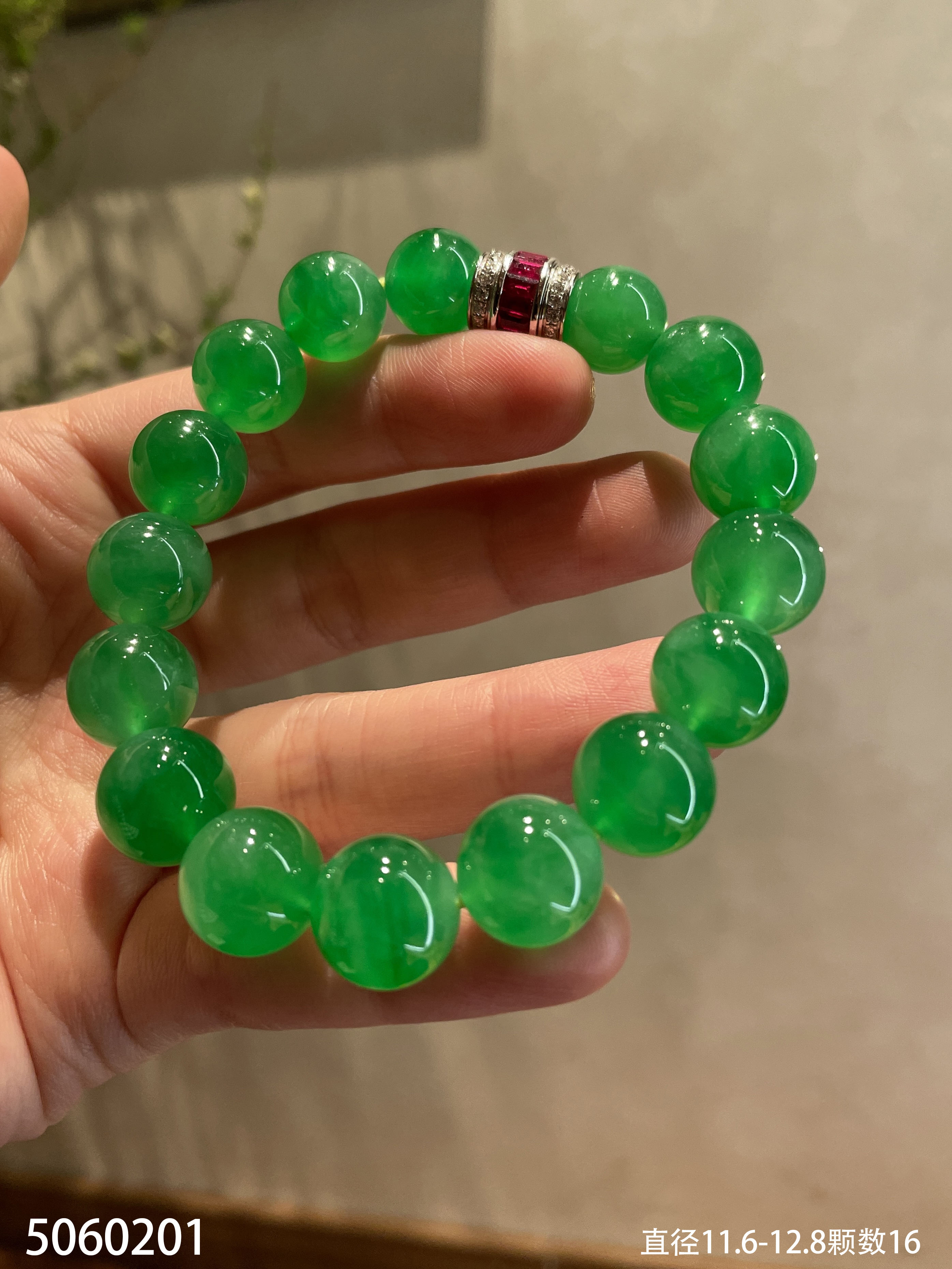 阳艳绿珠子手串【5060201】具体价格微信咨询