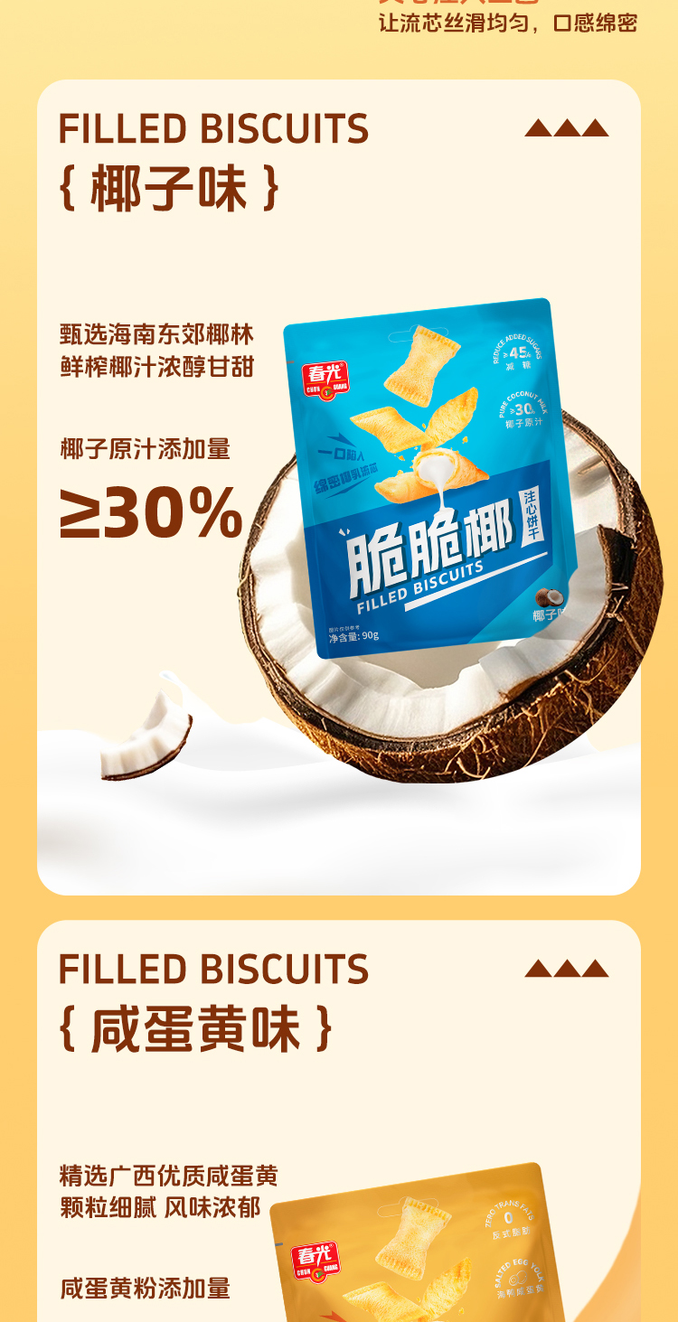 脆脆椰 90g 注心饼干(椰子味) 非偏远地区包邮【会员新品】
