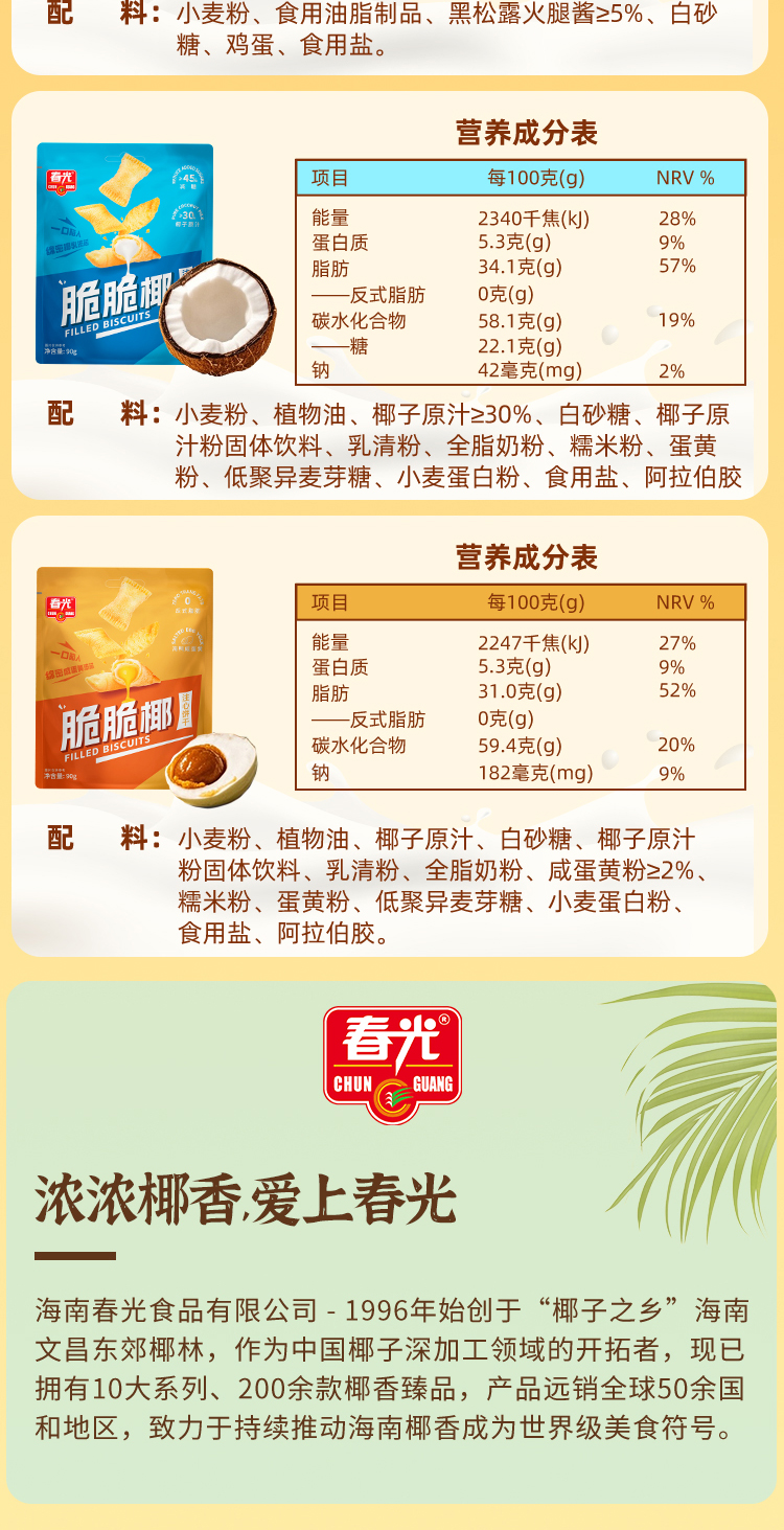 - 海南“著名手信品牌”春光食品,取材于海南椰子故乡,锁住北纬18°的新鲜美味。在这里,您能了解到春光食品旗舰店的最新优惠,享受优惠到不能说的价格。浓浓椰香,爱上春光!