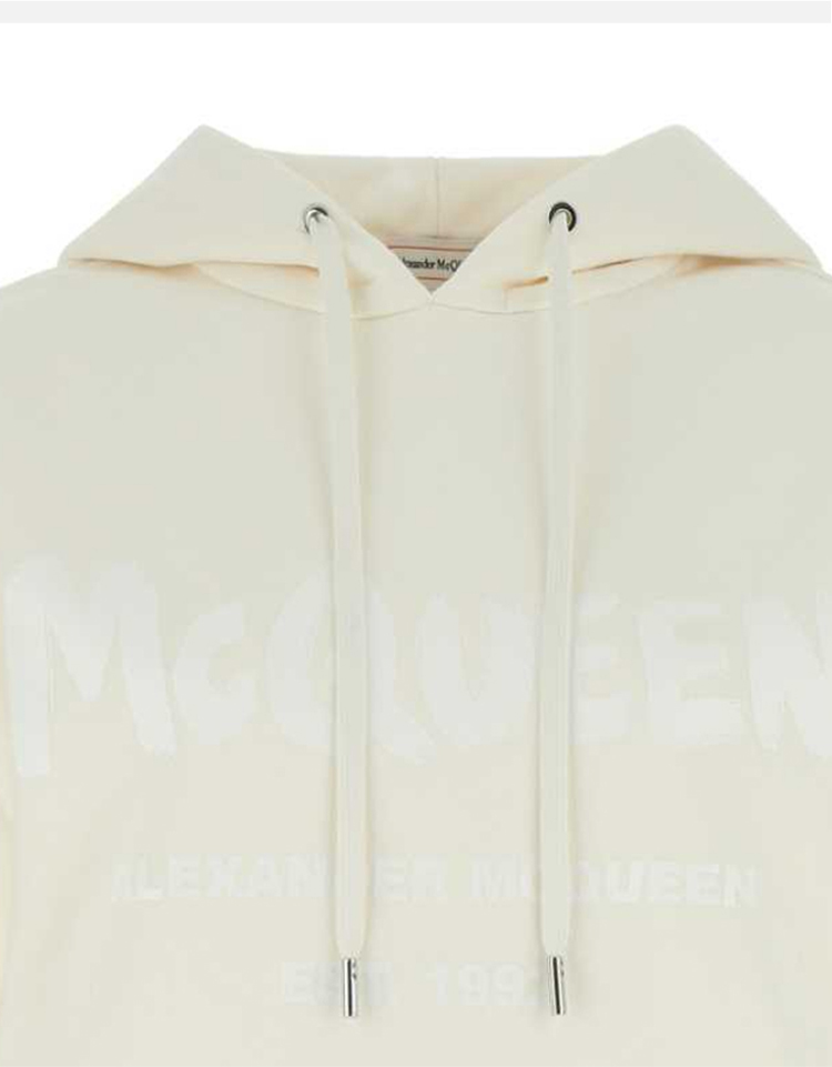 ALEXANDER MCQUEEN 亚历山大.麦昆 女士棉质字母徽标涂鸦印花连帽卫衣 浅黄色 674882 QZAHR 0954