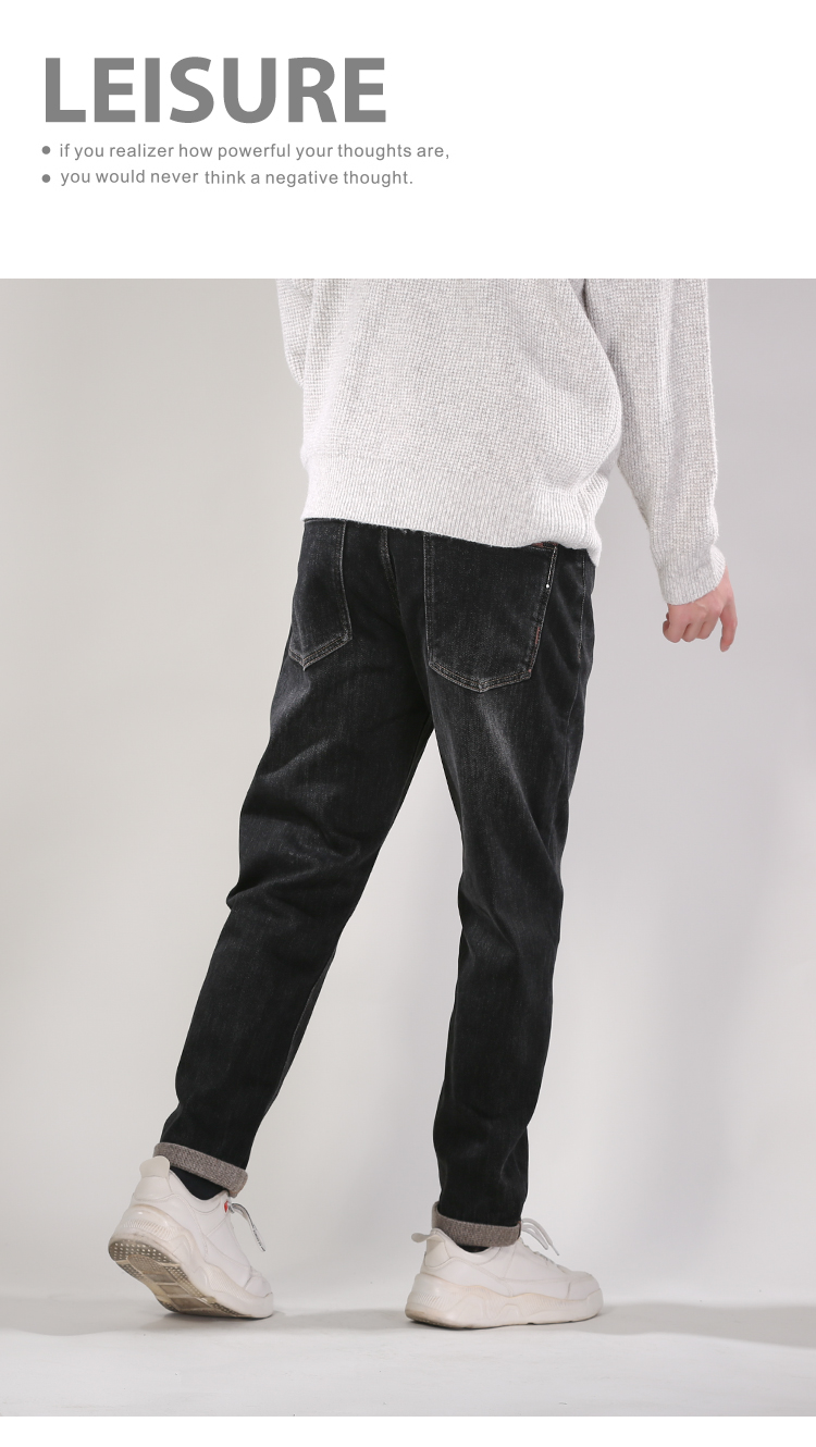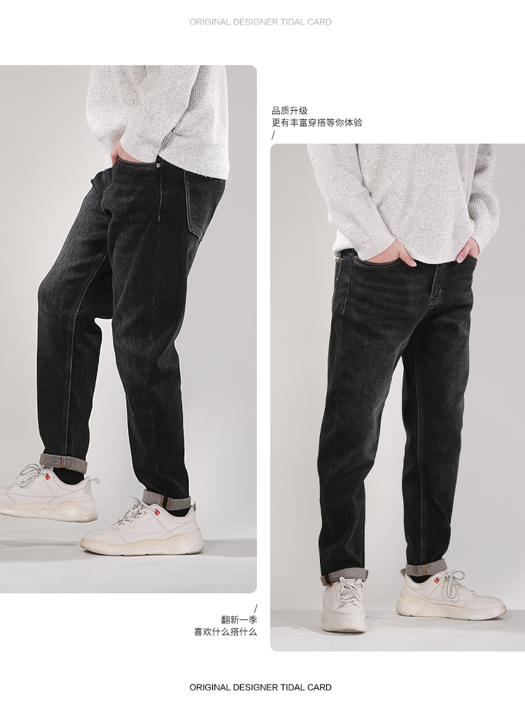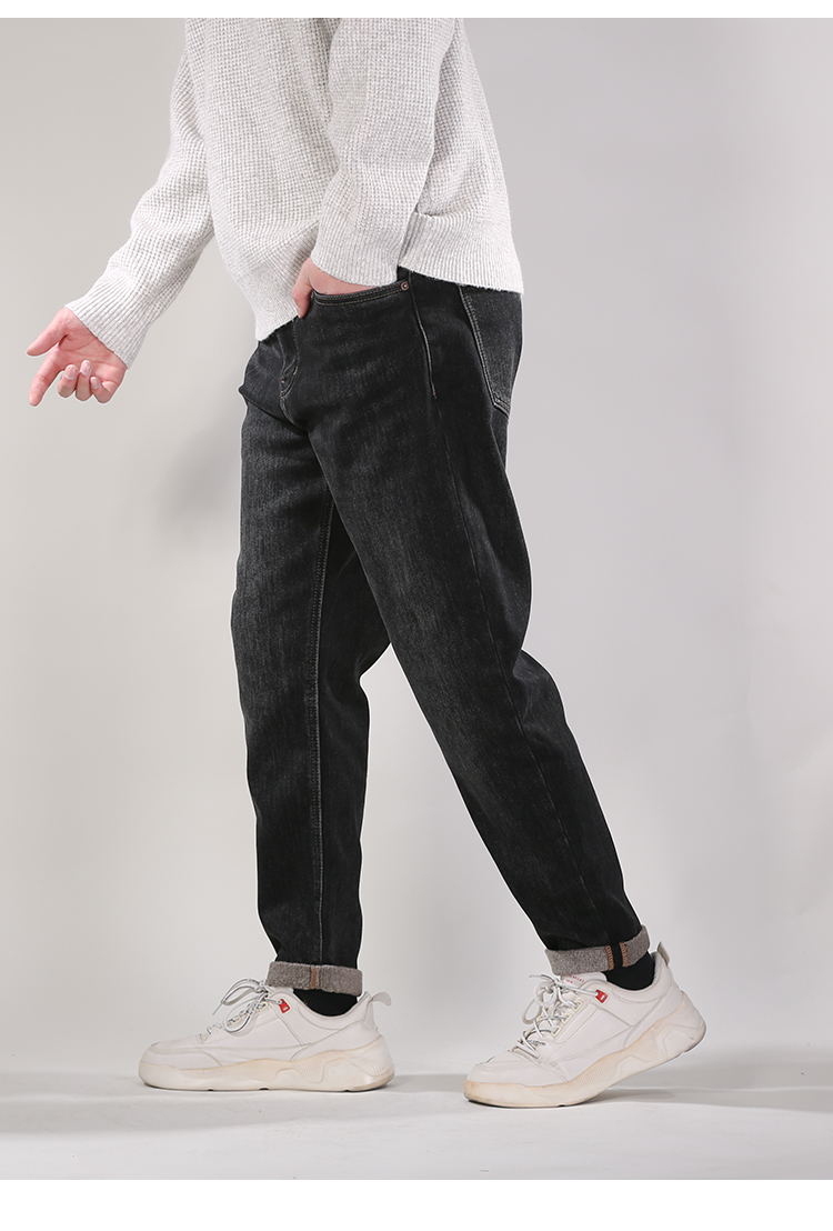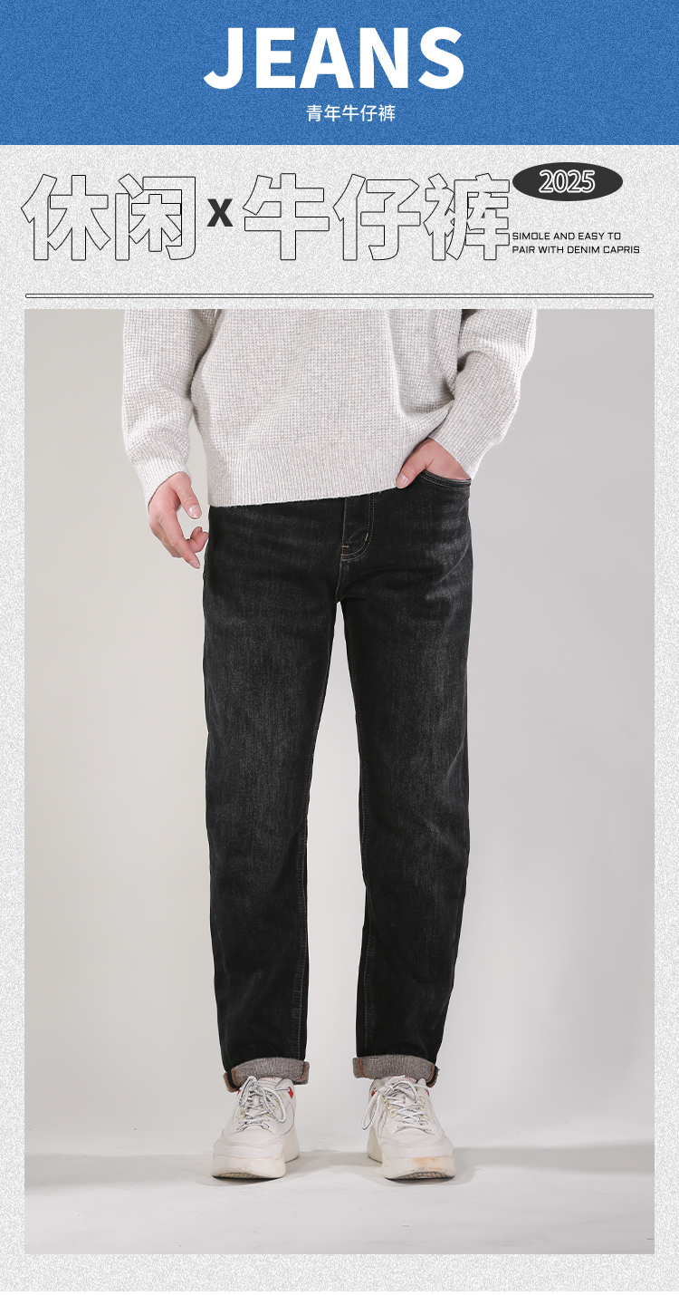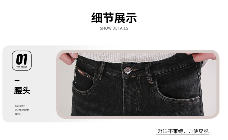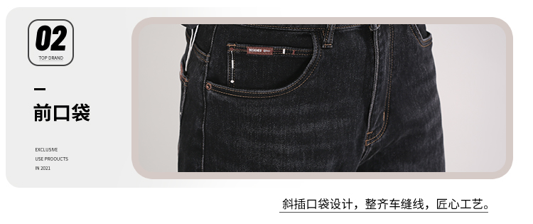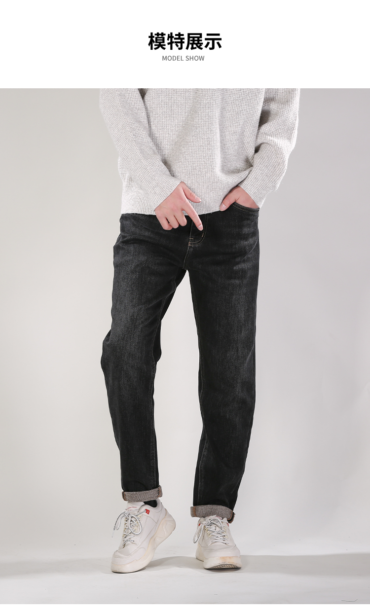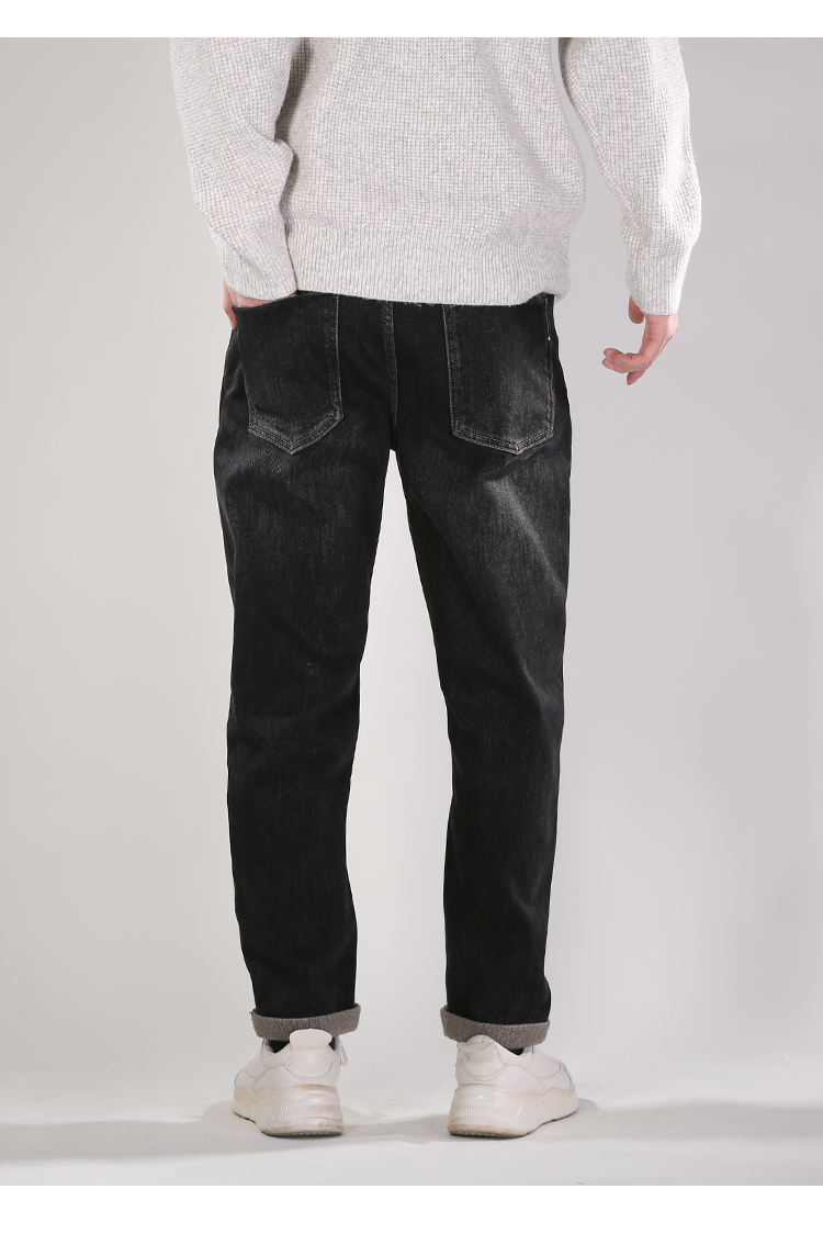 DRONKOO 2025 正常腰表袋右后袋白标绣线一体绒厚牛仔长裤