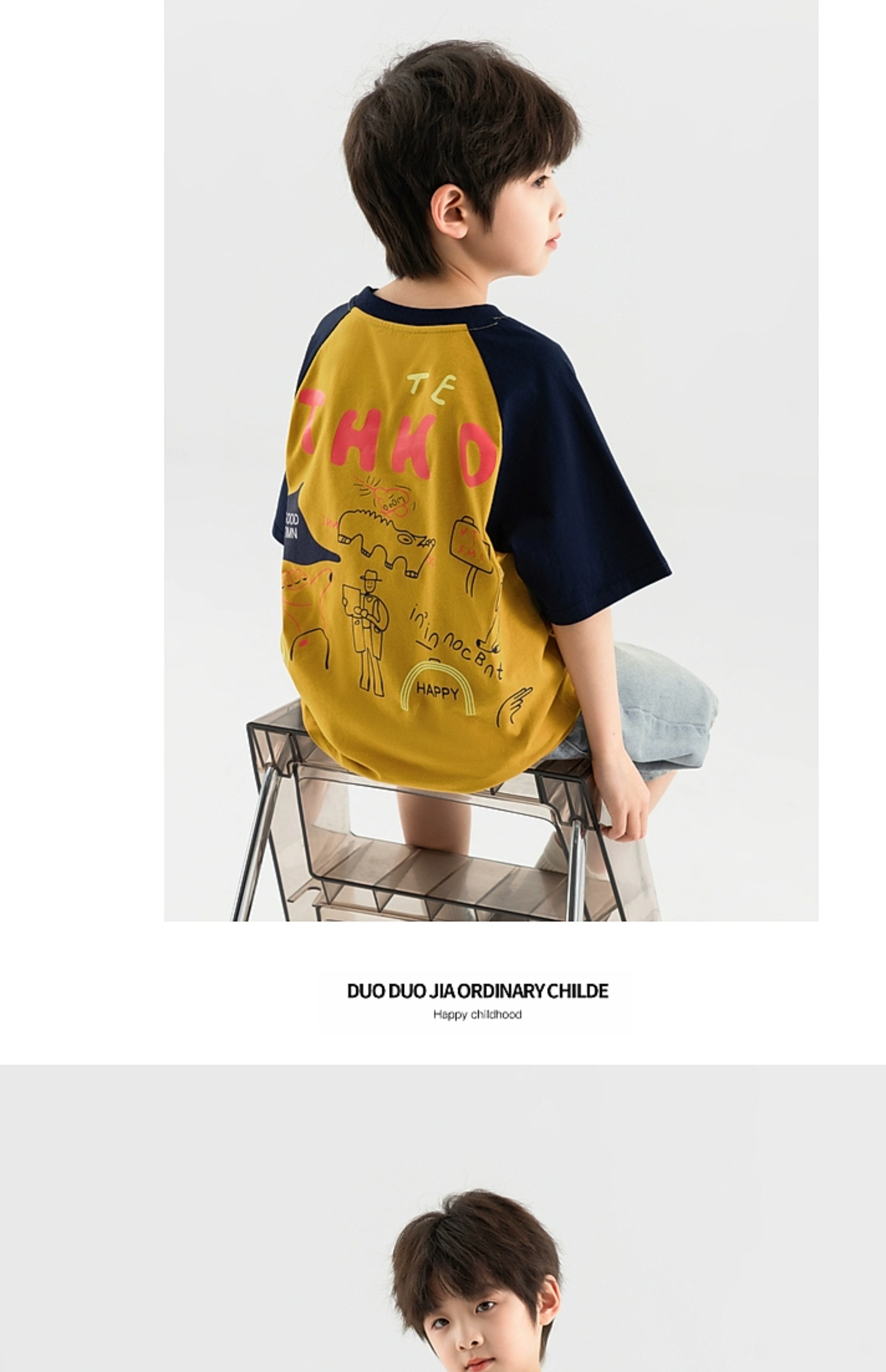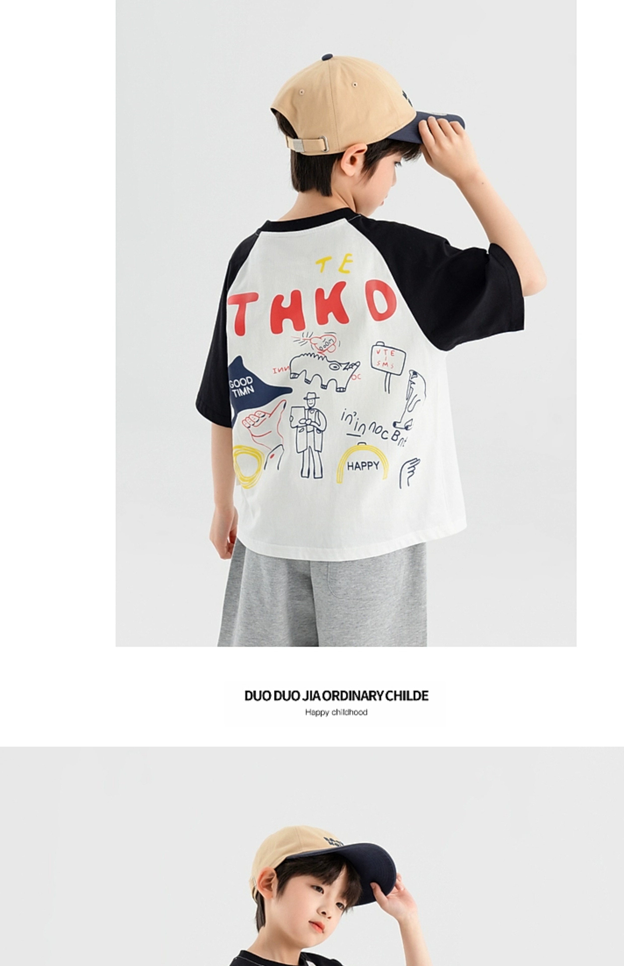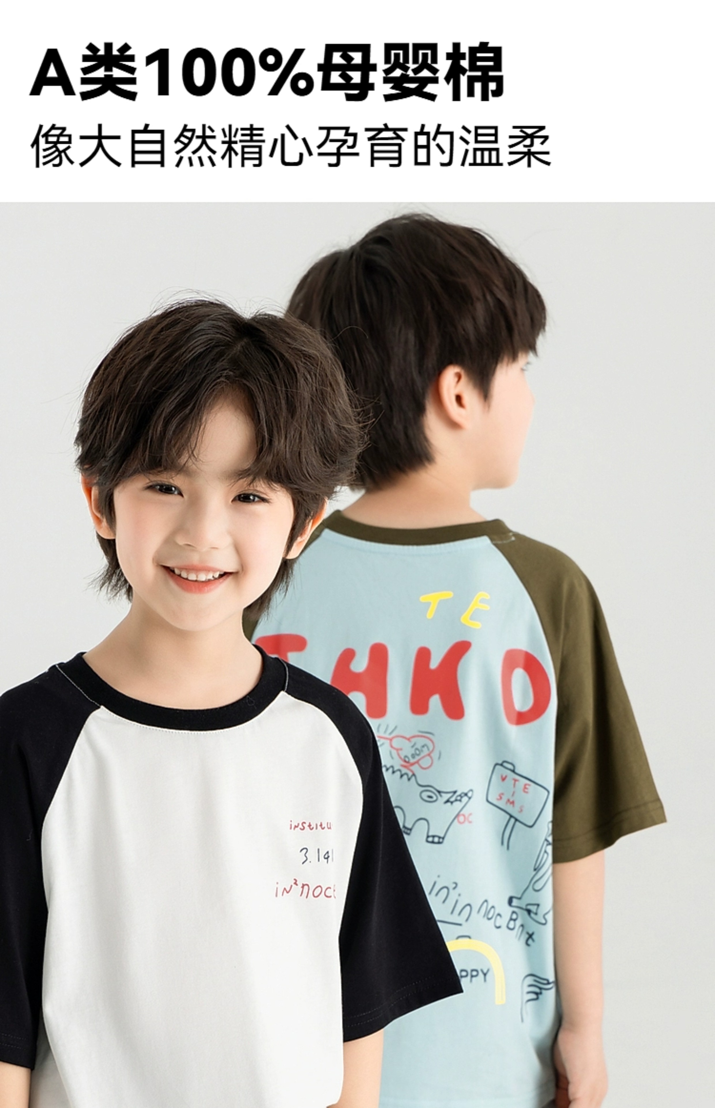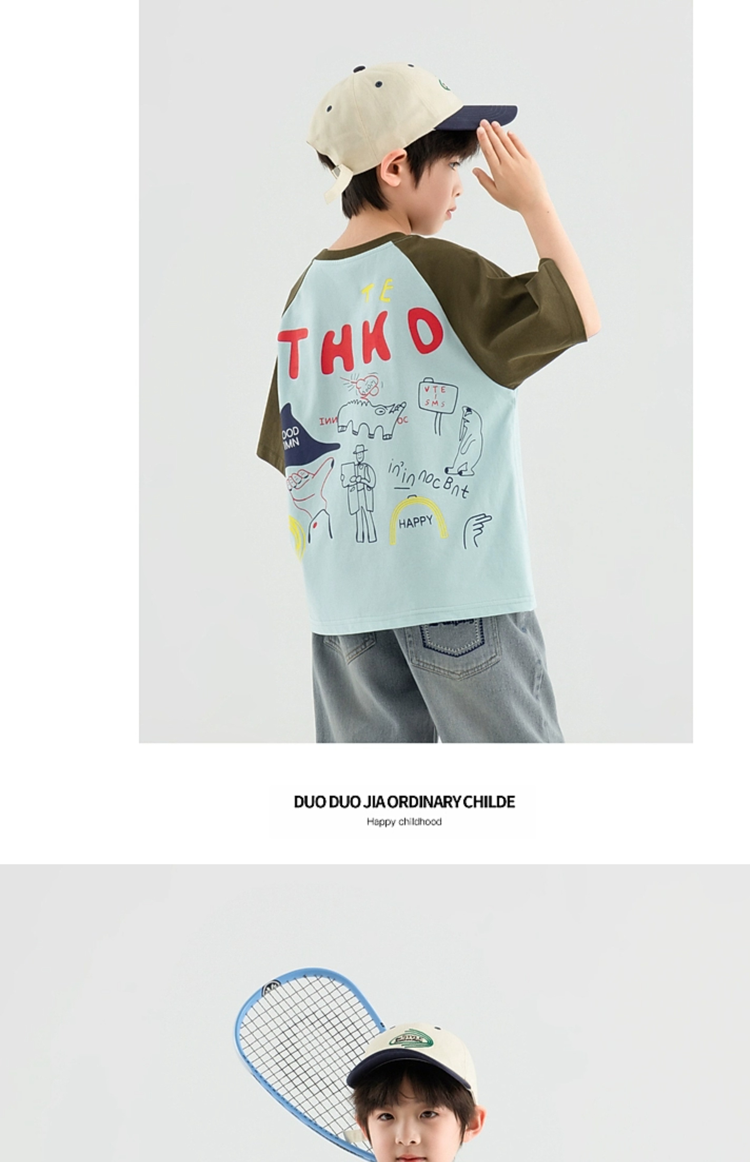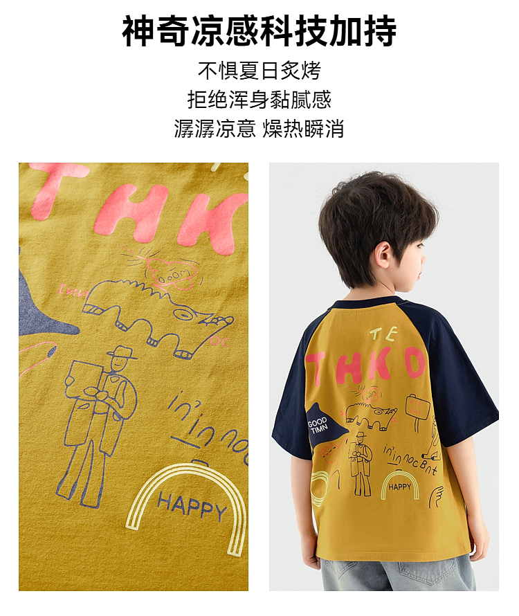 【件件底价~团购24.9元】多多家男童短袖T恤凉感2025新款夏季儿童中大童插肩袖印花半袖潮10505
