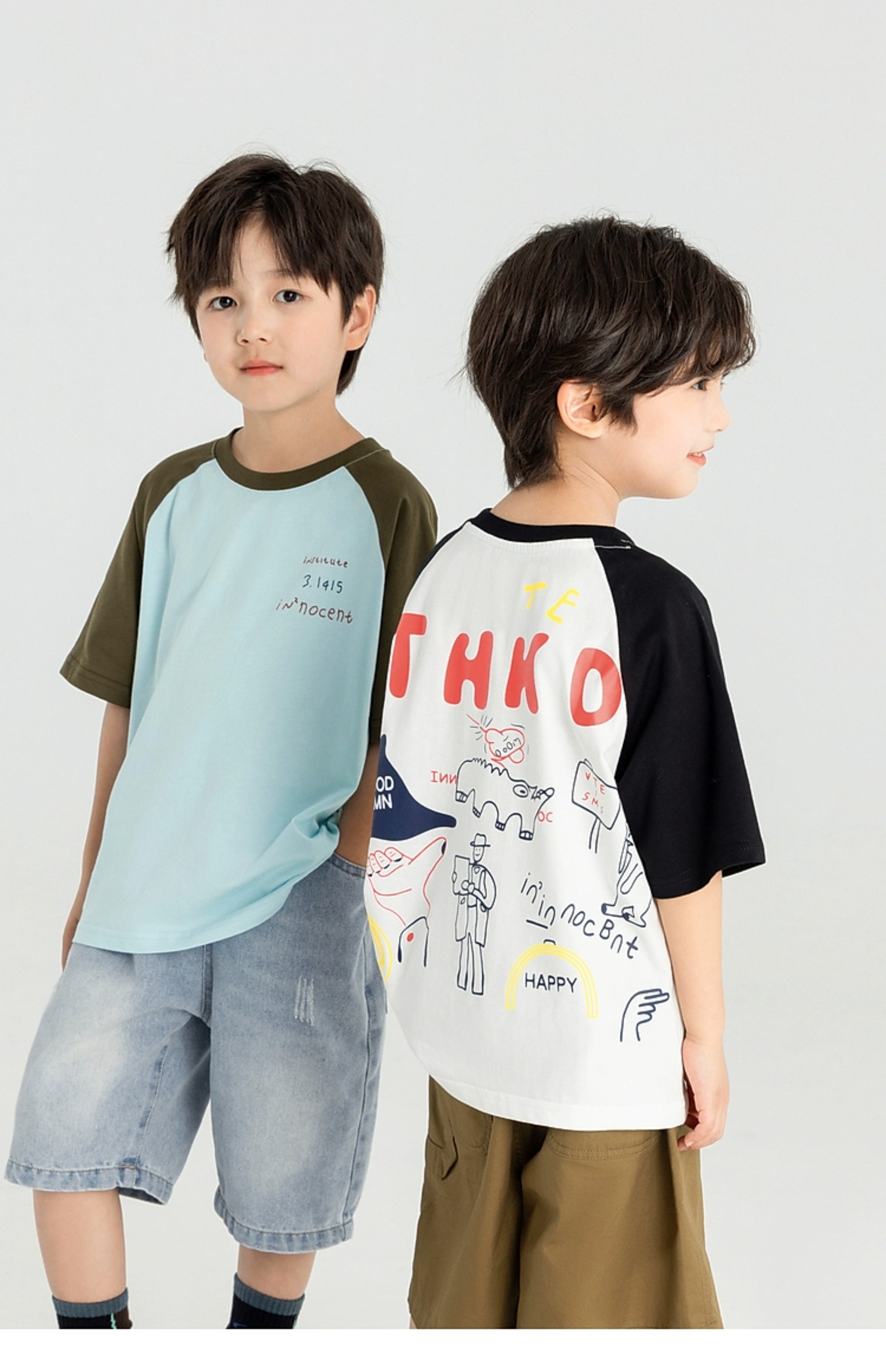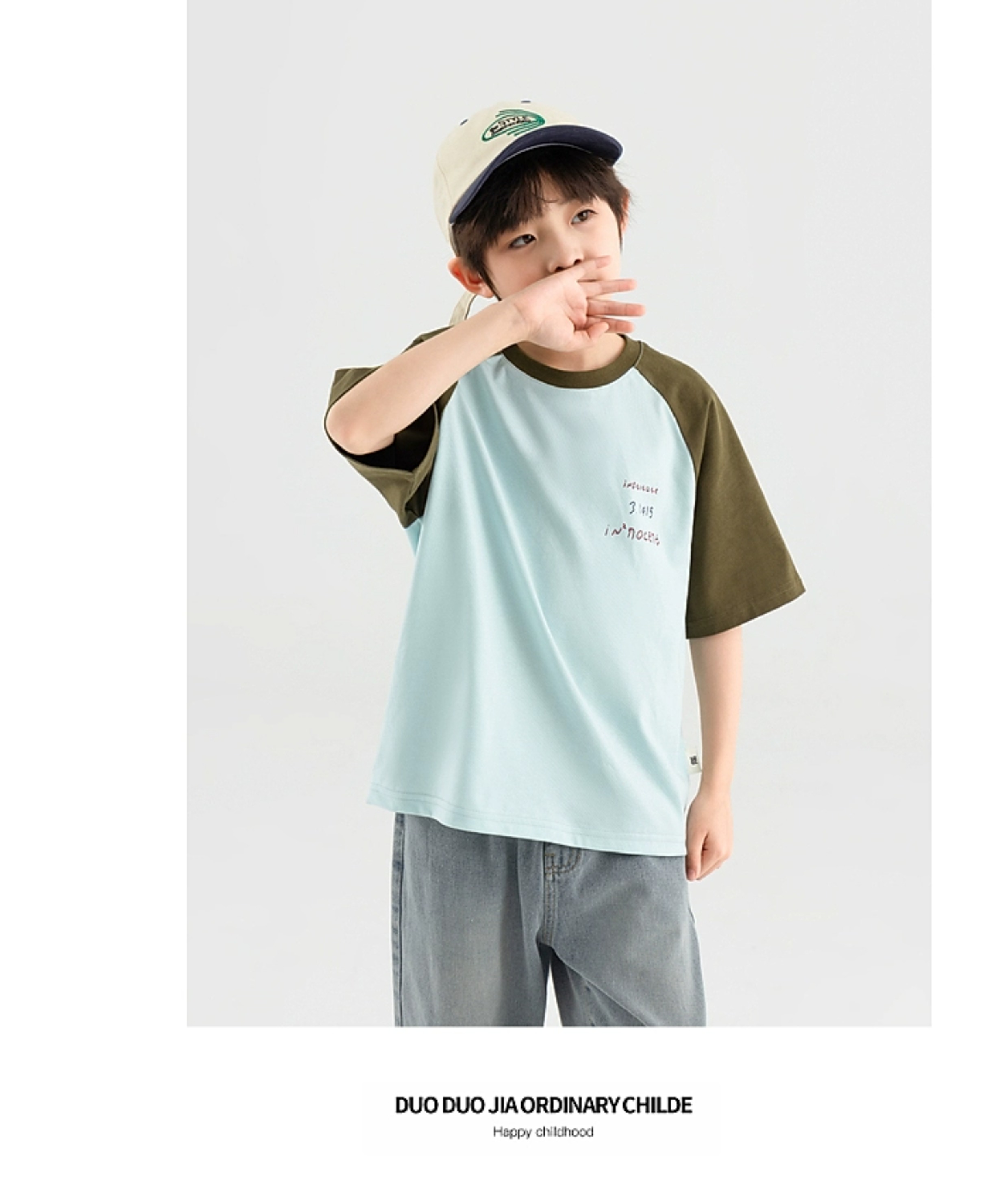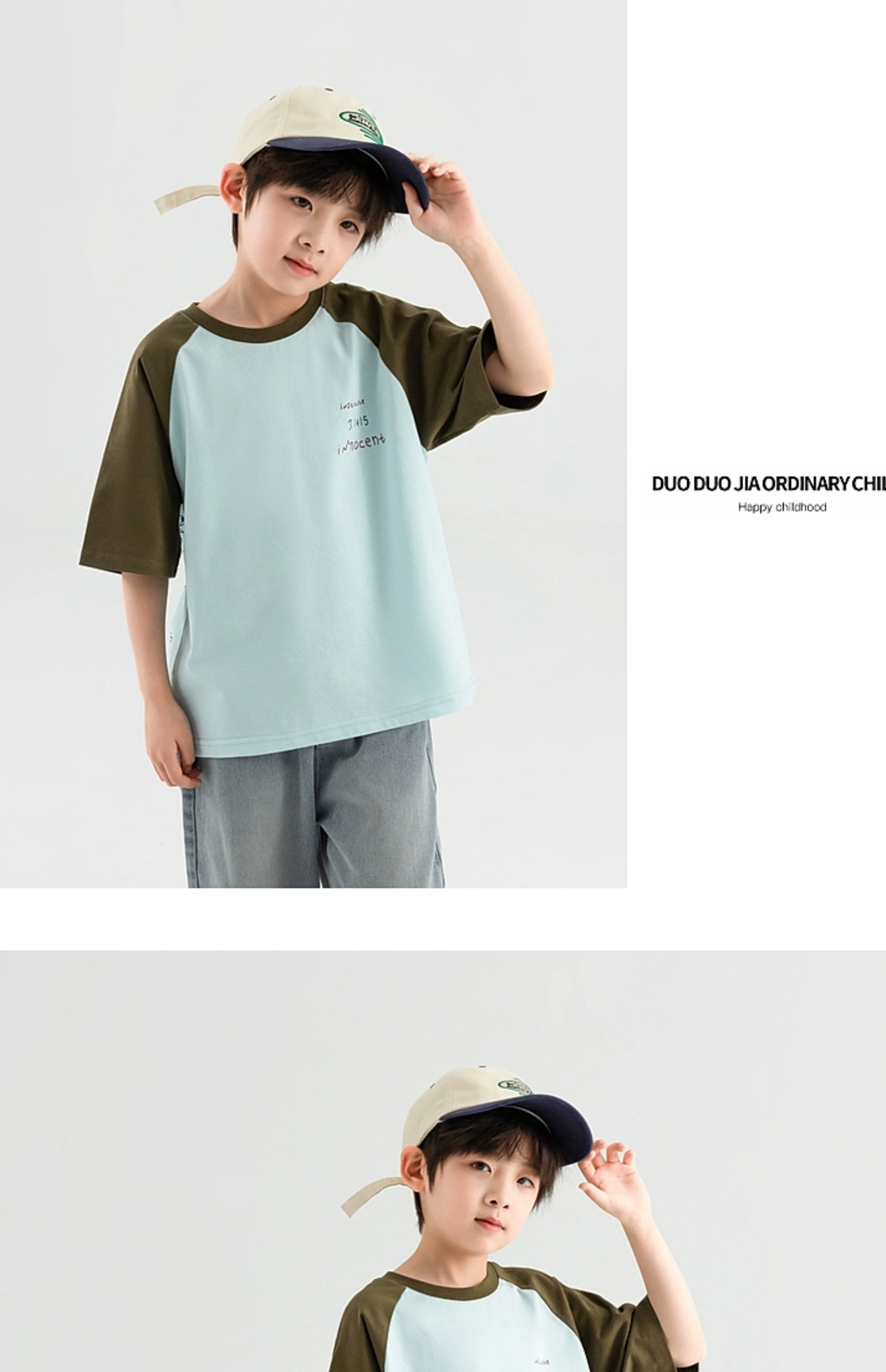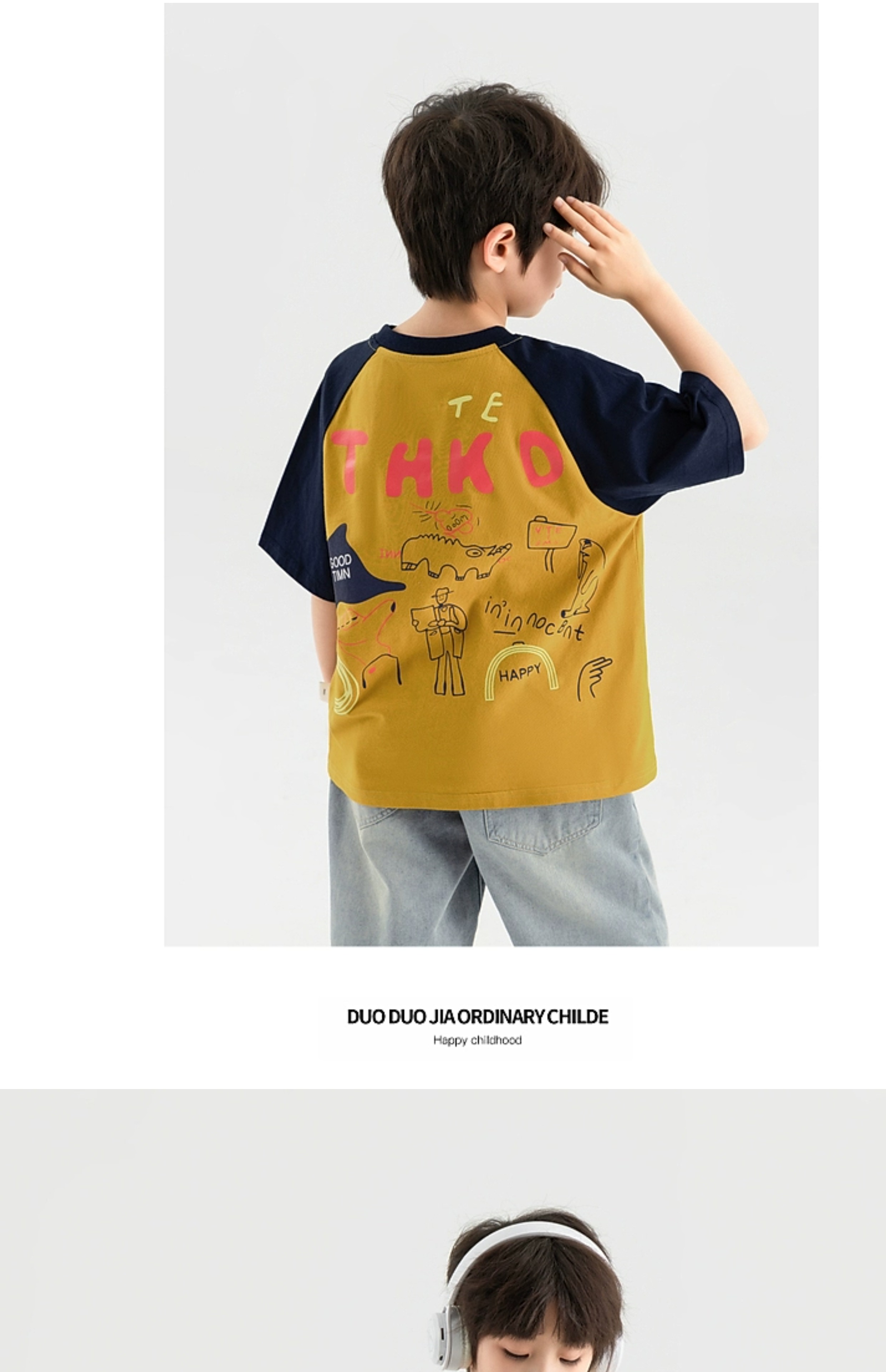 【件件底价~团购24.9元】多多家男童短袖T恤凉感2025新款夏季儿童中大童插肩袖印花半袖潮10505