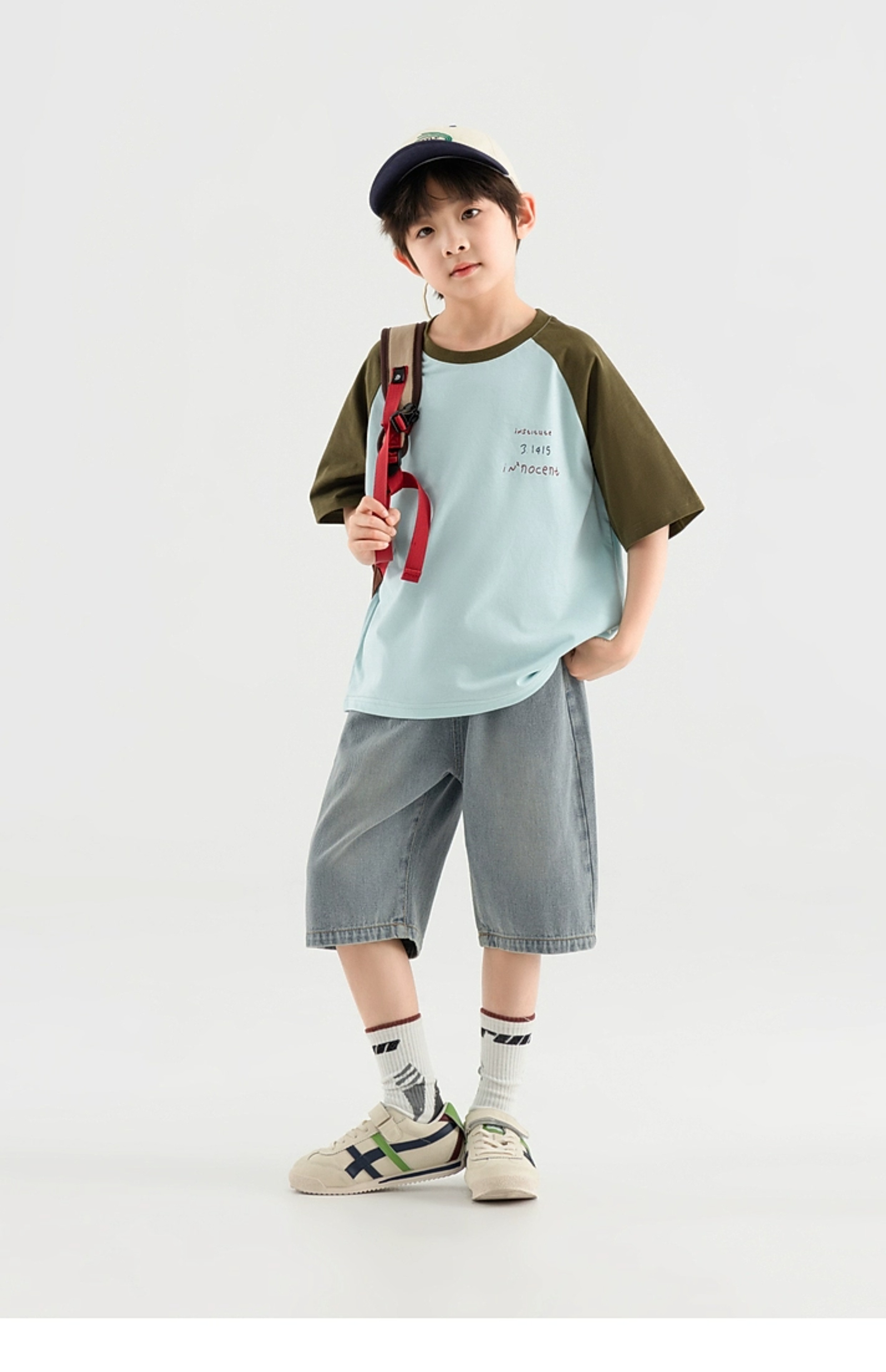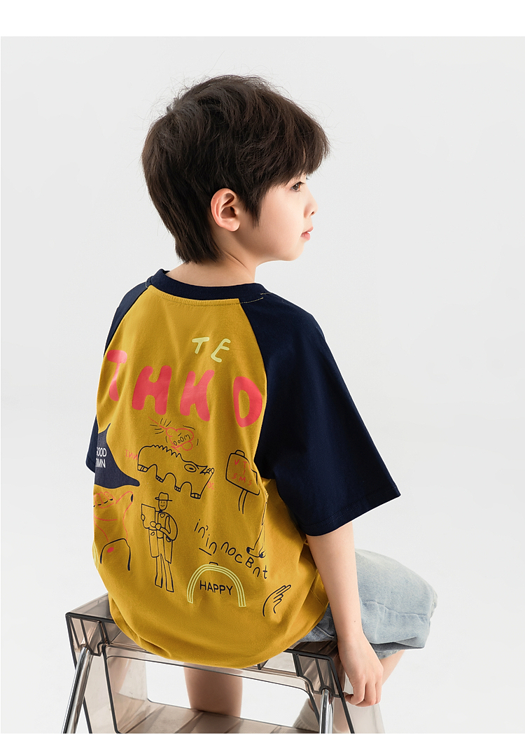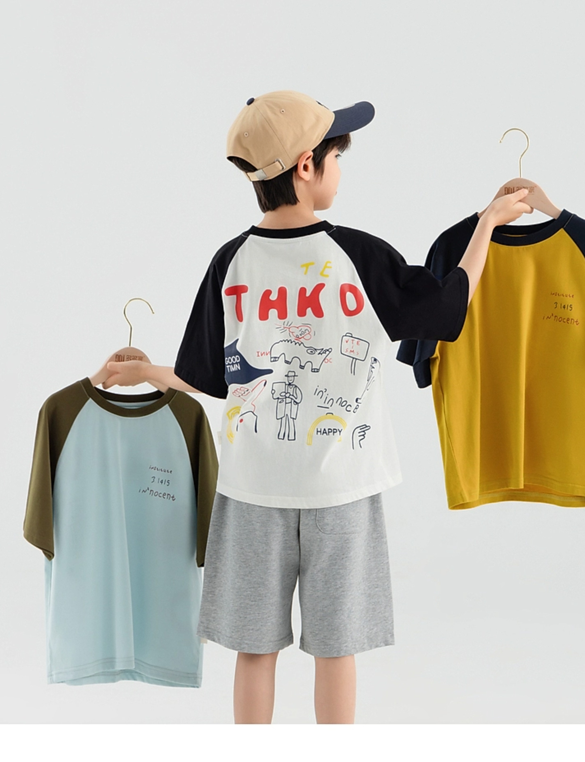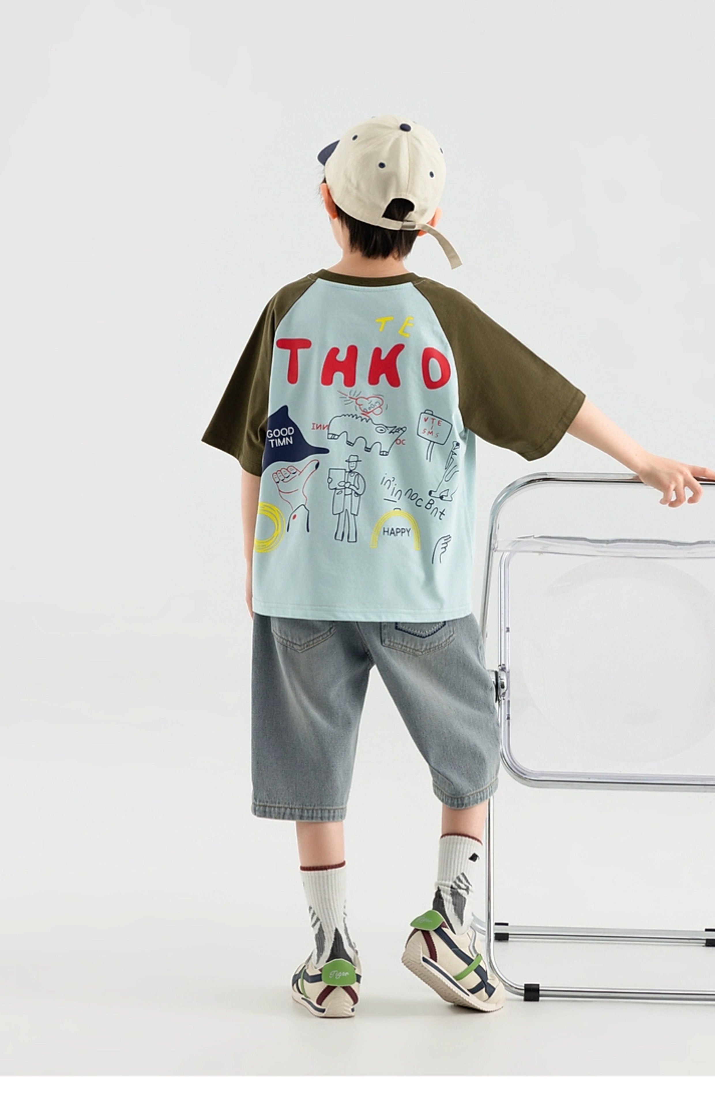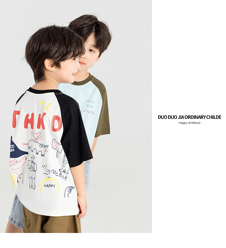 【件件底价~团购24.9元】多多家男童短袖T恤凉感2025新款夏季儿童中大童插肩袖印花半袖潮10505