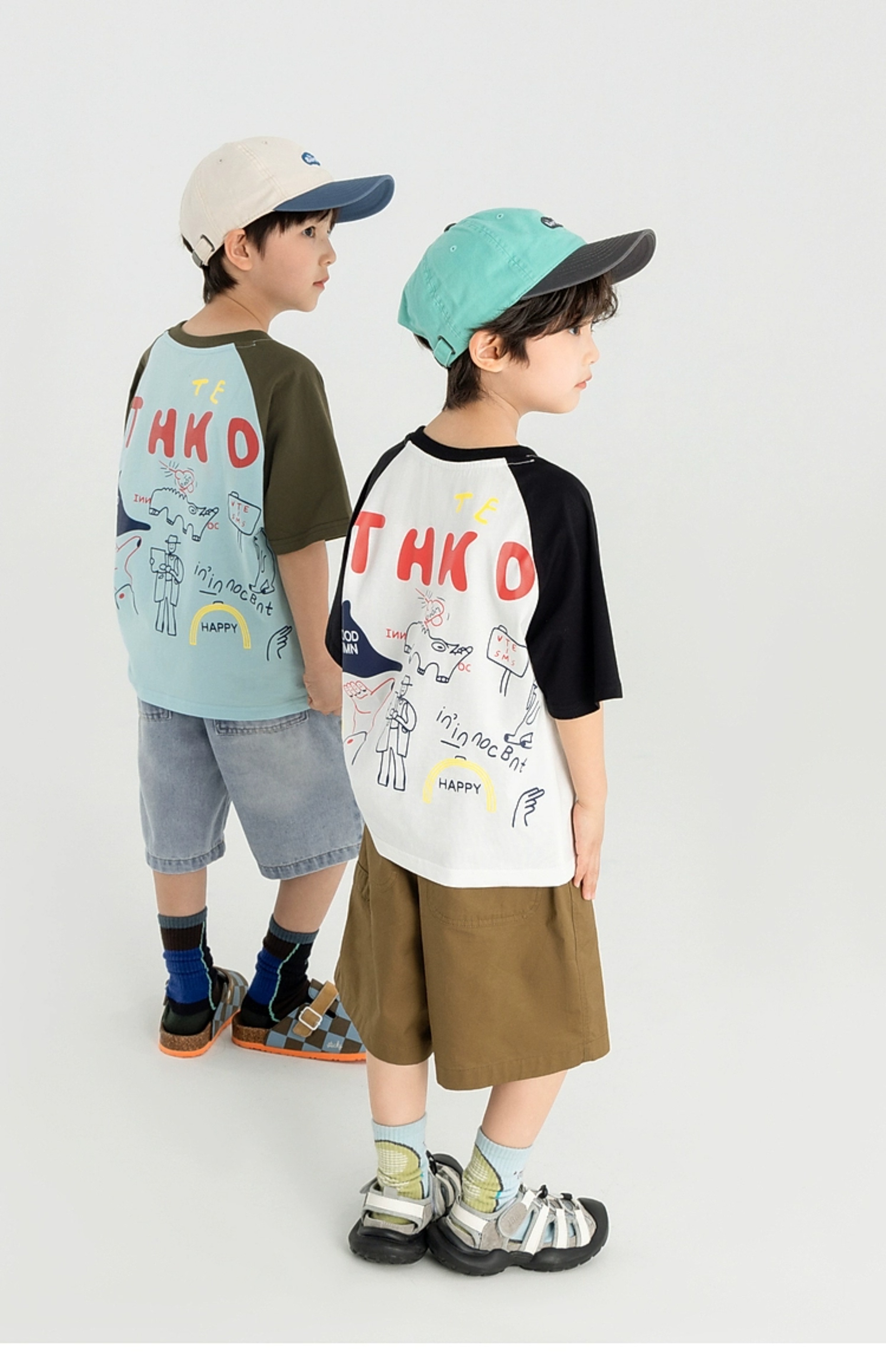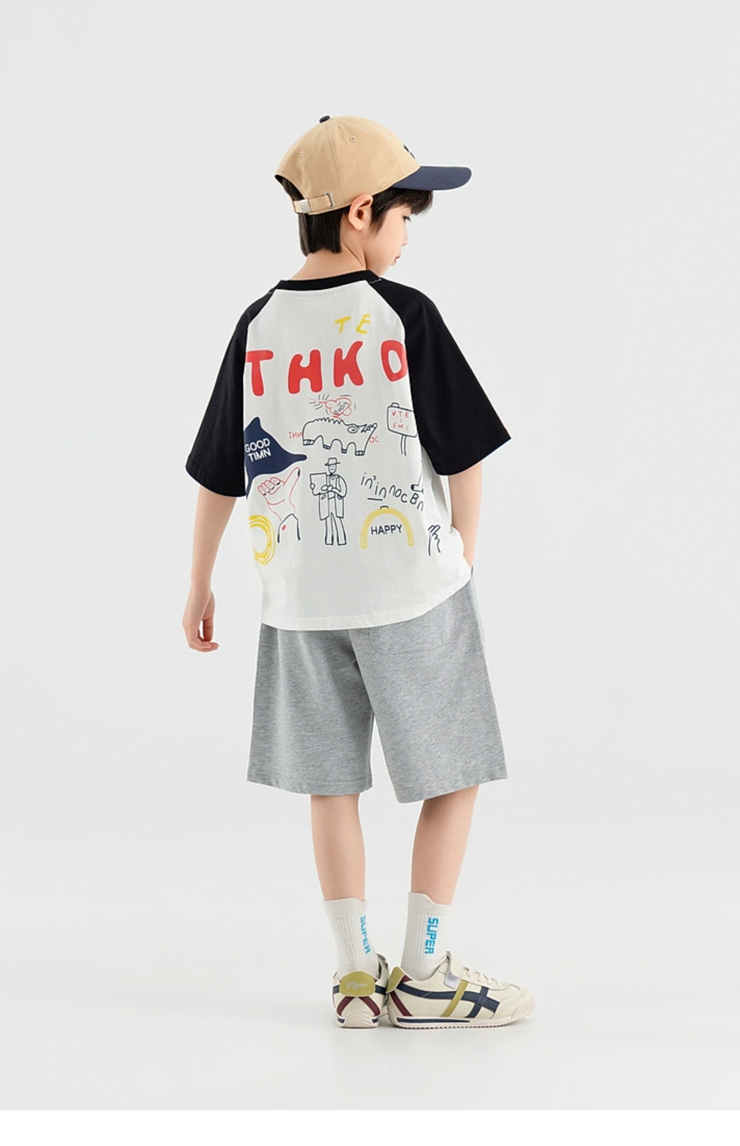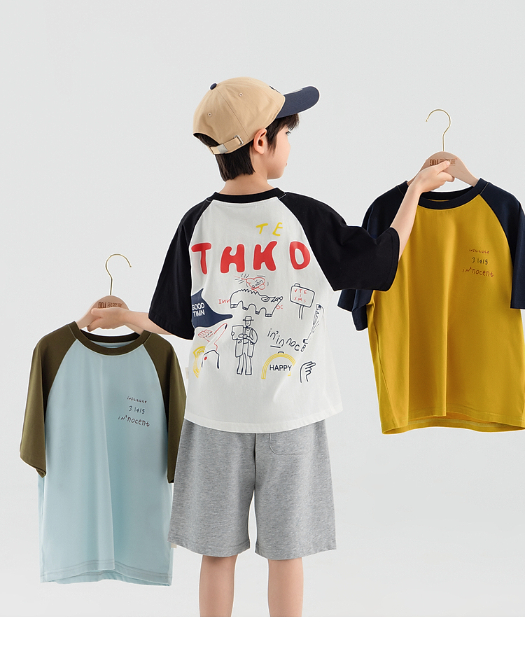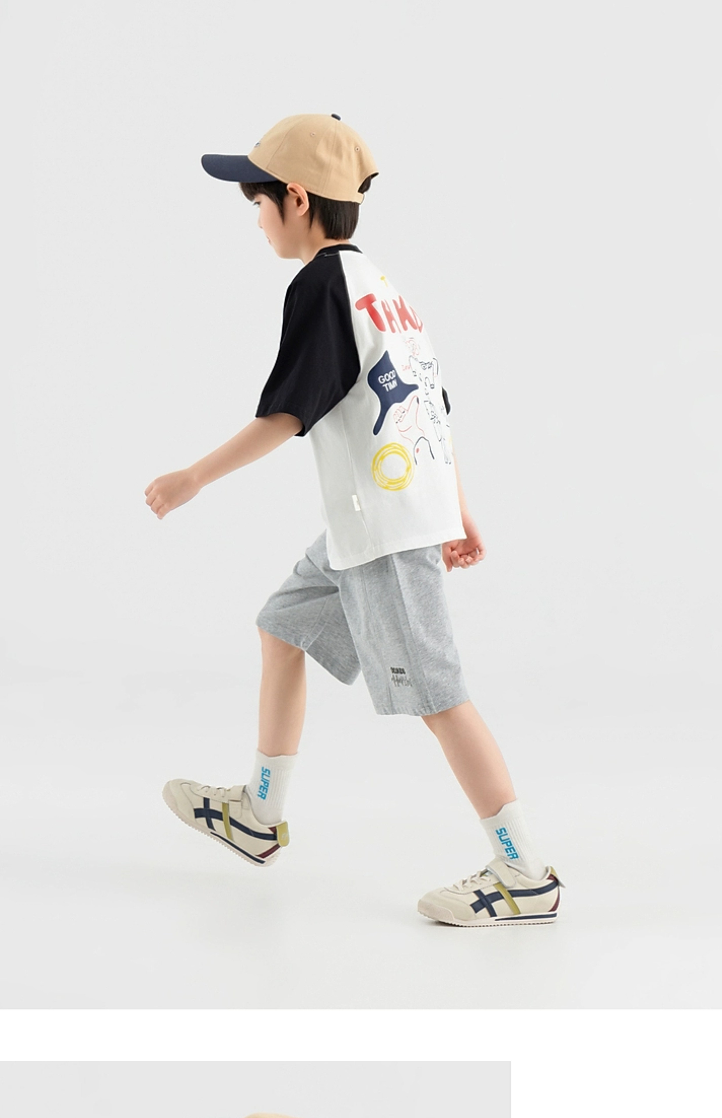 【件件底价~团购24.9元】多多家男童短袖T恤凉感2025新款夏季儿童中大童插肩袖印花半袖潮10505