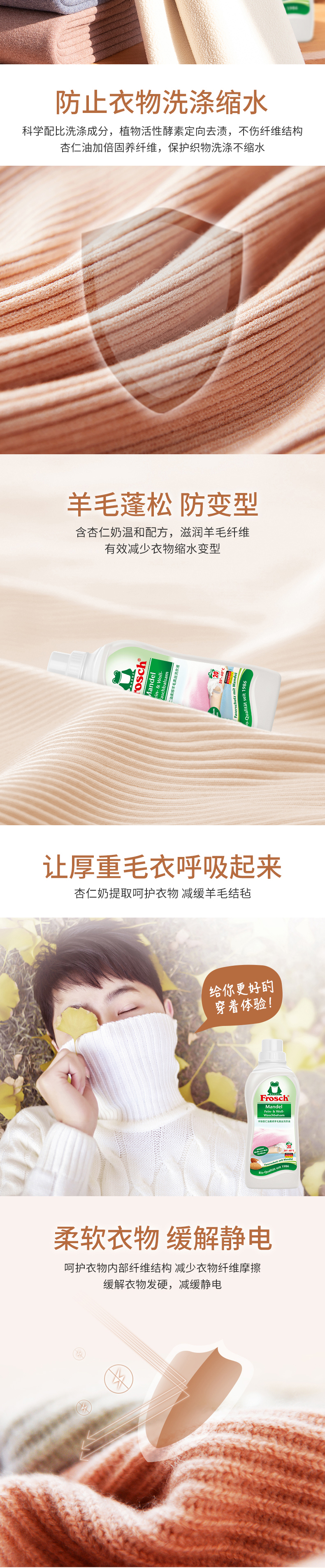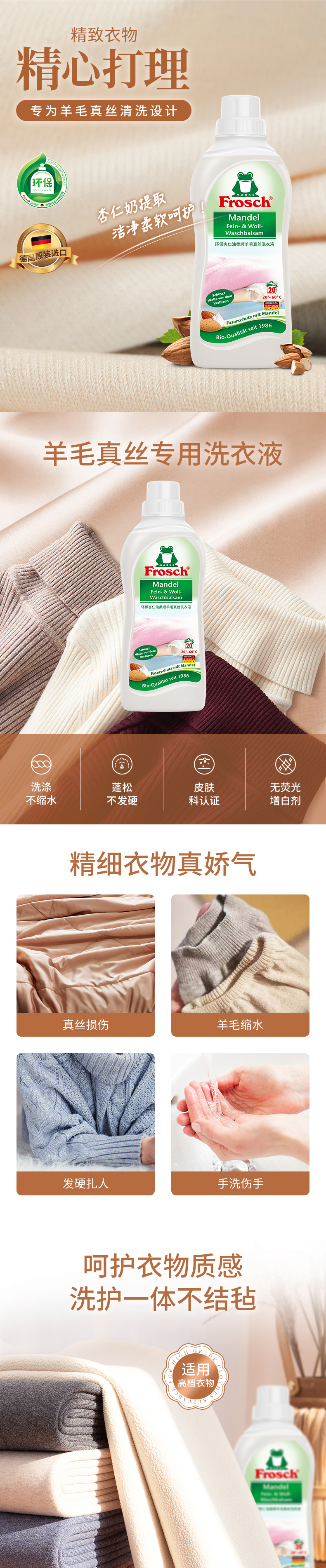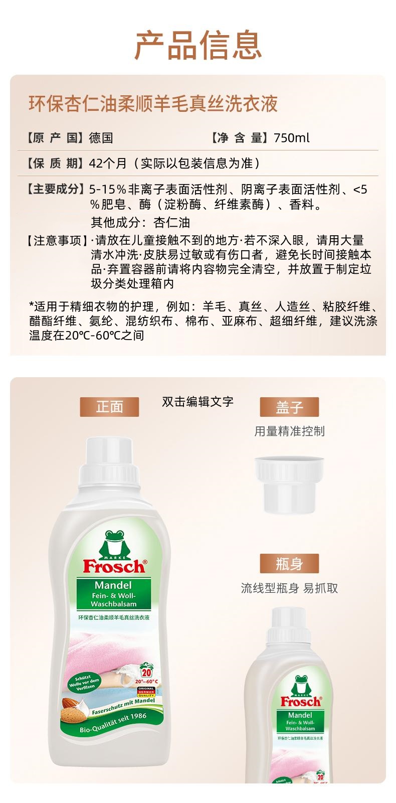德国进口Frosch环保杏仁油柔顺羊毛真丝洗衣液750ml