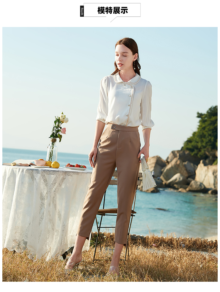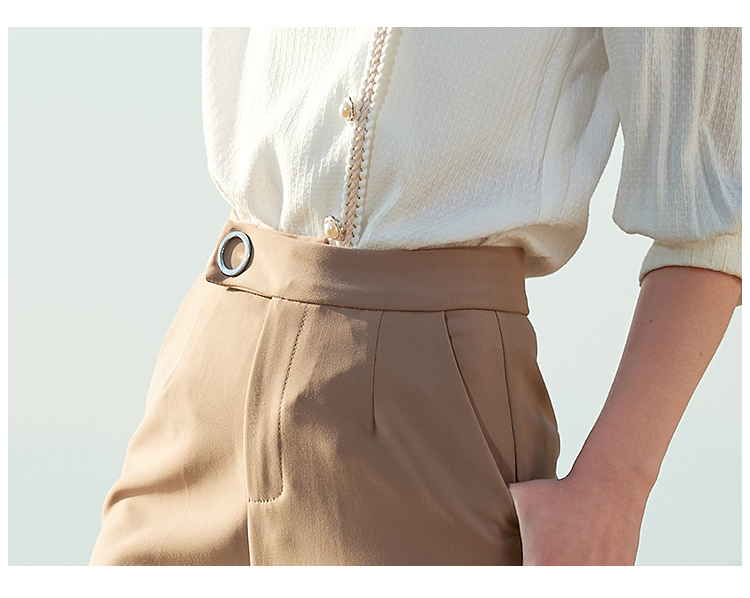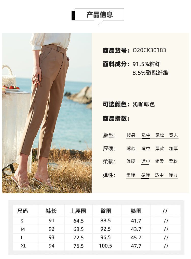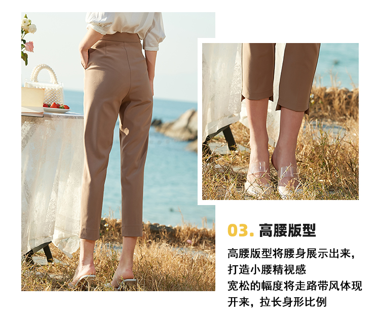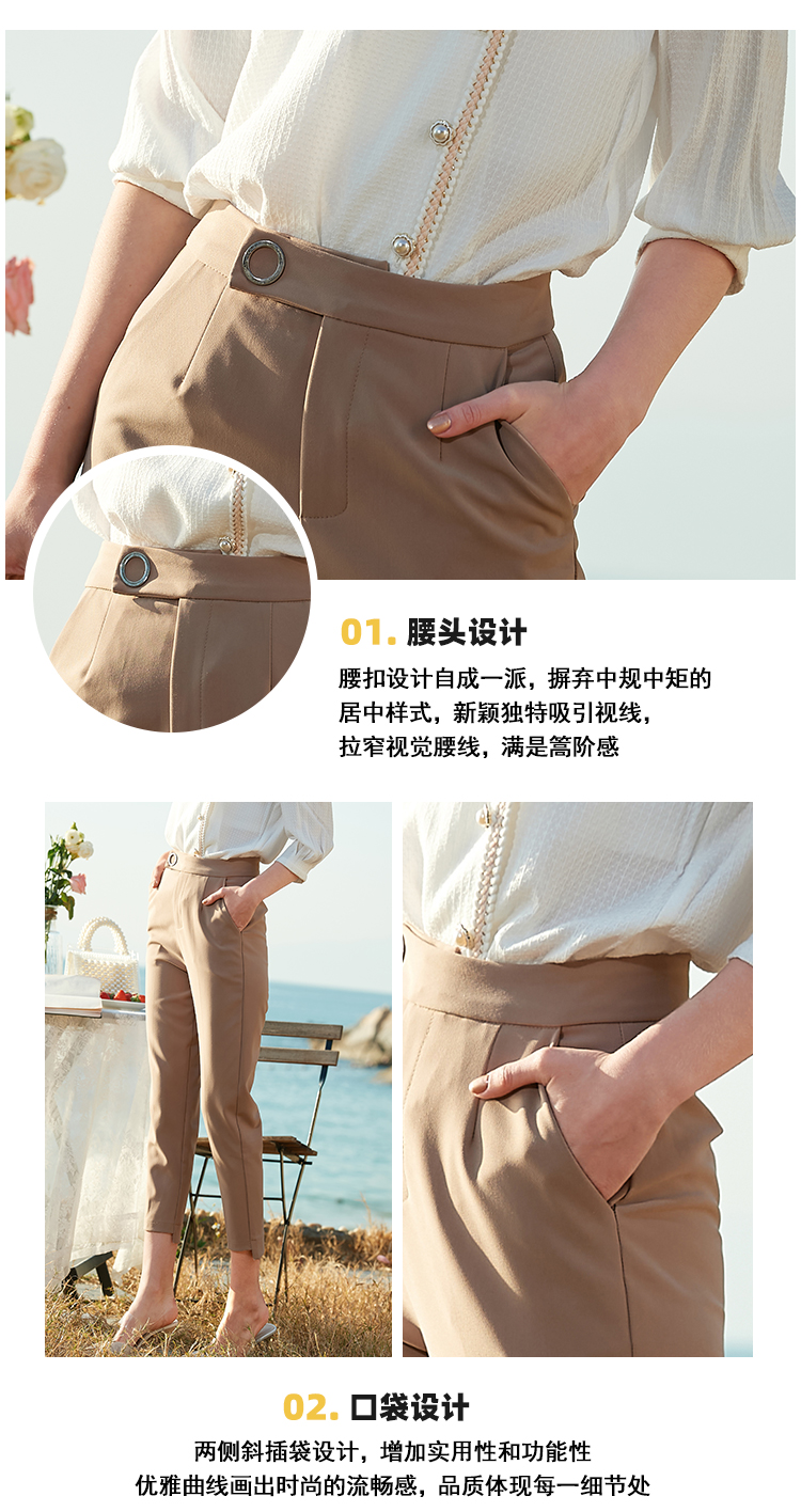 欧芮儿2021夏装新款高腰显瘦九分休闲裤通勤OL风修身咖色哈伦裤潮