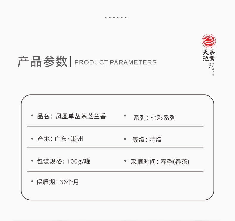 天池茶业芝兰香新品单丛茶叶凤凰高山茶乌龙茶清香型100g