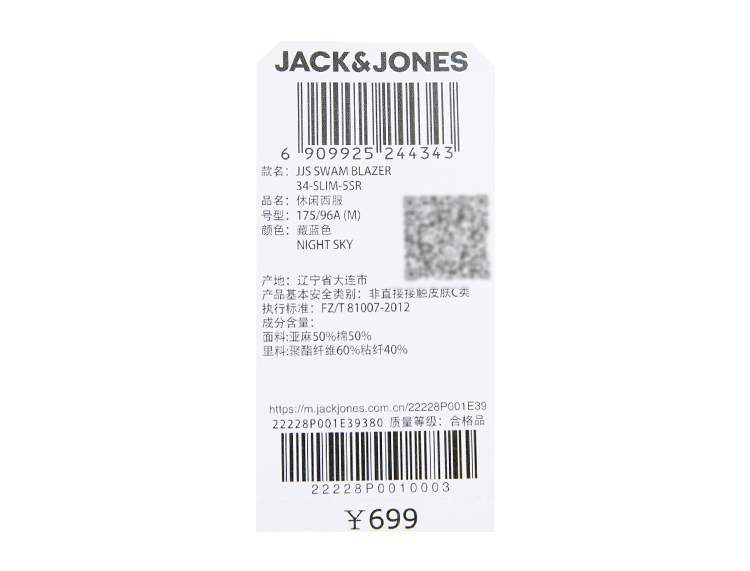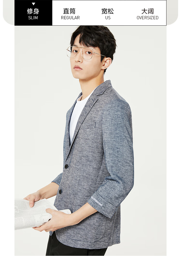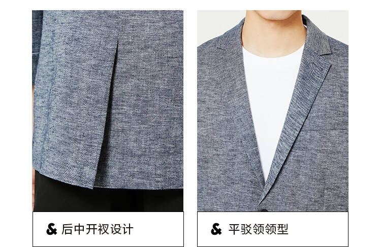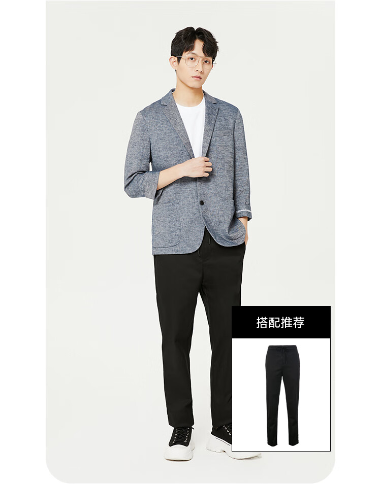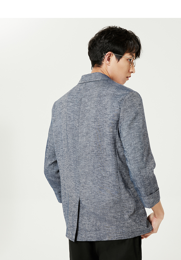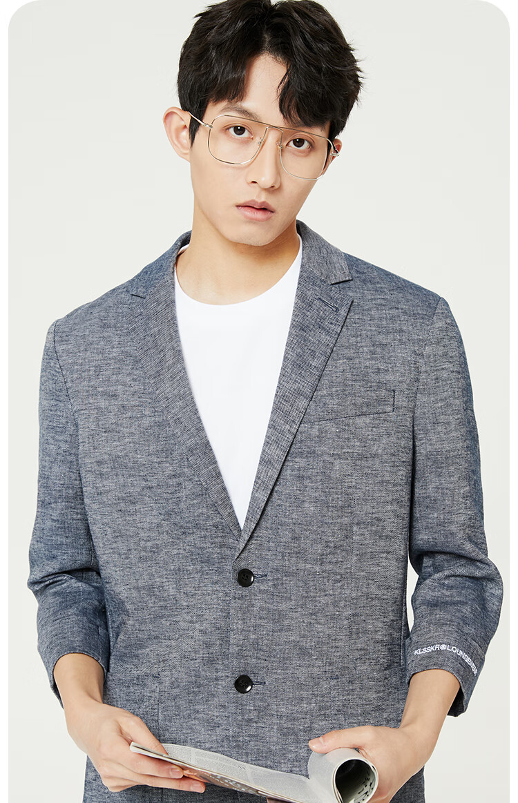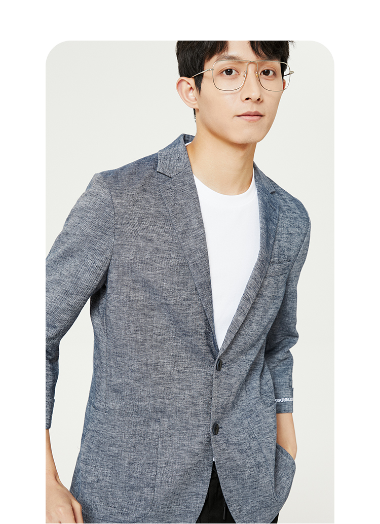 JackJones杰克琼斯春修身亚麻混合环保可降解材质平驳领西装外套22228P001 E39藏蓝色