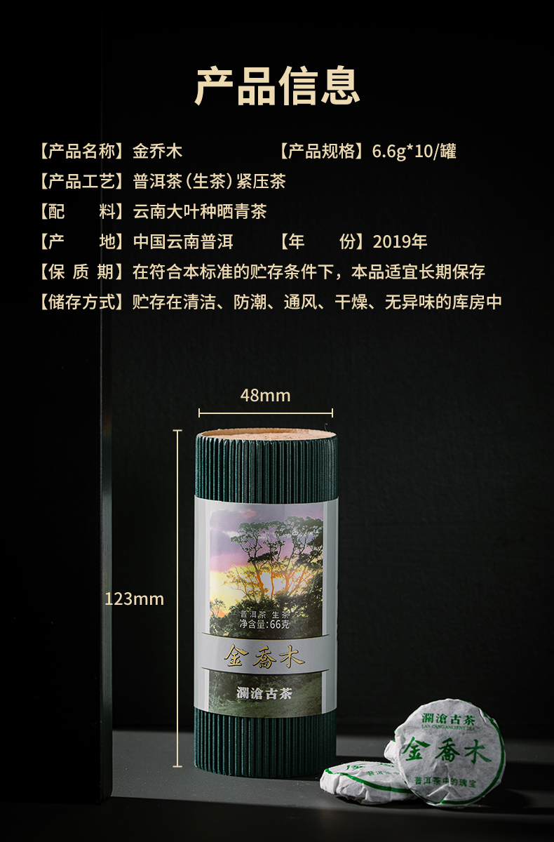 澜沧古茶金乔木普洱茶生茶小茶饼单筒66g/瓶