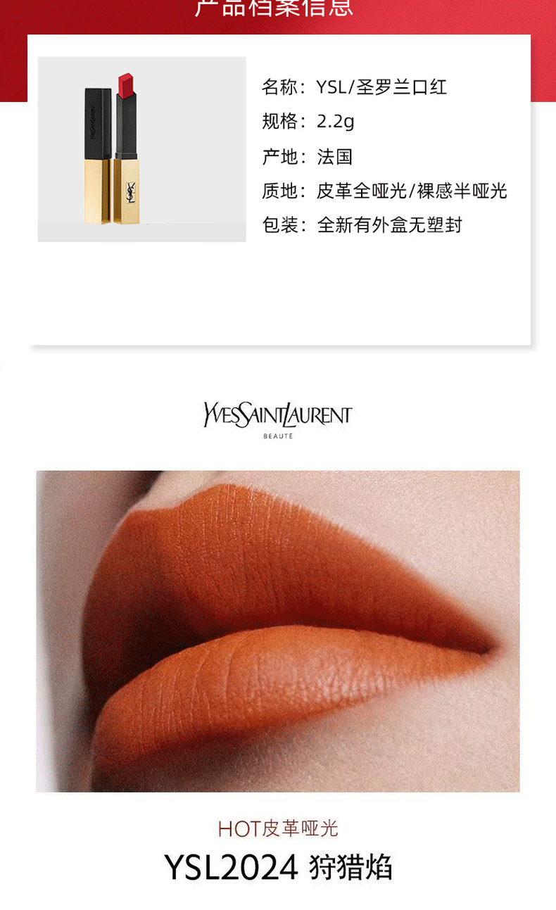 YSL圣罗兰细管纯口红小金条2.2g#2024狩猎色