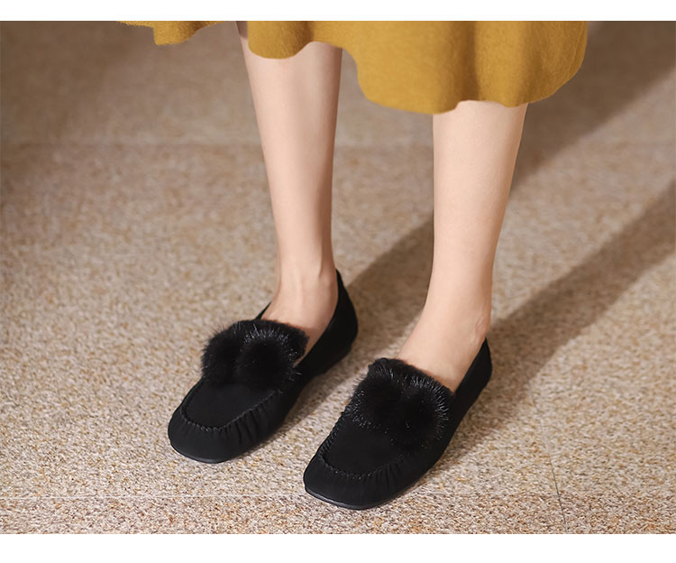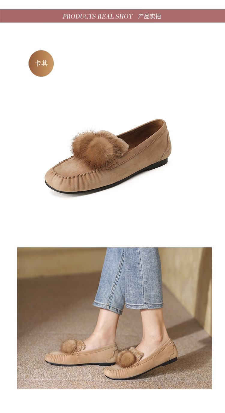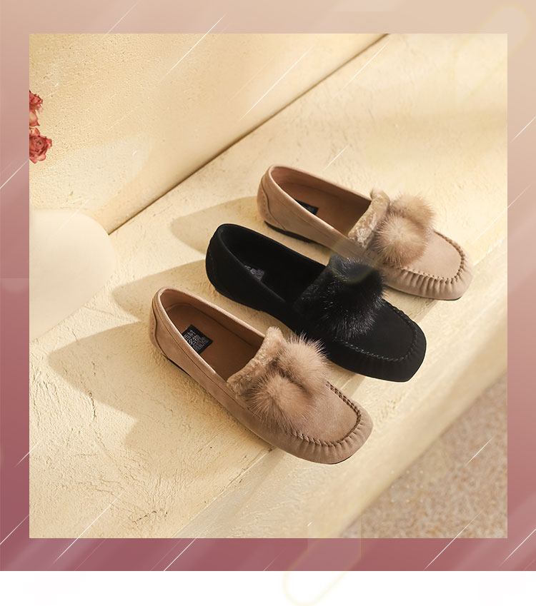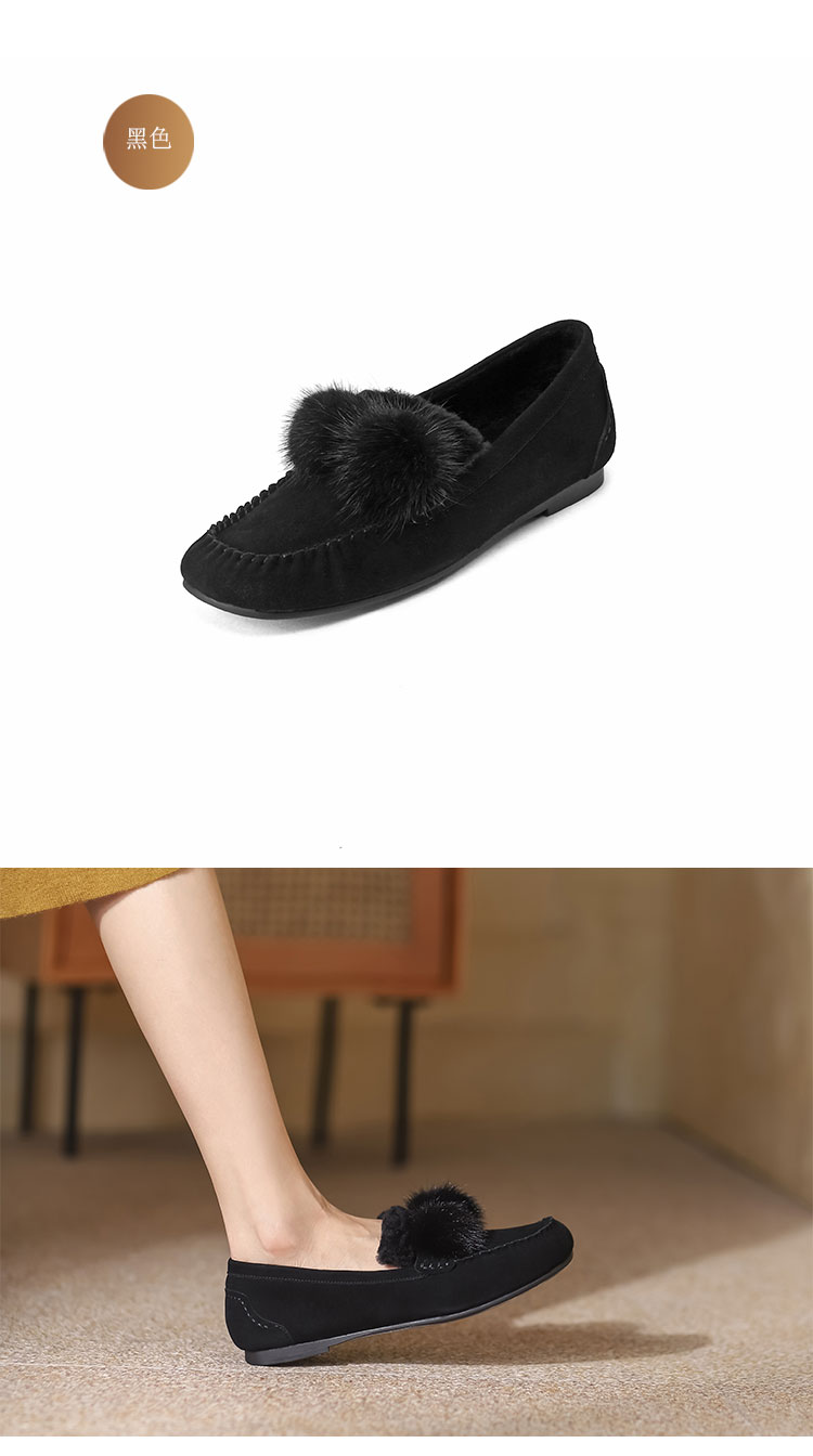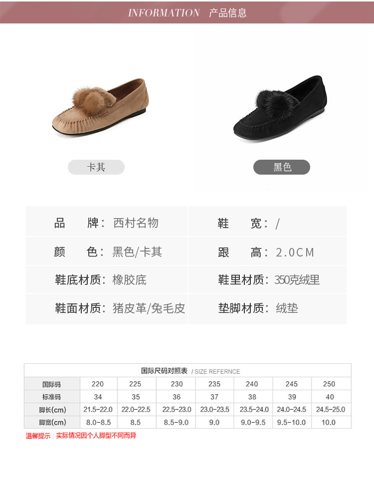 西村名物22年秋冬专柜同款女士平底休闲一脚蹬豆豆鞋毛毛鞋女外穿36341
