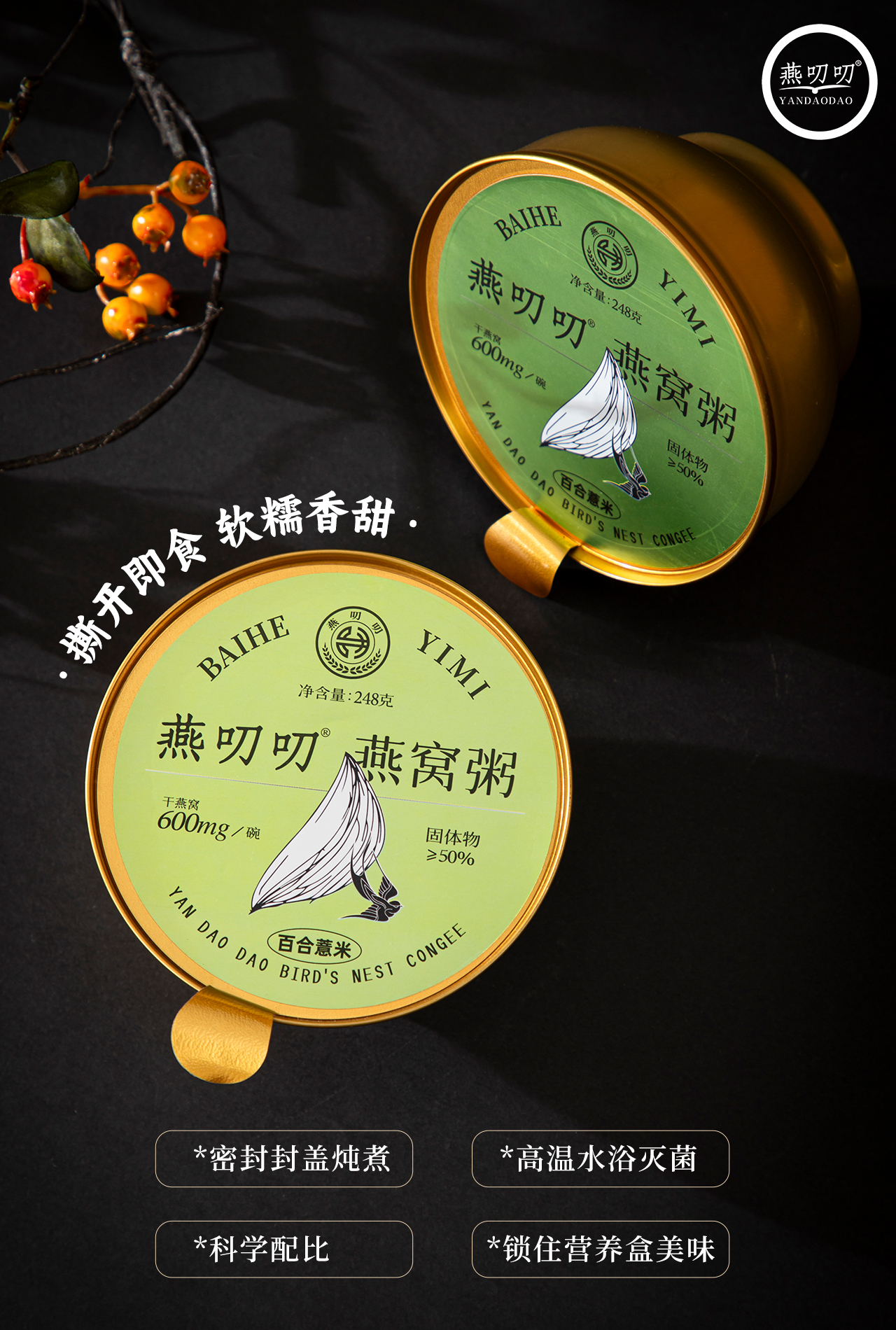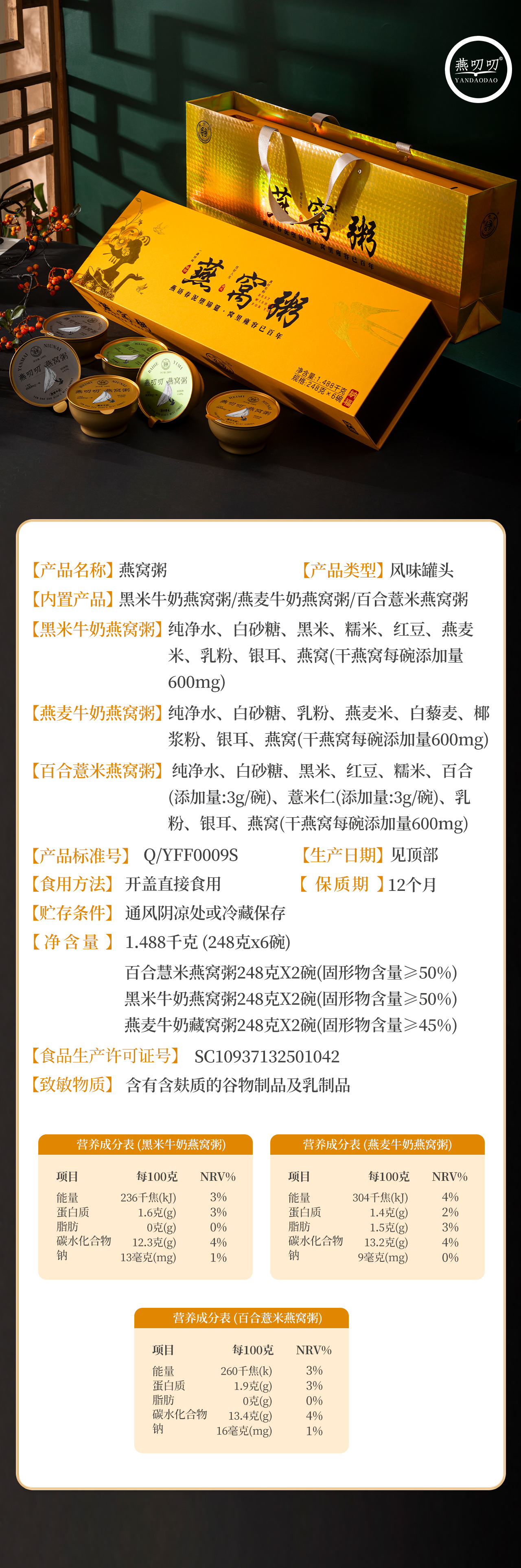 燕叨叨东方之韵燕窝粥248g*6罐纳福礼盒装即食粥速食免煮送礼 东方之韵燕窝粥248g*6碗 1箱