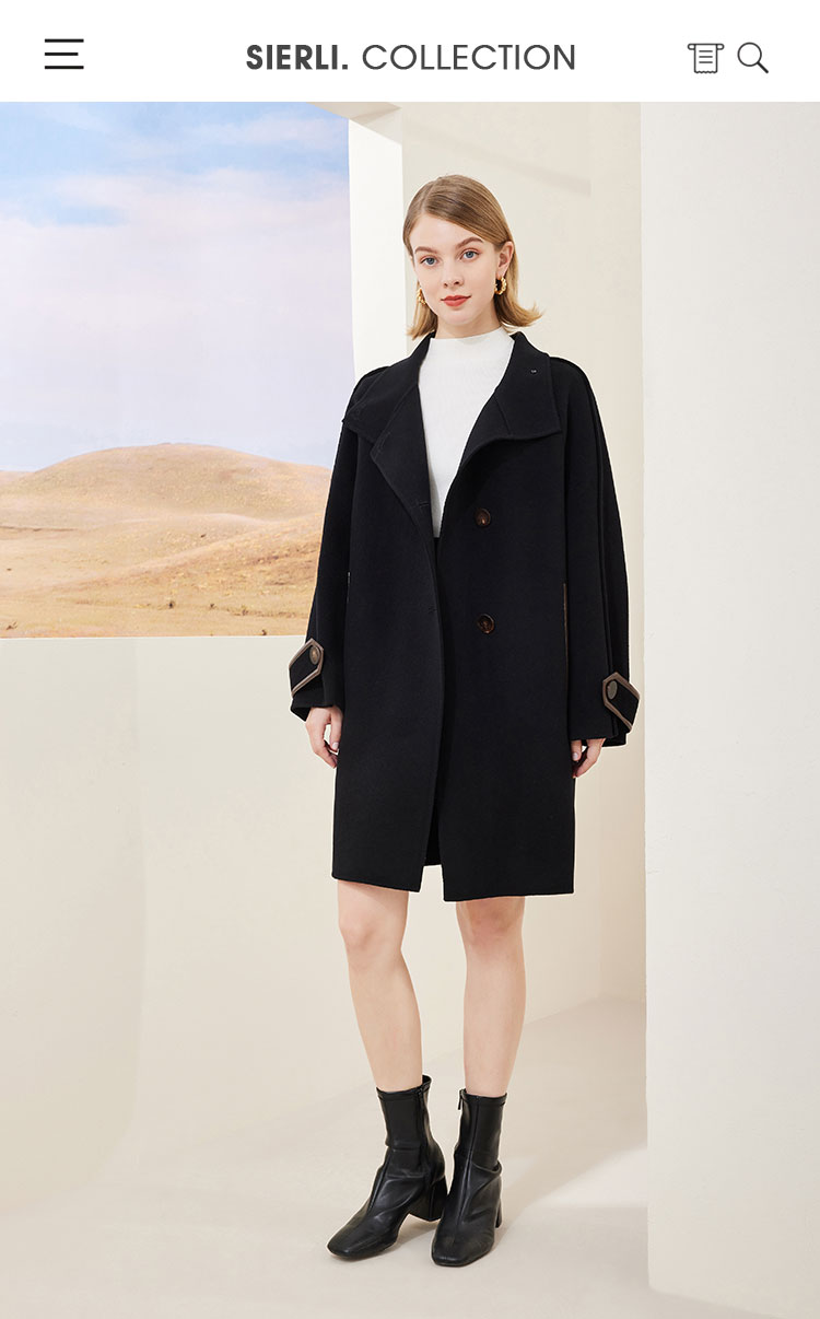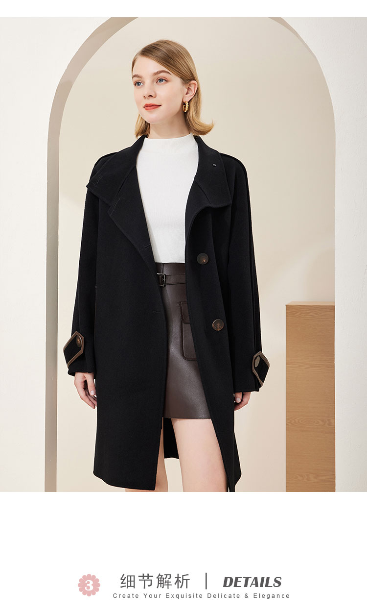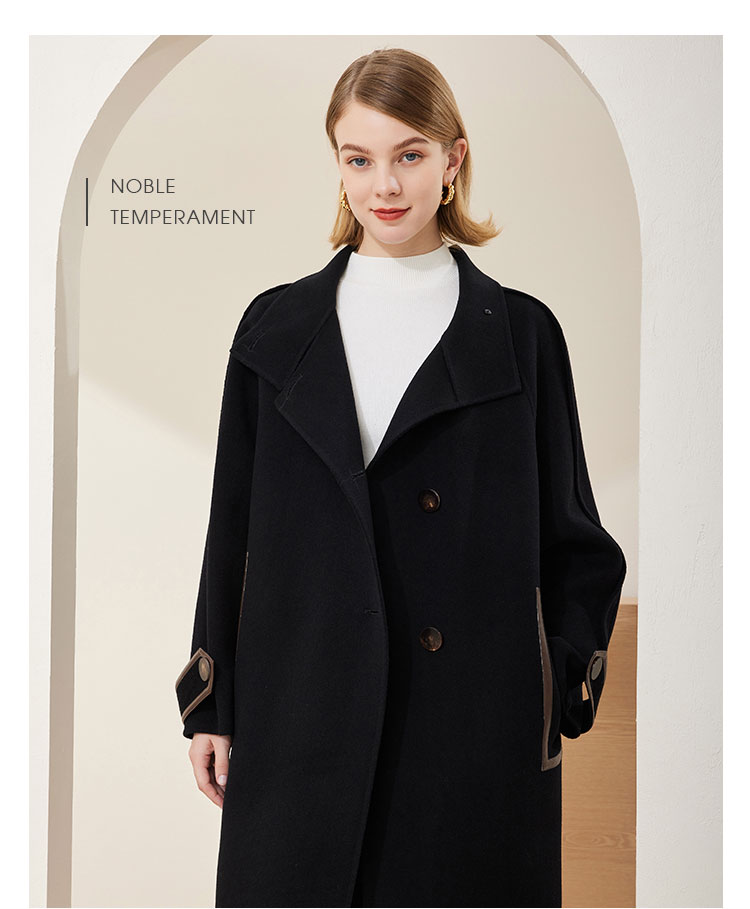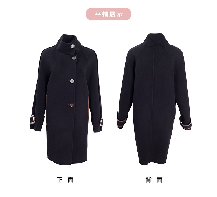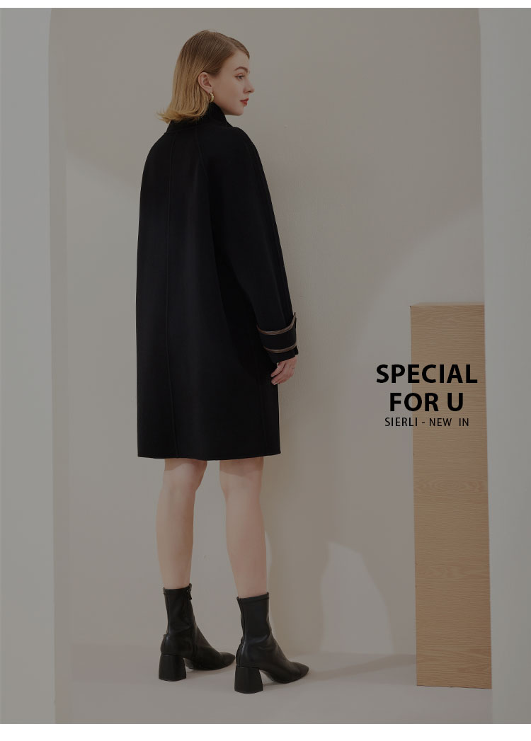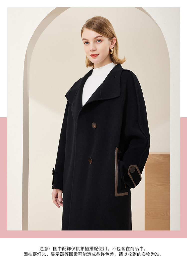 MD912斯尔丽瑟俪2022年商场同款镶边拼皮长款大衣