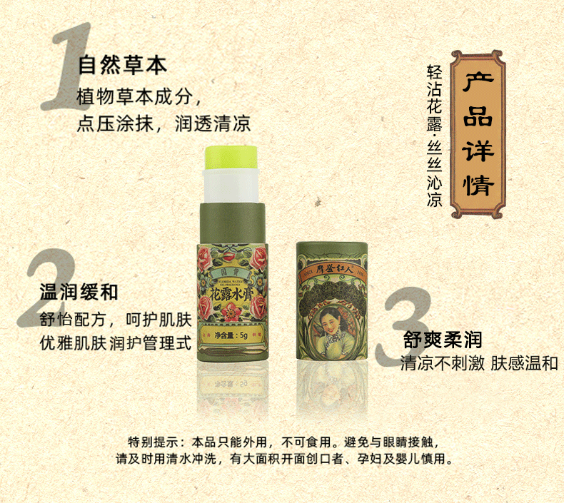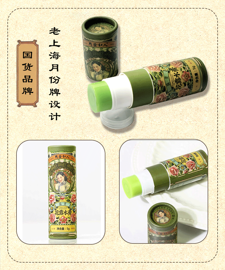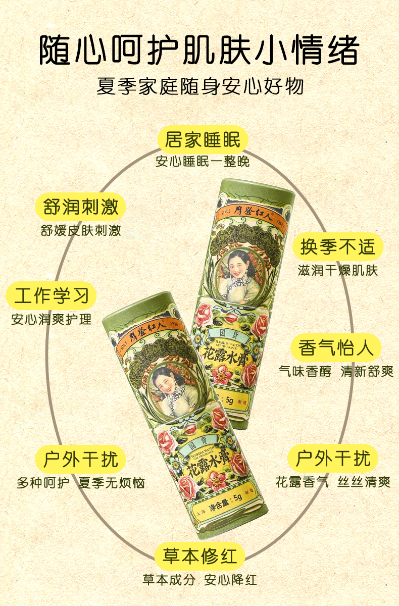 摩登红人老上海国货夏季花露水膏5g薄荷清凉保湿花香膏草本轻润养肤四季用