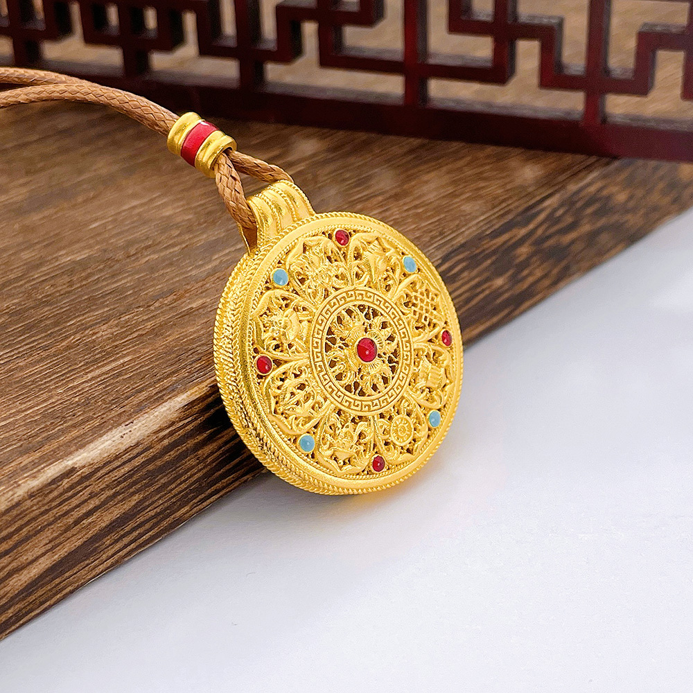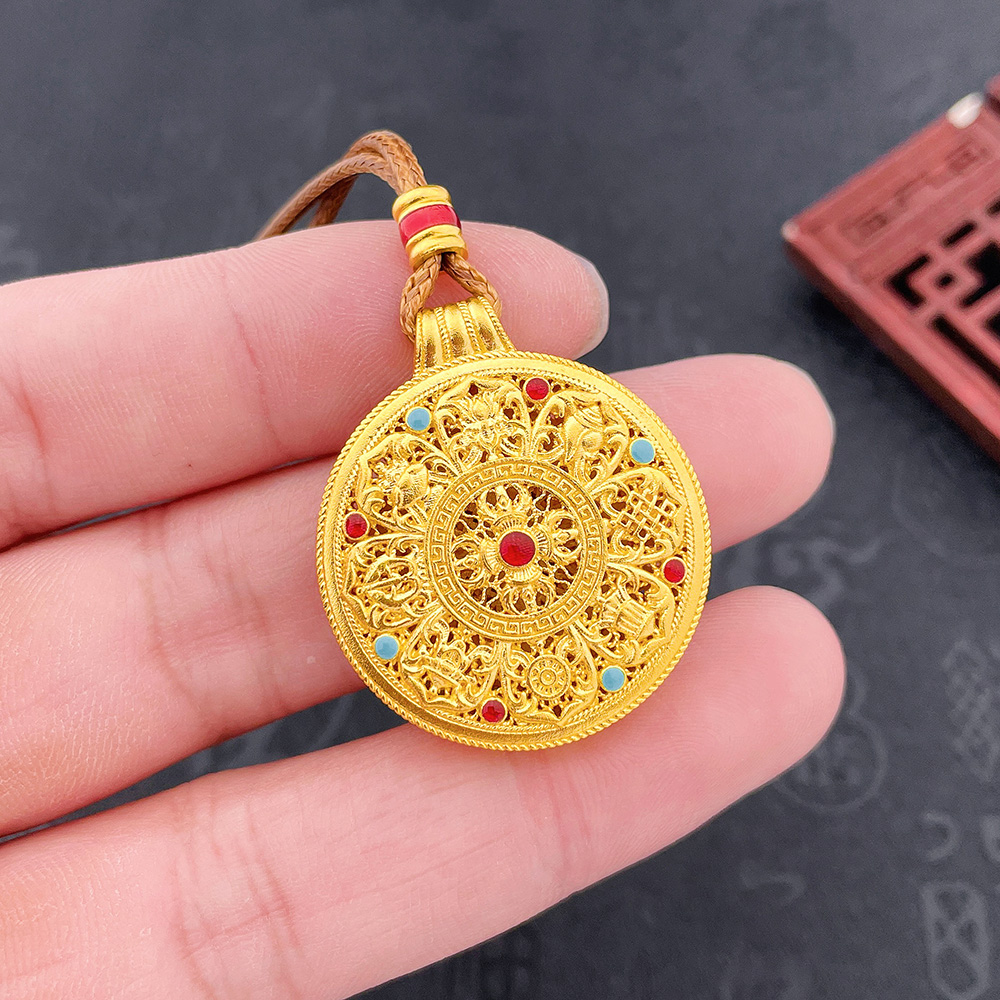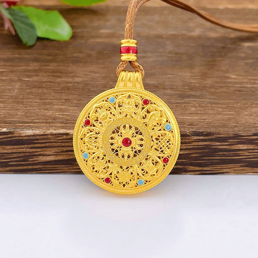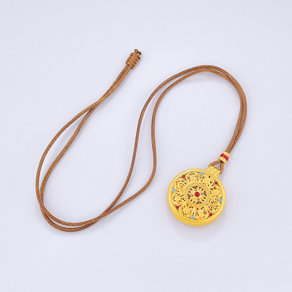 【限时克减128元】足金999.9 #八宝罗盘 #古法挂绳空心珐琅镂空法器八宝罗盘吊坠(面宽约29.7mm,含配件)(ANWZGFDZ00418-2)预售产品下单后不退款不退货不换货不补差价