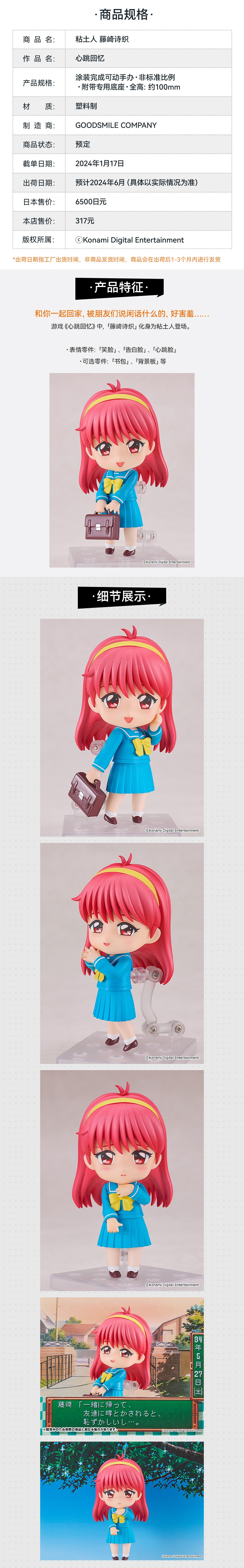 【GSC现货】粘土人 藤崎诗织 心跳回忆