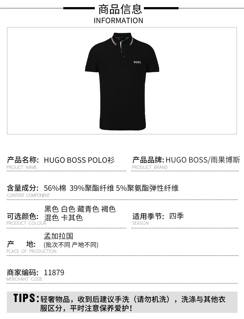 【超惠秒】BOSS 男士 刺绣字母胸标 弹棉短袖Polo T恤 11879