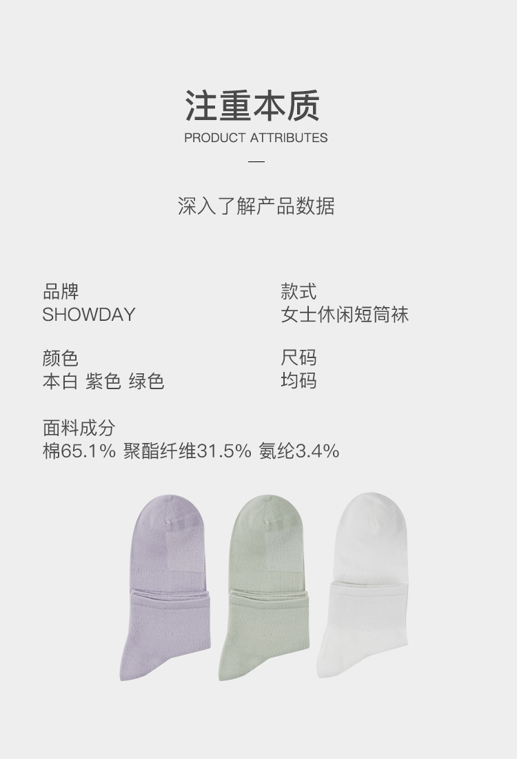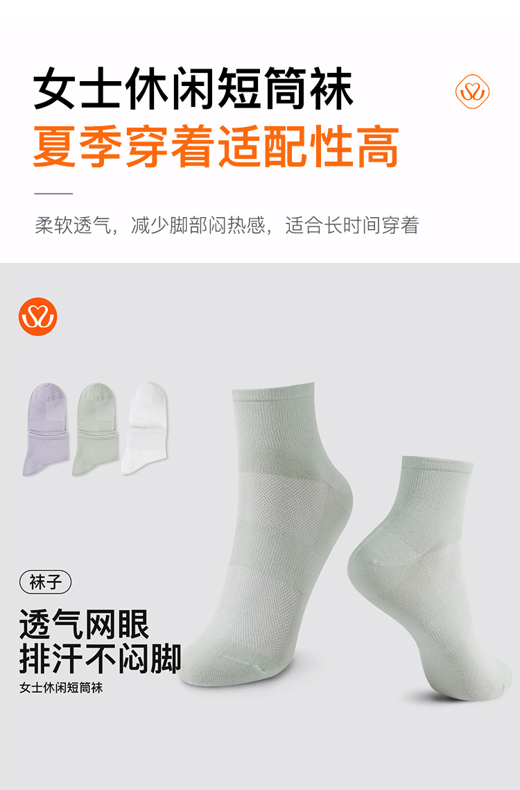 【满3双/19.9元】【秀黛】女士休闲短筒袜棉混纺网眼拼接透气排汗不闷脚短袜【1双】W5220003T【门店同款】