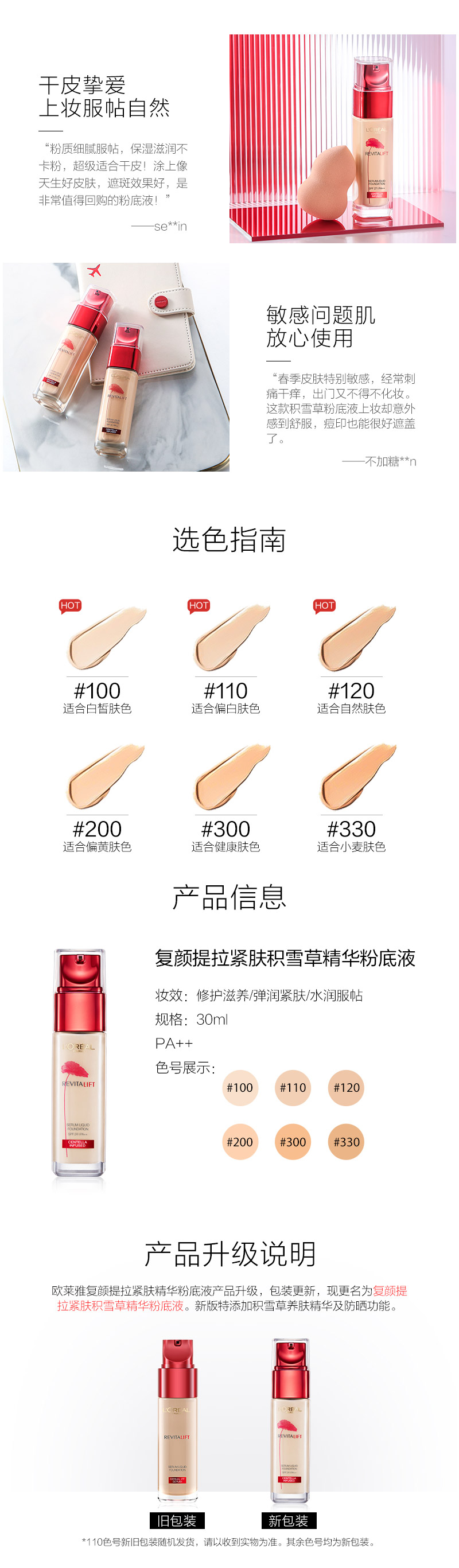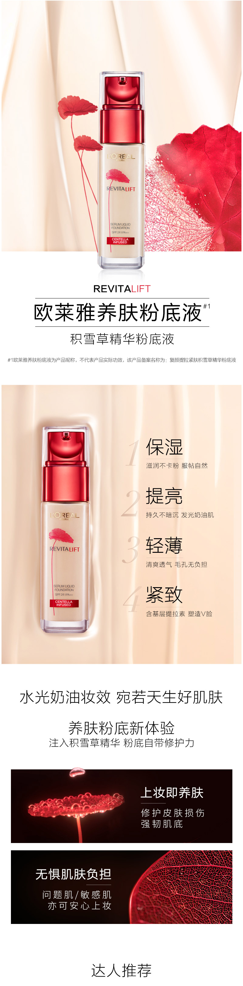 欧莱雅L’OREAL 精华粉底液 30ml 复颜提拉紧肤积雪草
