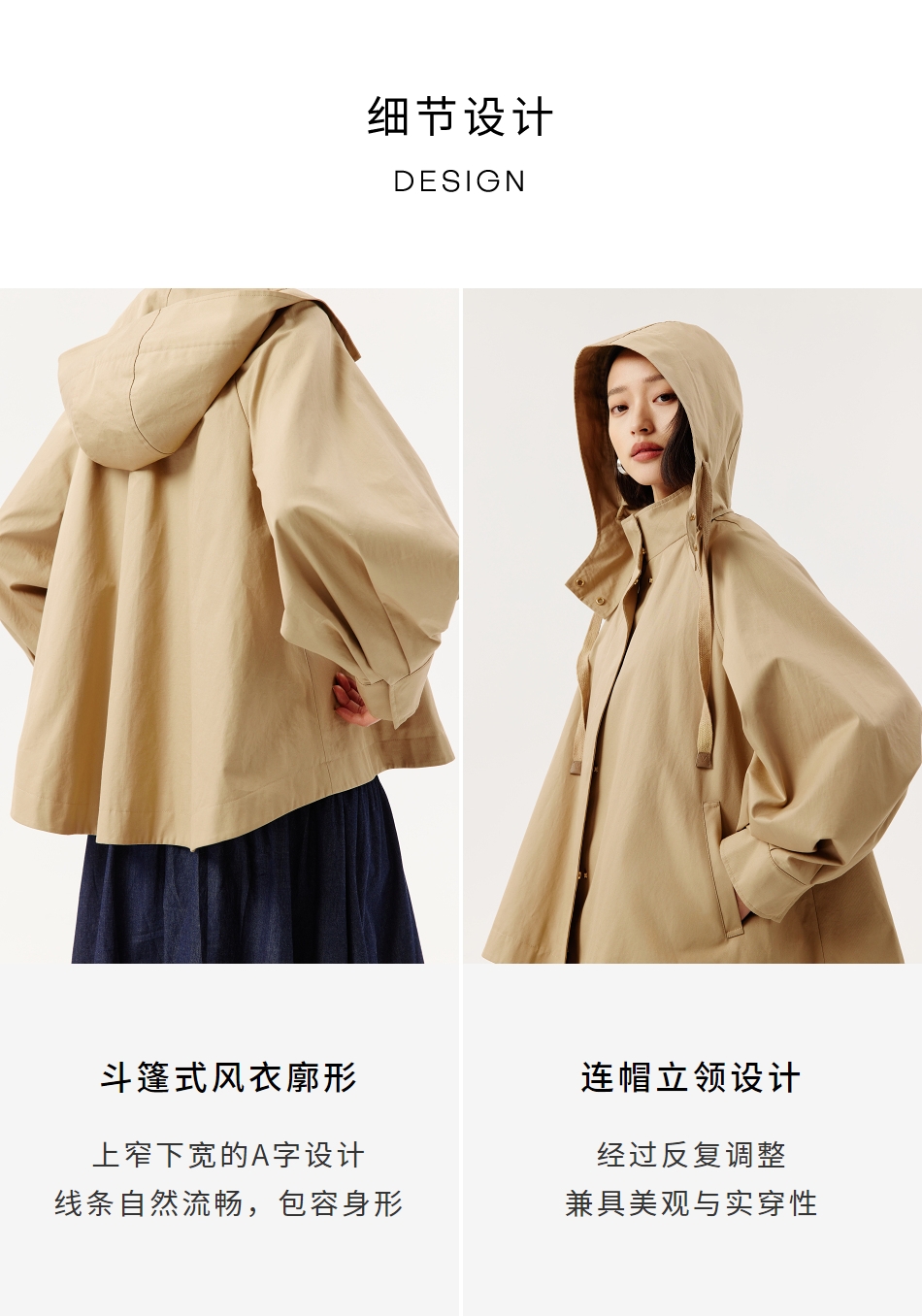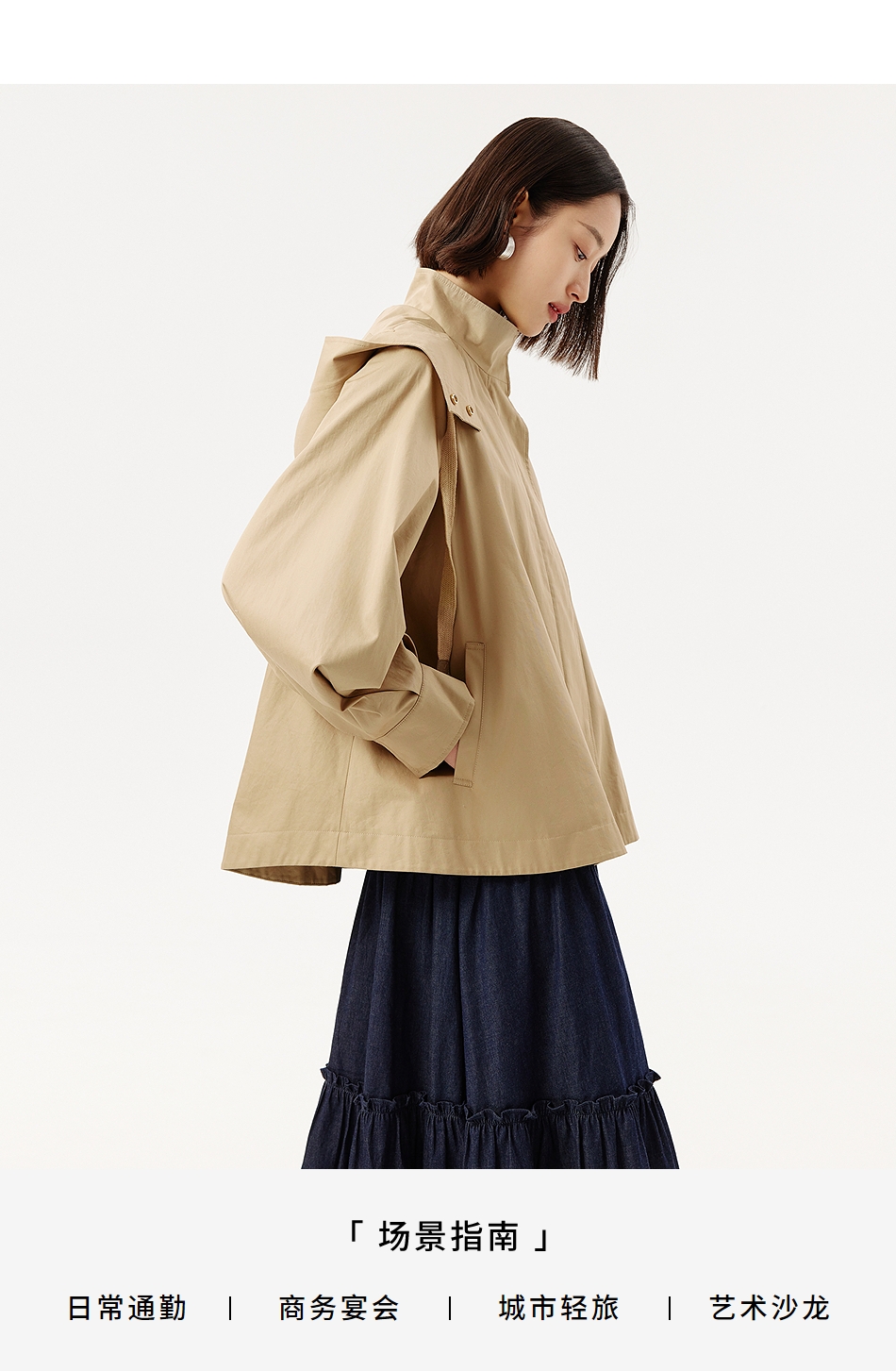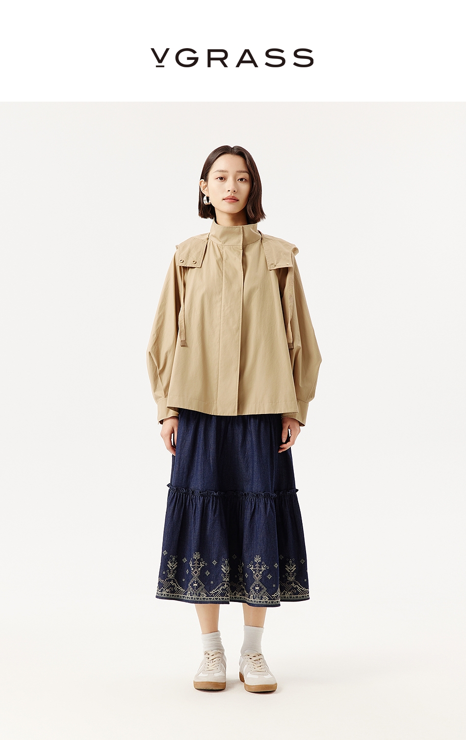 VGRASS维格娜丝25年春季新款斗篷短款风衣外套