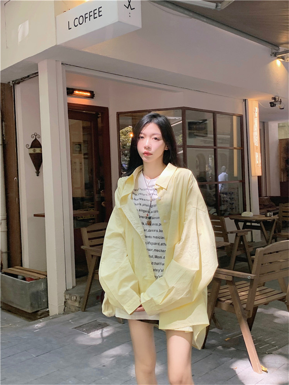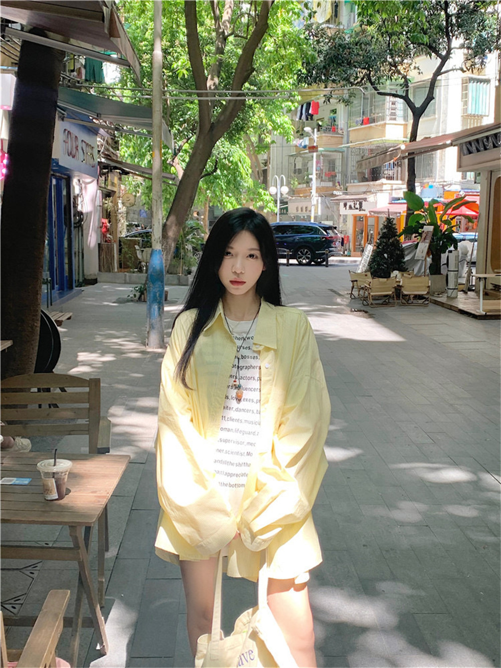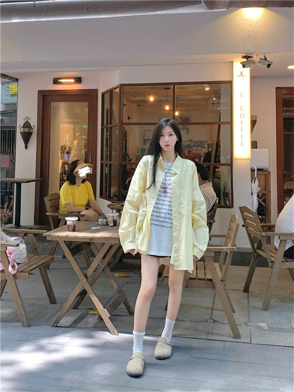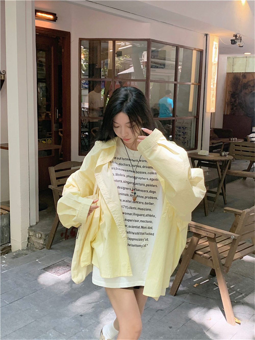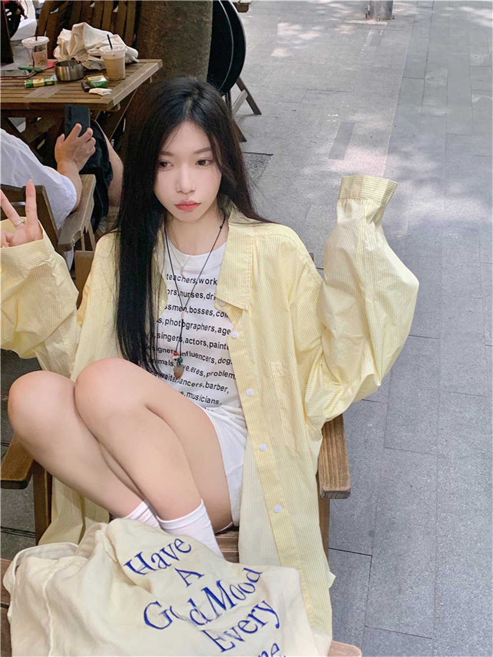 【松弛感韩系风❗️条纹宽松衬衫外套】浅蓝细条纹自带清新滤镜,宽松版型慵懒随性,轻松营造 “不费力的时髦感”夏季防晒衬衣宽松,休闲开衫中长款上衣女L★美物社
