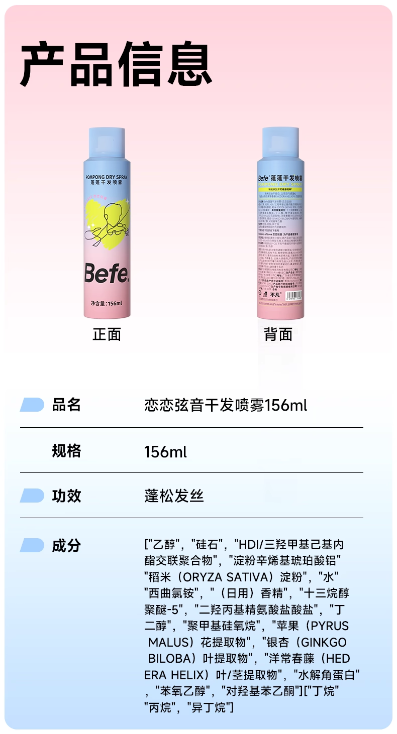 【品名】Befe.不凡恋恋干发喷雾156ml/瓶