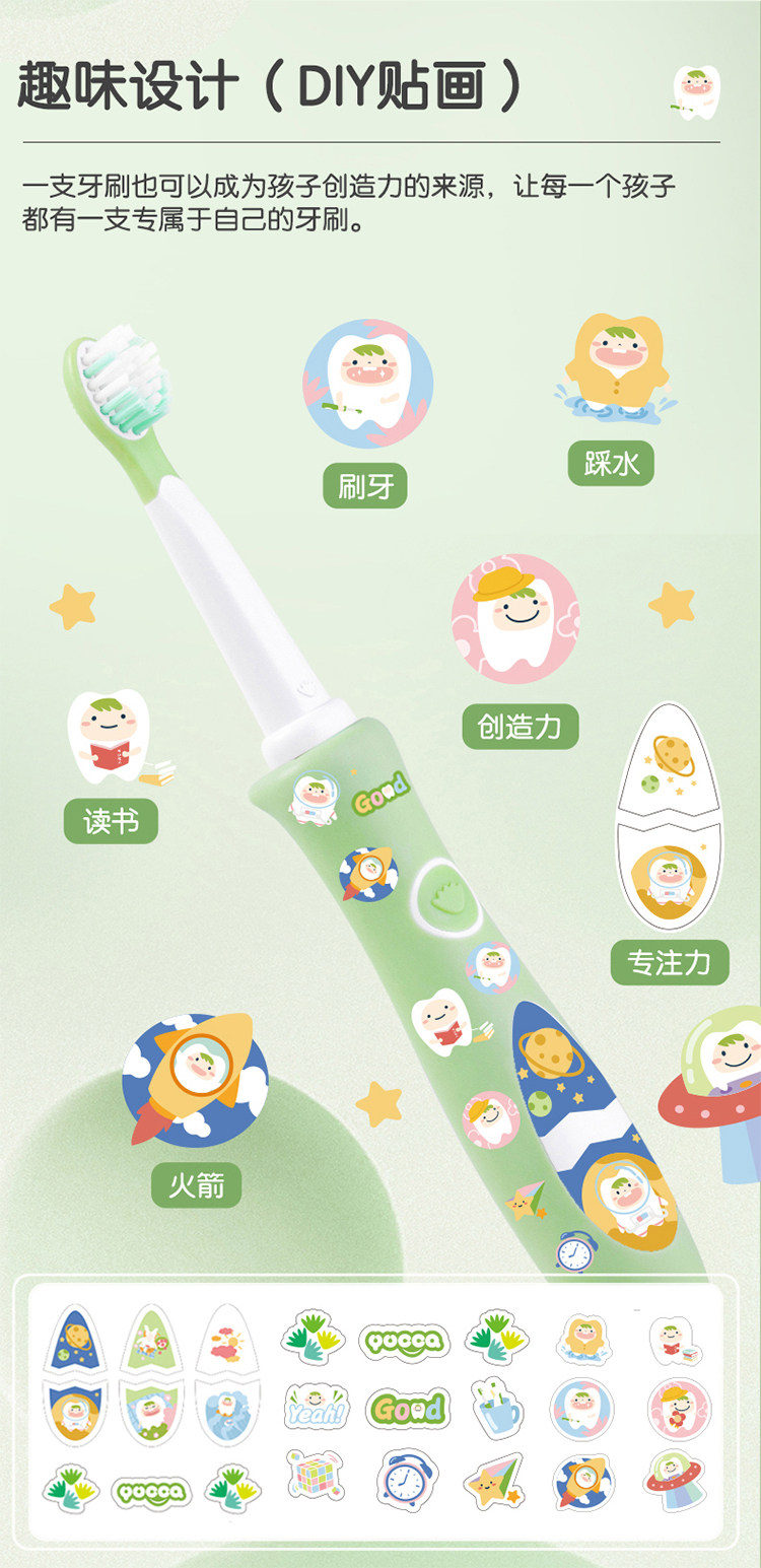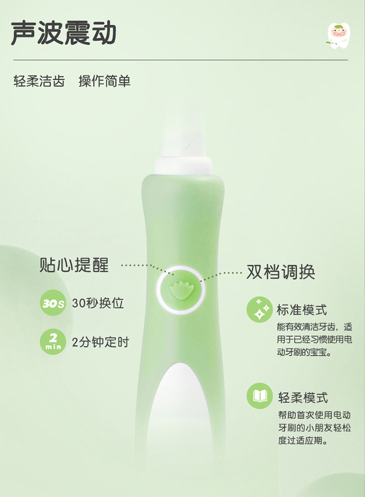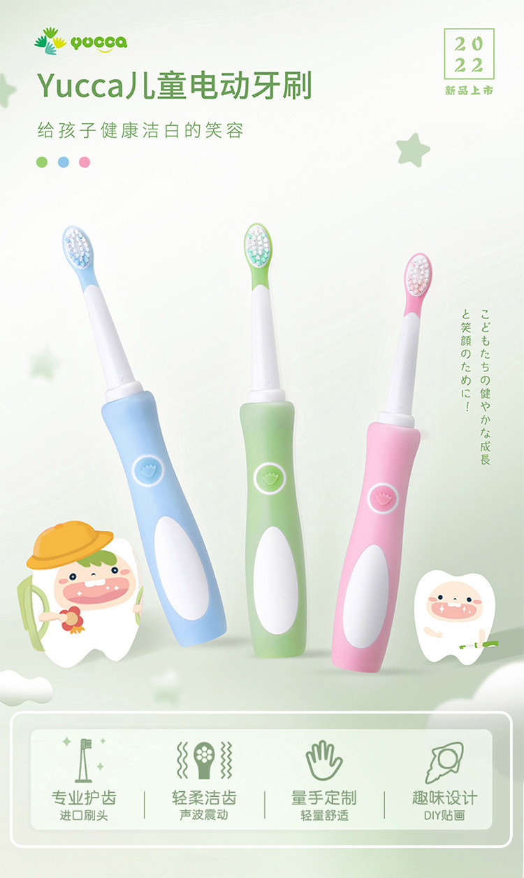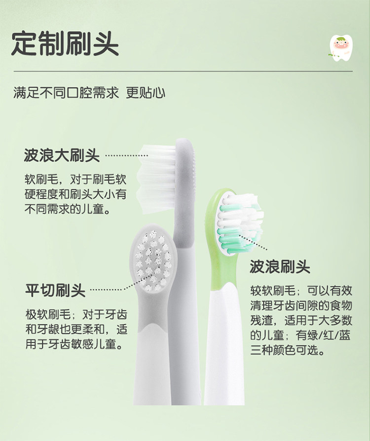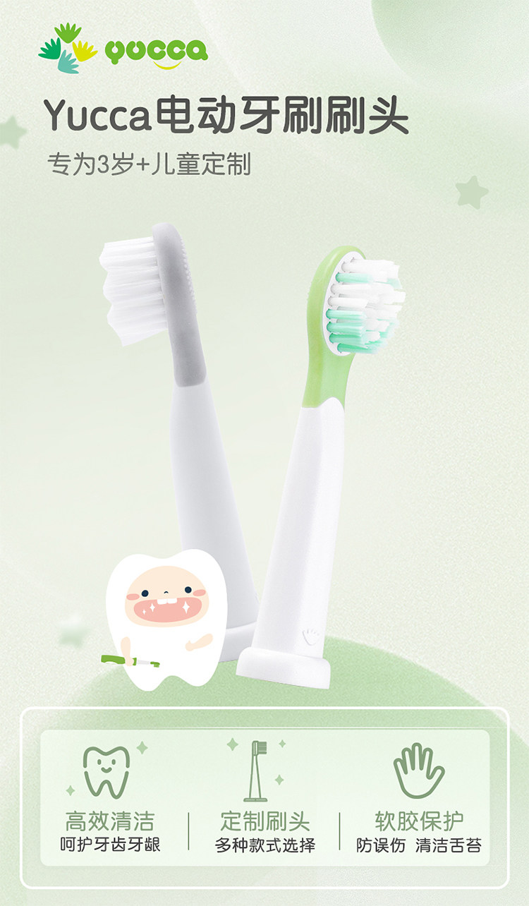 Yucca儿童电动牙刷声波【中童3岁+】宝宝替换软毛刷头