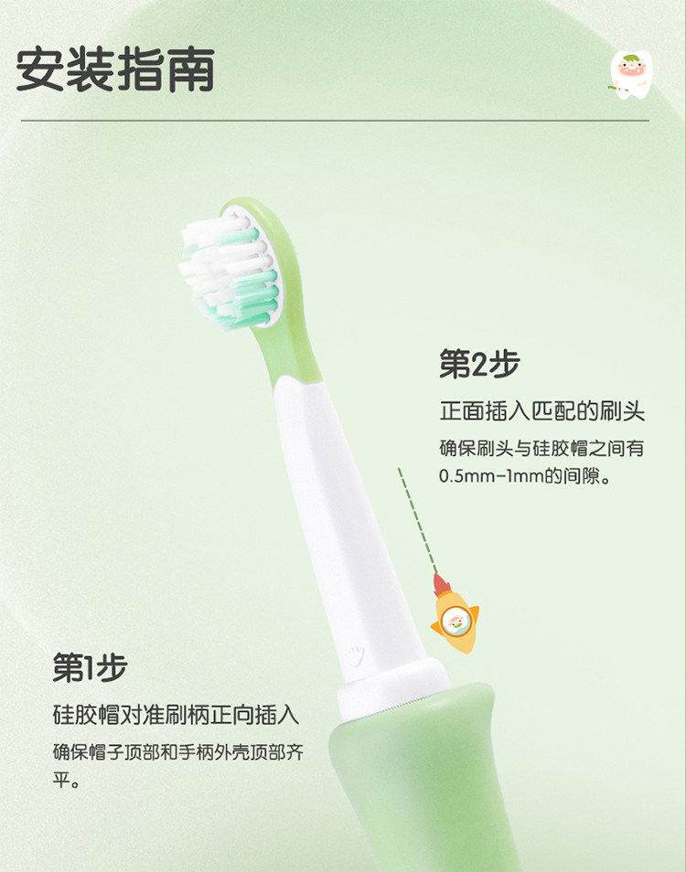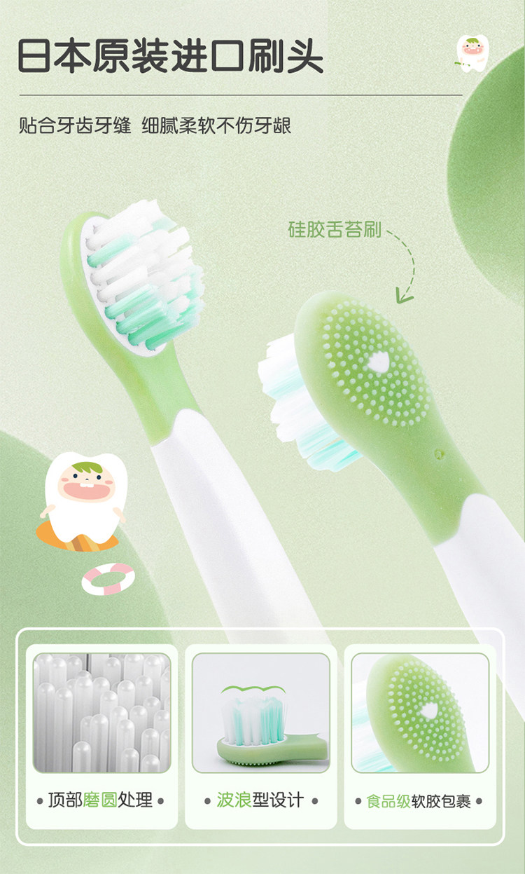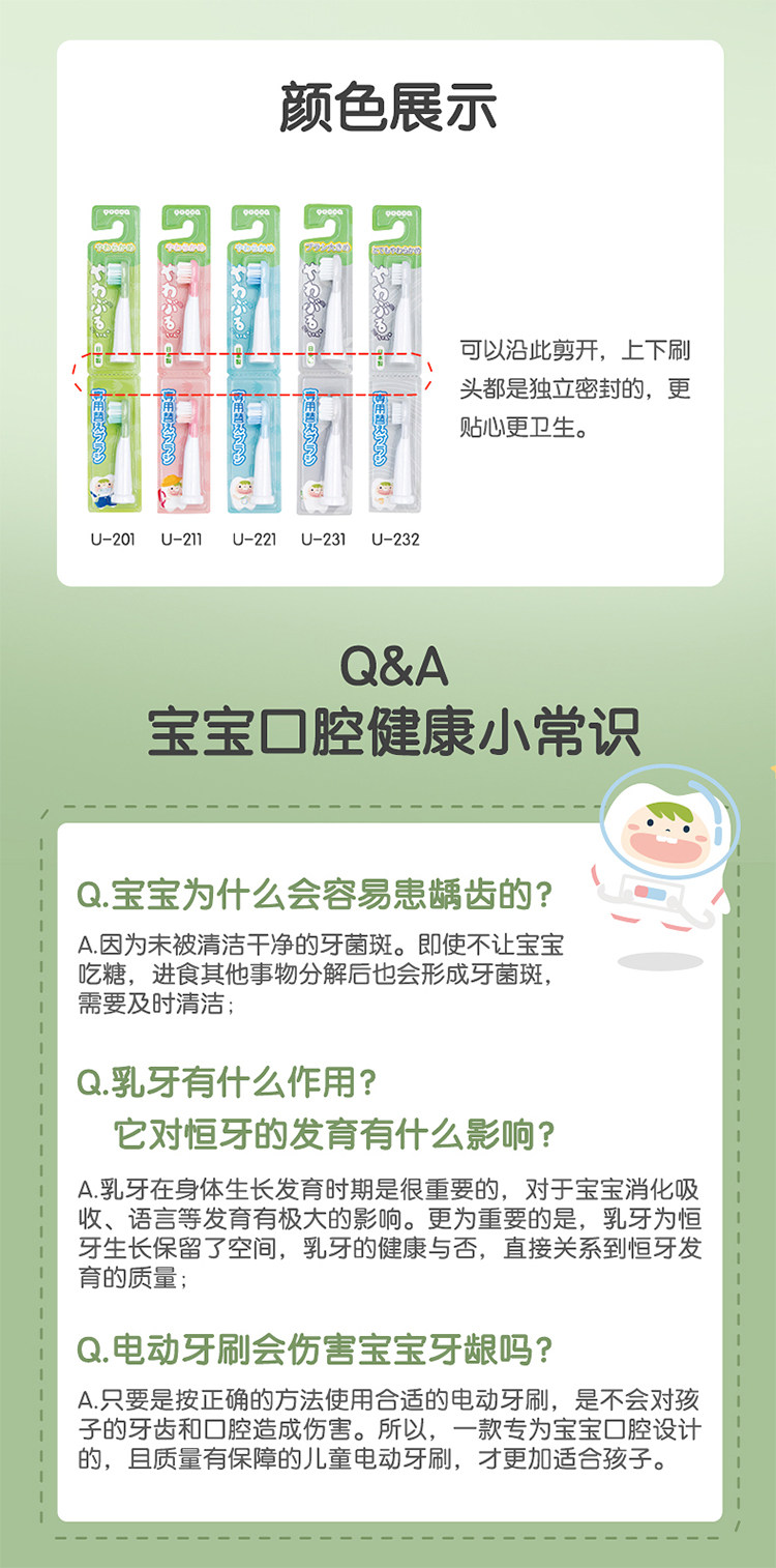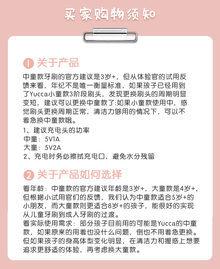Yucca儿童电动牙刷声波【中童3岁+】宝宝替换软毛刷头