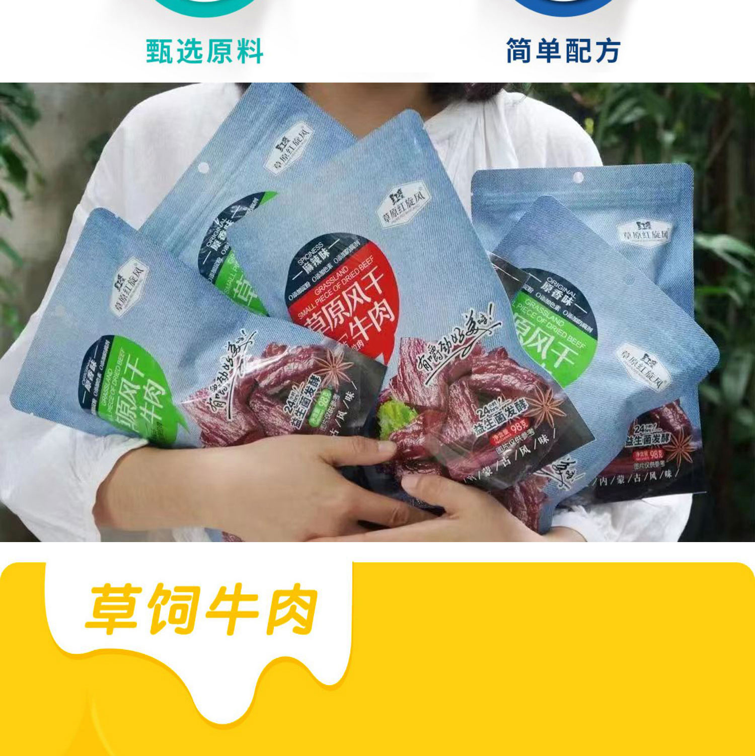 【草原红旋风】内蒙古风干牛肉干 shan姆同口感同品质 不柴不硬 又很细嫩