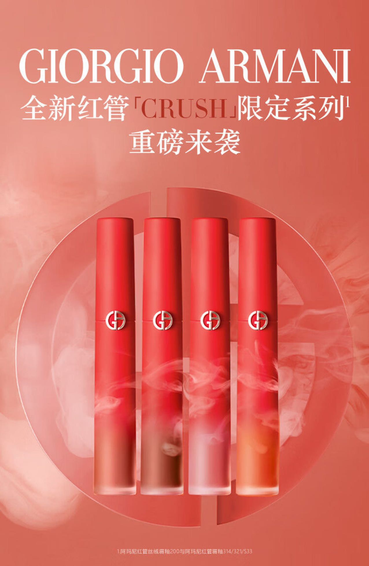 【双12嗨购节】【全球购*买一送一】阿玛尼红管丝绒唇釉6.5ml 红色渐变冰透磨砂(CRUSH限定)·现货速达