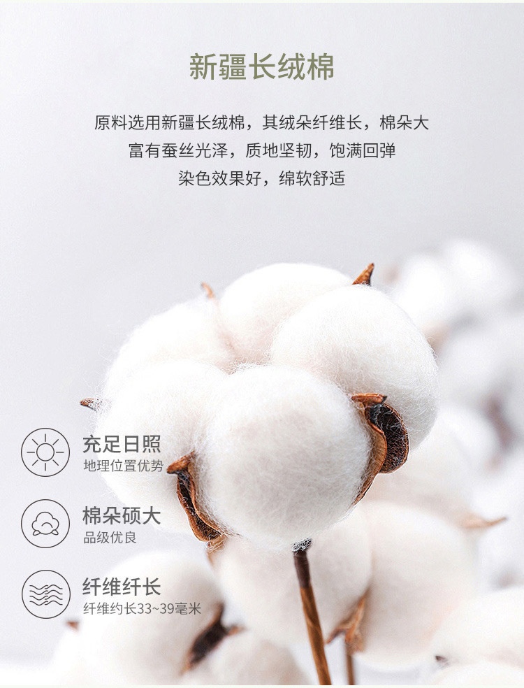 1、100%新疆长绒棉面料,柔软透气,触感细腻