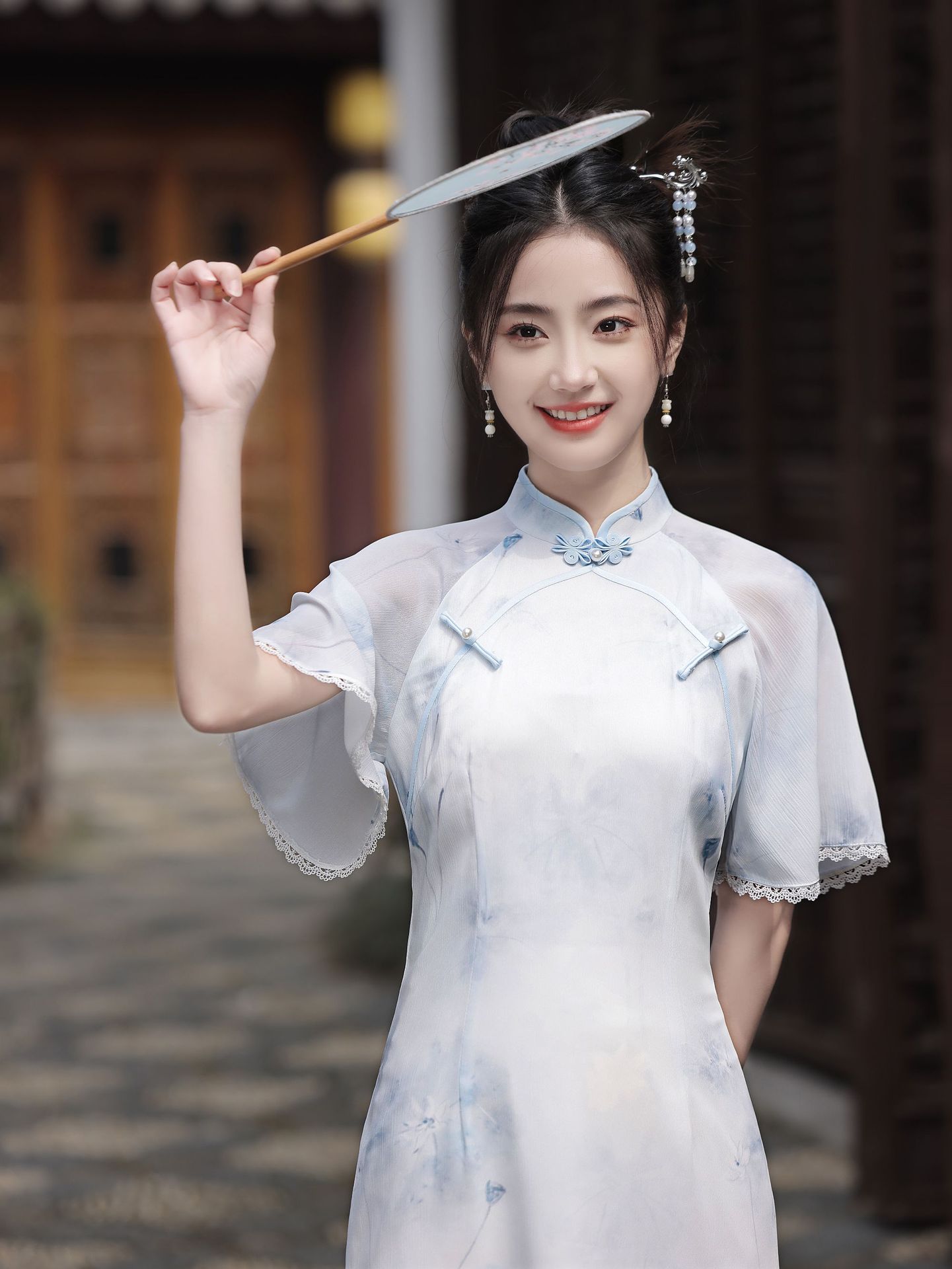 2025新款新中式年轻款少女小清新夏季日常通勤复古国风旗袍GSJ9389