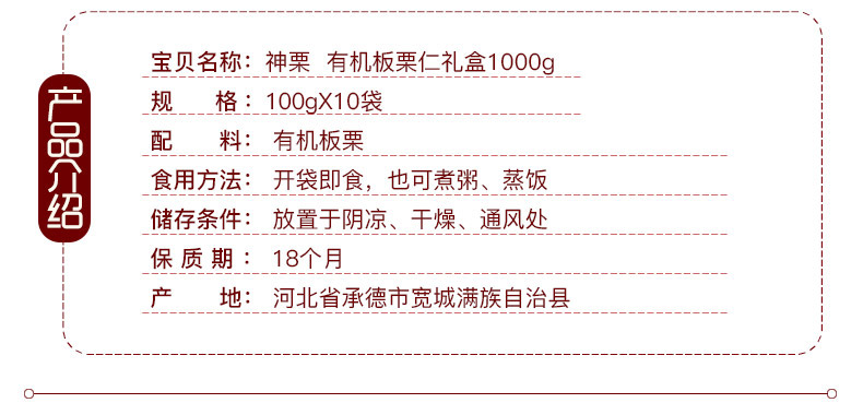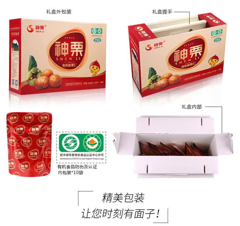 有机板栗仁礼盒 1000g(100g*10)【小孩、大人的健康零食】 包邮