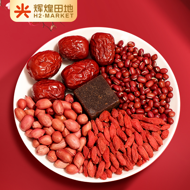 辉煌田地有机五红汤5种有机食材(有机红糖260g/袋+有机红小豆350g/盒+有机枸杞250g/袋+有机红花生400g/袋+有机红枣500g/盒)