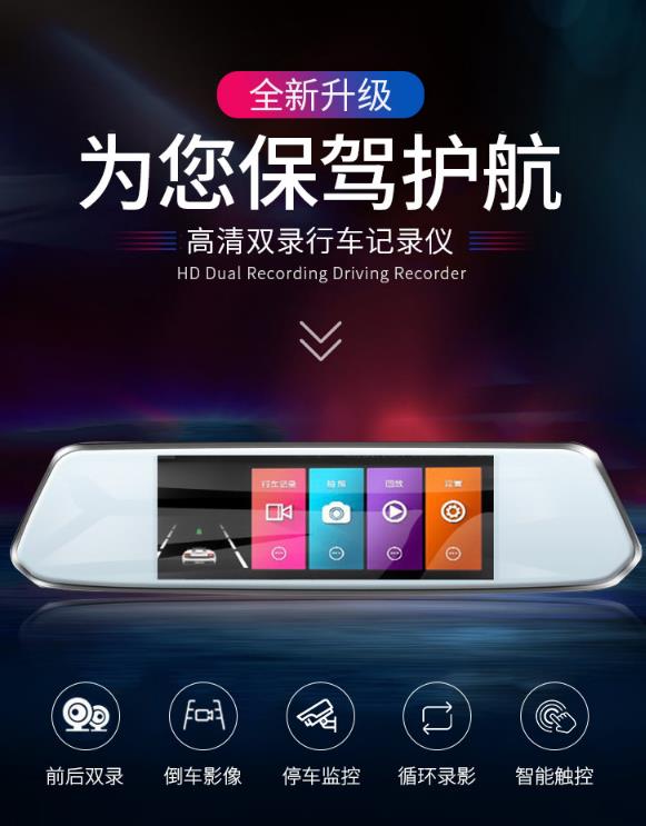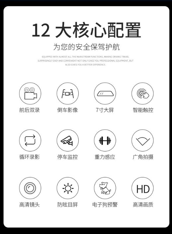 【记录仪】流动测速前后双录7寸电子狗行车记录仪