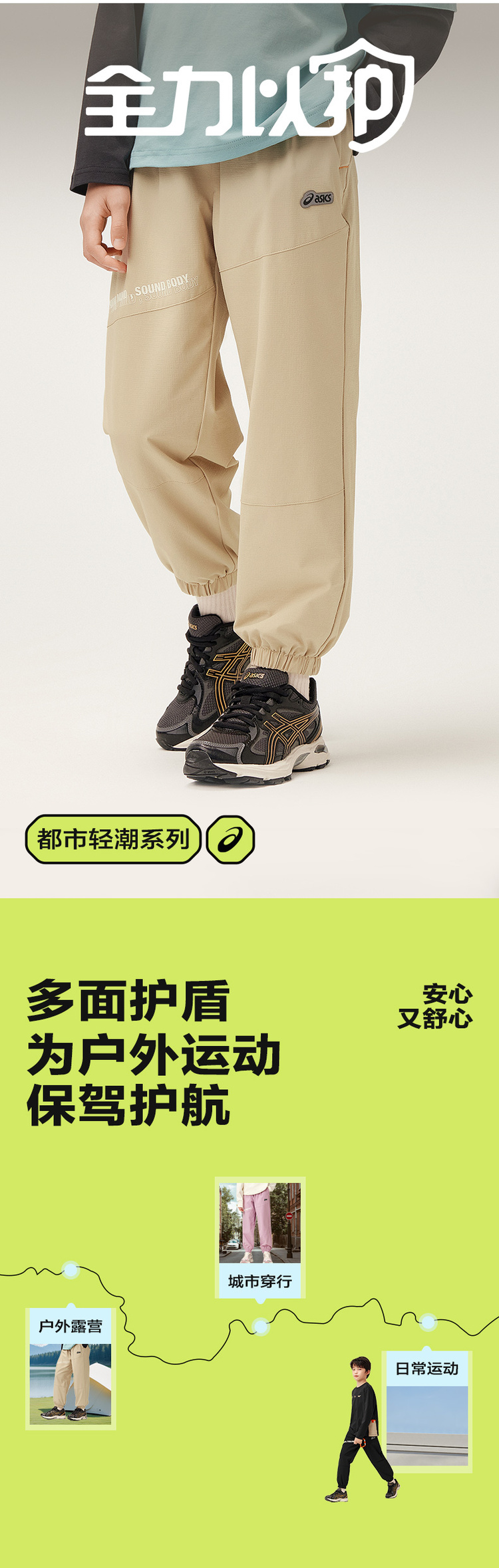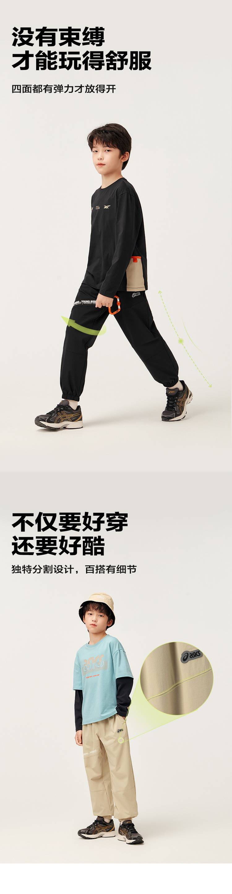 【商城同款】ASICS/亚瑟士童装秋季廓形梭织长裤户外运动弹力裤子