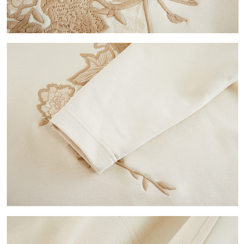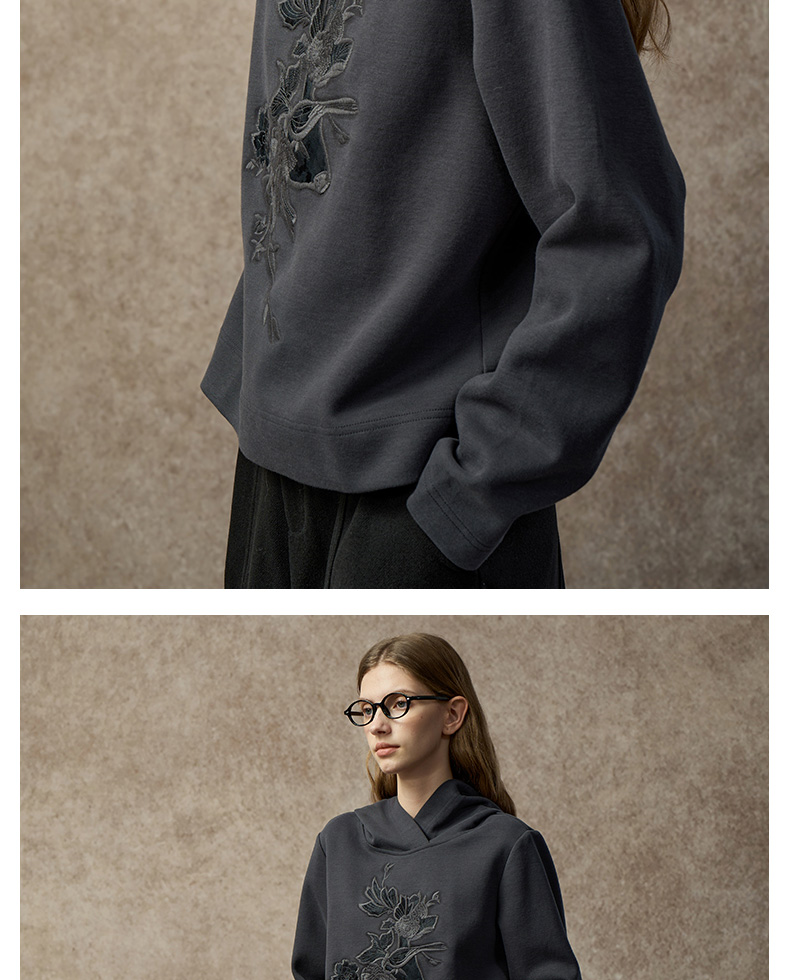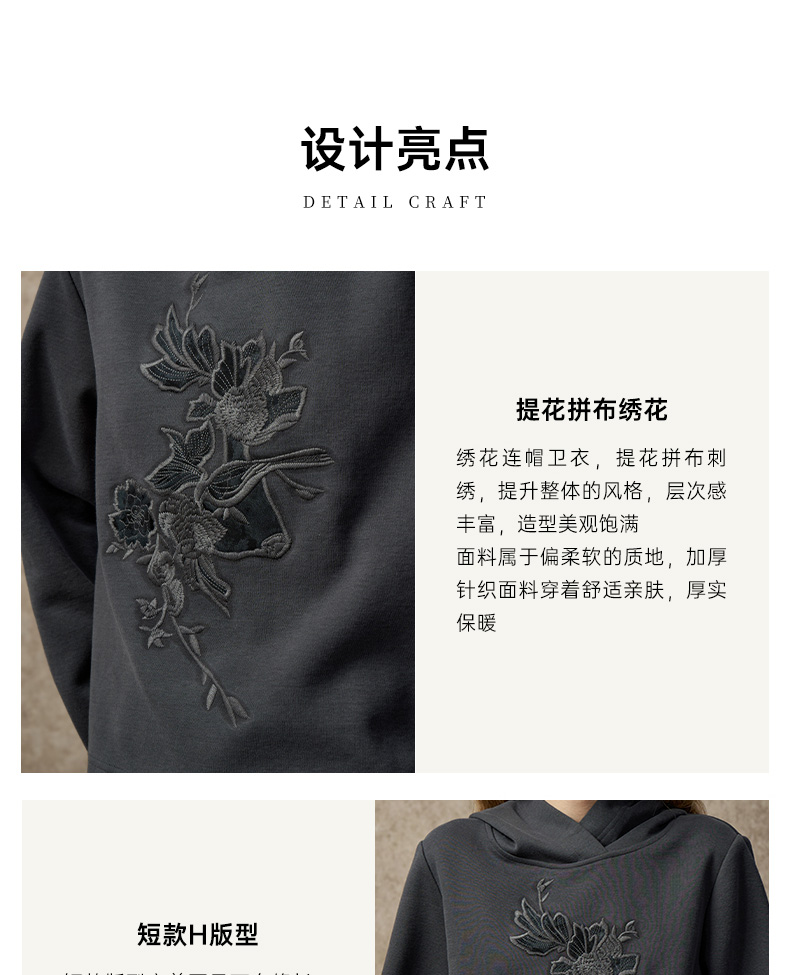 Famecoco范可儿绣花宽松直筒短款秋冬连帽针织套头卫衣FAC8BL008