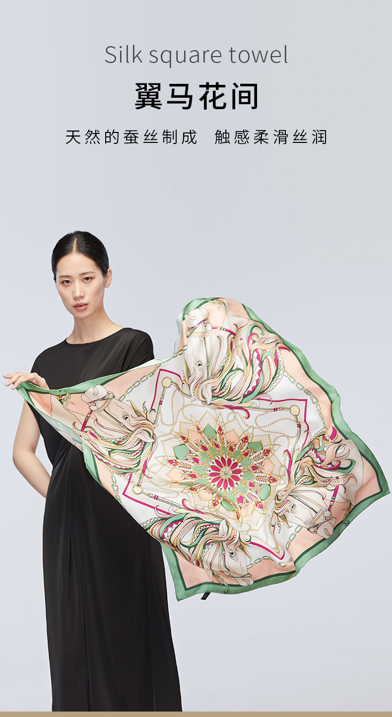 SAINTJOY/上久楷 真丝方巾 翼马花间 FJS22026