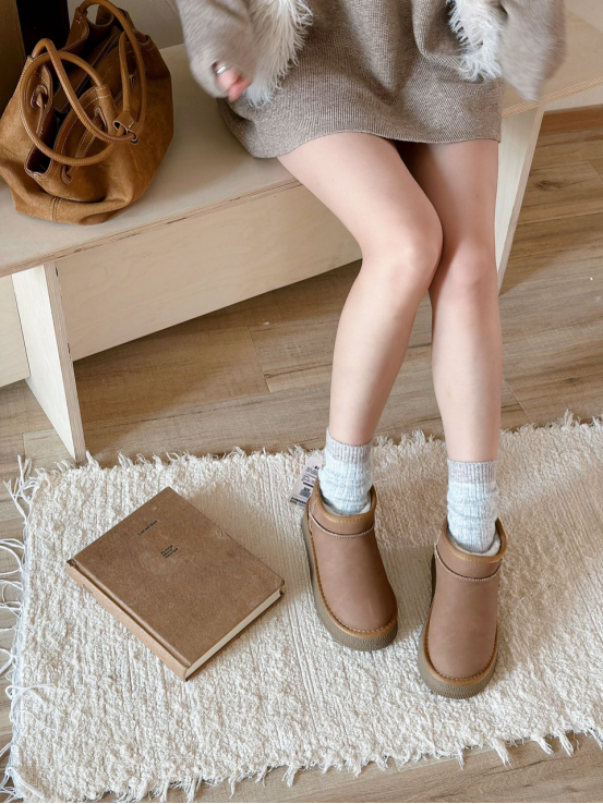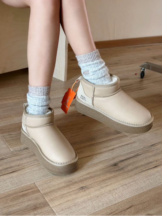 韩系氛围感🆙很显腿细又长,无痛增高 加上鞋内里都是绒毛,保暖又百搭🫶🏻 而且软软的我日常这样出来玩 走路一整天也不累脚,很舒服~ 防水防滑也试过了,包好穿好打理的 已经期待秋冬穿去北方玩雪啦!