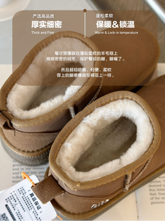 高级内里,绒毛厚实 毛感炒鸡的软糯顺滑爱了 防滑耐磨防摔,这么好的雪地靴 看到价格别惊讶,货真价实的好货