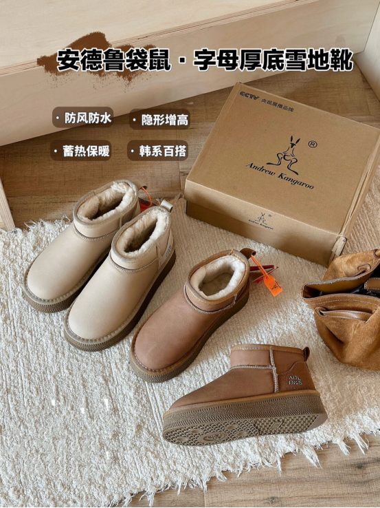 🔥冬日保暖神器 行走的小火炉!!降温雪地靴❄️防水雪地靴开拓者💧【安德鲁袋鼠字母厚底雪地靴6099】😘~ 断崖式降温 必备单品🔥蓄热保暖!