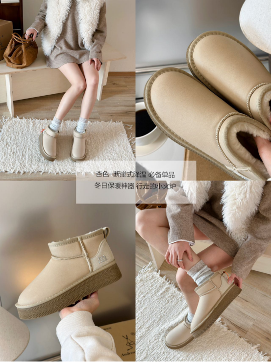 超蓬松!超暖和!完美御寒神器🔥 超级厚实的毛毛冬天不可能再冷 最经典的基础款 放心冲‼️ ▪️5cm显腿细 ▪️舒适小短筒 上脚暖和哭了 厚底也轻便 厚底增高秒变大长腿 橡胶大底 防滑耐磨 很软很软 巨好穿
