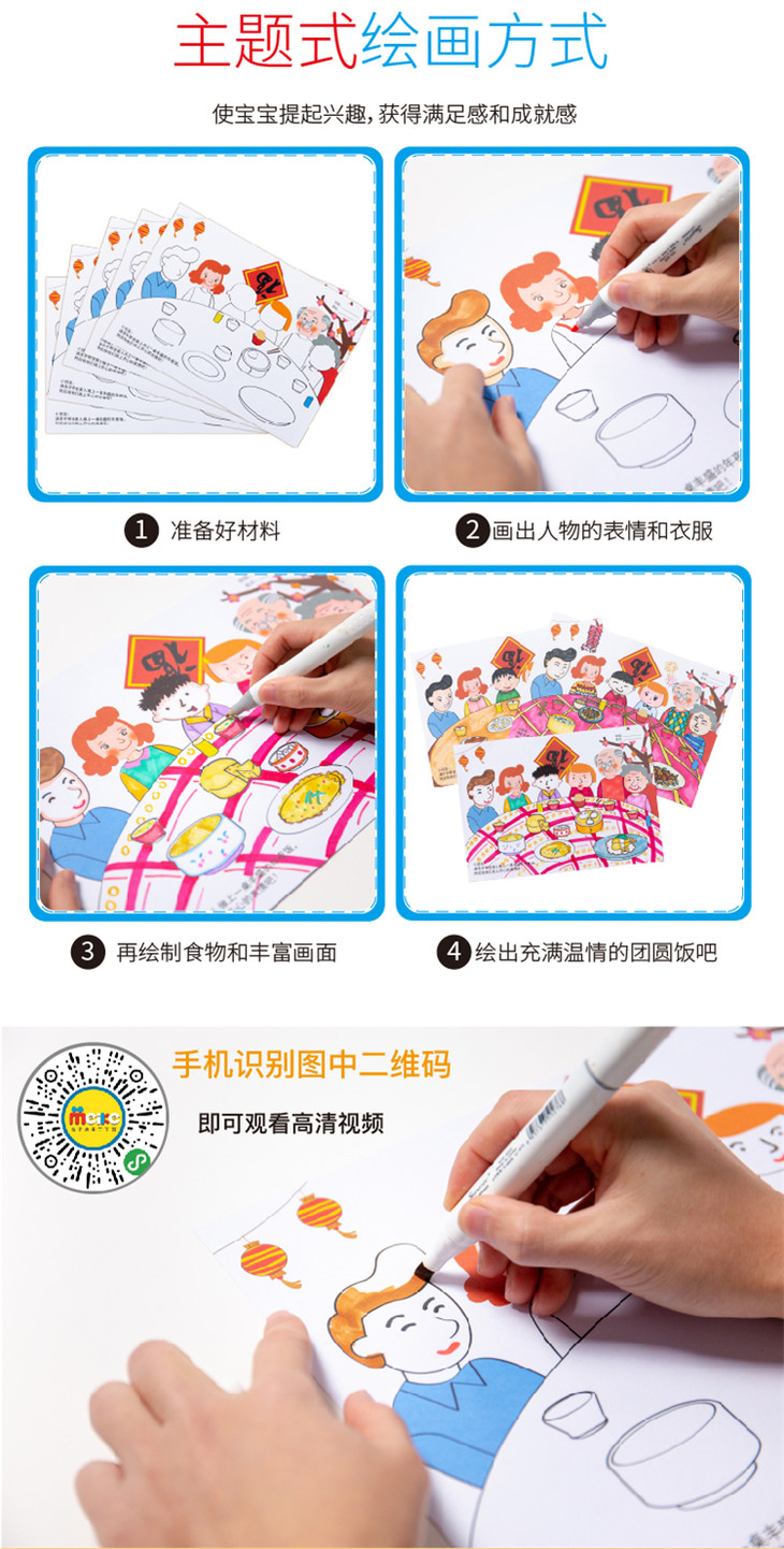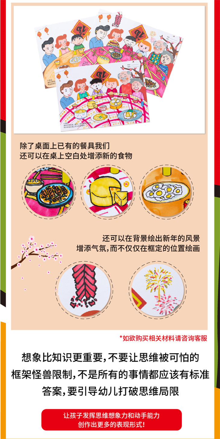 年夜饭团圆饭 创意绘画美术底稿材料包5张装 商品图7