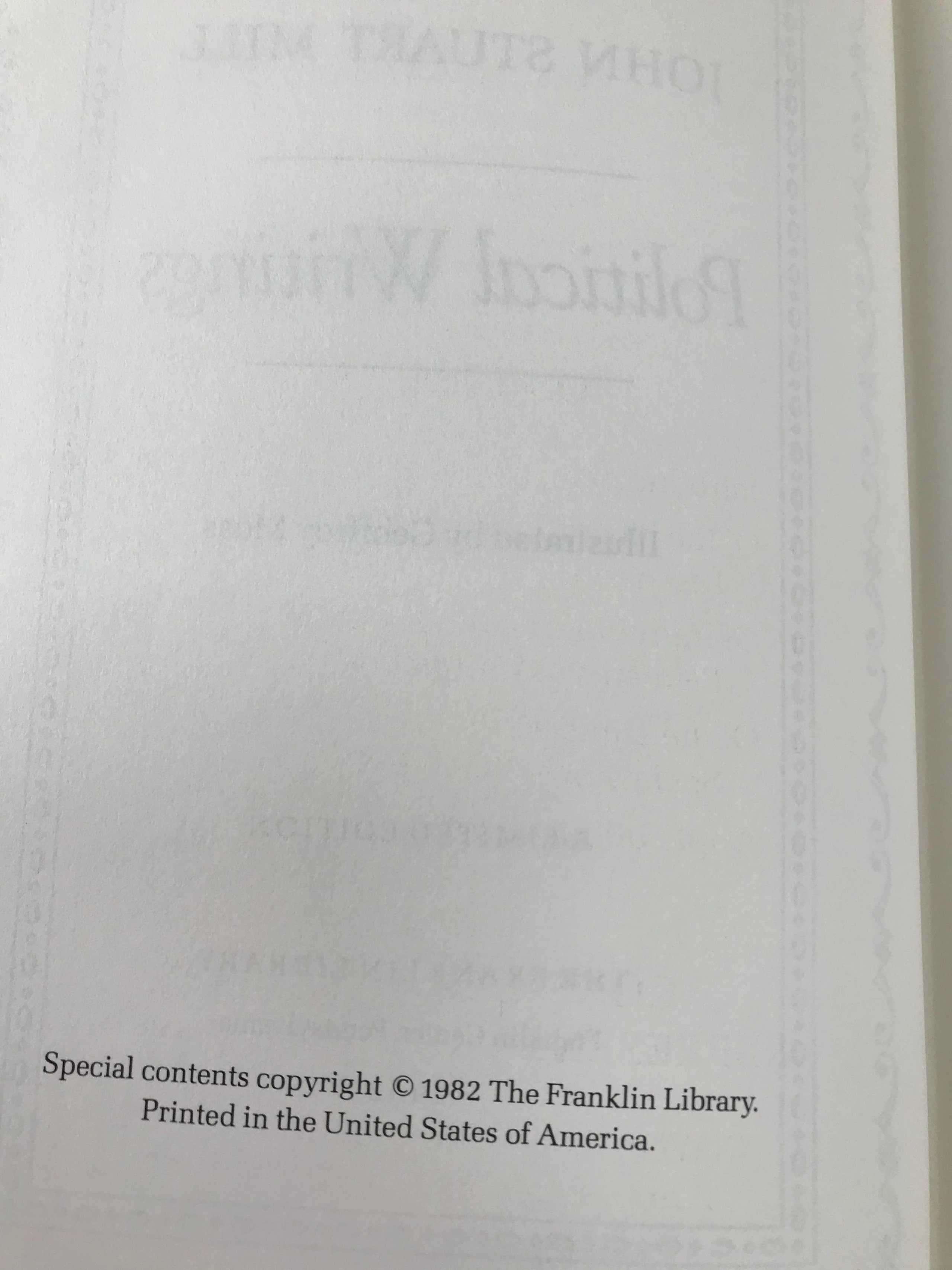 限量版!约翰・斯图尔特・密尔《政治著作集》 配插图 富兰克林图书馆豪华皮装本