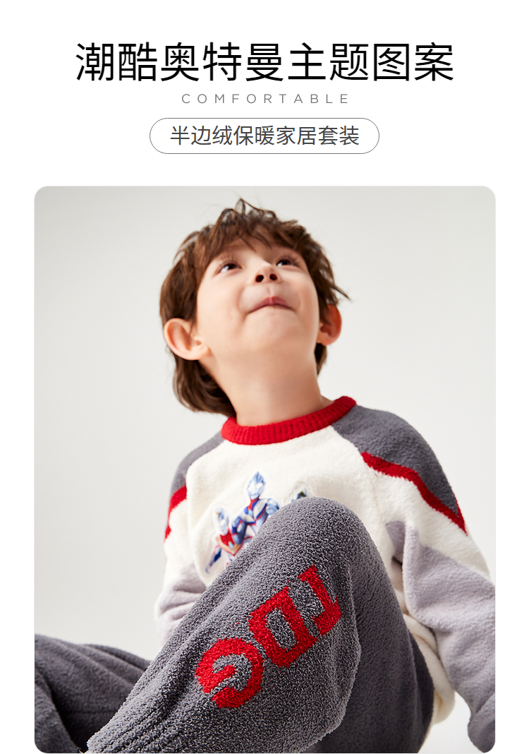 【商场同款】巴拉巴拉宝宝睡衣套装冬季加厚半边绒男童家居服保暖