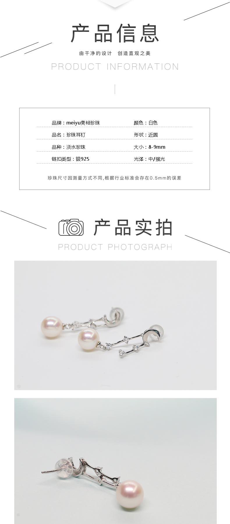 美裕 银925淡水珍珠耳钉104971 7.5-8mm彩